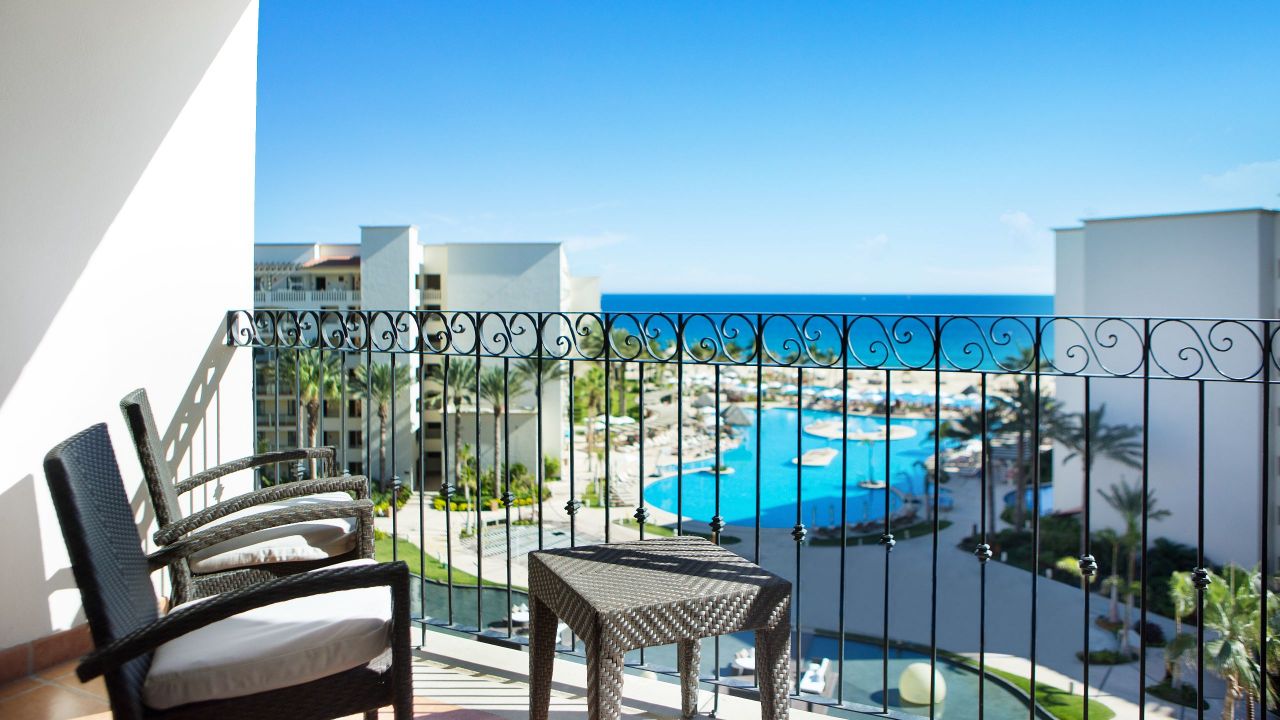 Ein spektakuläres, 54 m² großes Zimmer mit einem King-Bett, Schlafsofa, Erfrischungscenter und einer Terrasse mit indirekter Sicht auf den Golf von Kalifornien.