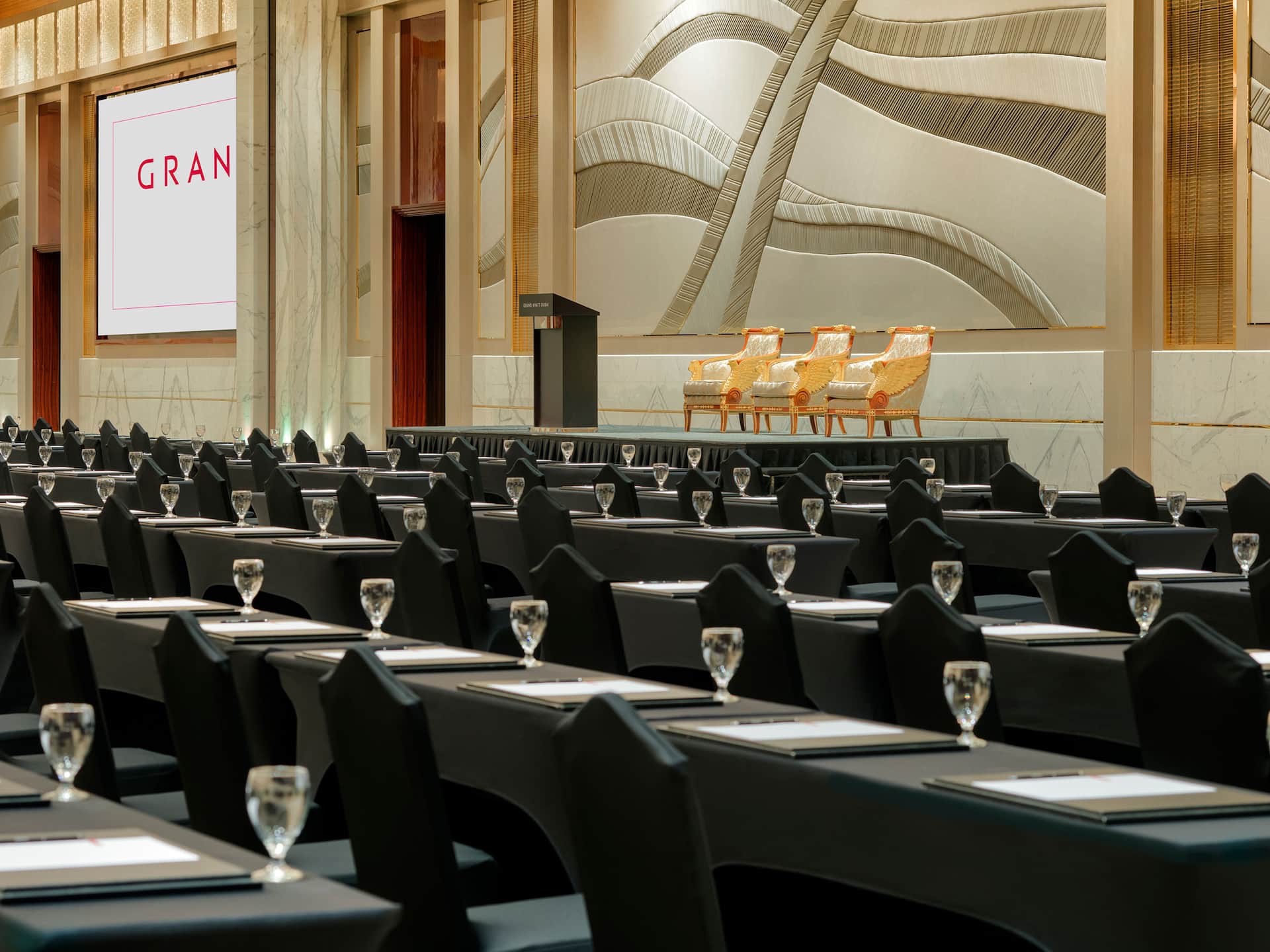 قاعة حديثة تضم مرافق متعددة الاستخدامات تمتد على مساحة أكثر من 5000 متر مربع. هذه القاعة فائقة الحداثة ومتعددة الاستخدامات، وتزخر بإمكانات لا محدودة لإقامة المناسبات الاجتماعية، أو المعارض، أو المعارض التجارية، أو حفلات الزفاف، أو الاجتماعات الكبيرة للشركات. تتمّيز القاعة بمساحة مفتوحة تبلغ 3000 متر مربع، وسقف بارتفاع 12 مترًا، وقاعة وصول ملكية بمساحة 600 متر مربع، ومجلس لكبار الشخصيات بمدخل حصري وحمام خاص، ومرافق مظلّلة من مستويين لاصطفاف السيارات، وشرفة تراس خلفية واسعة، بالإضافة إلى طريق منفصل مجهّز بالكامل لدعم الفعاليات الكبرى التي تستوعب حتى 4000 شخص. من أبرز مزايا هذه القاعة الفريدة من نوعها هي قدرتها الكبيرة على التوسع والاندماج مع قاعات ومساحات أخرى في الفندق، وهذا ما يتيح لها المرونة التامة لاستضافة فعاليات بأحجام مختلفة. تبلغ المساحة الإجمالية المخصصة لإقامة الفعاليات 7000 متر مربع، وتشمل قاعات الاحتفالات وقاعة مركز المعارض والمؤتمرات.