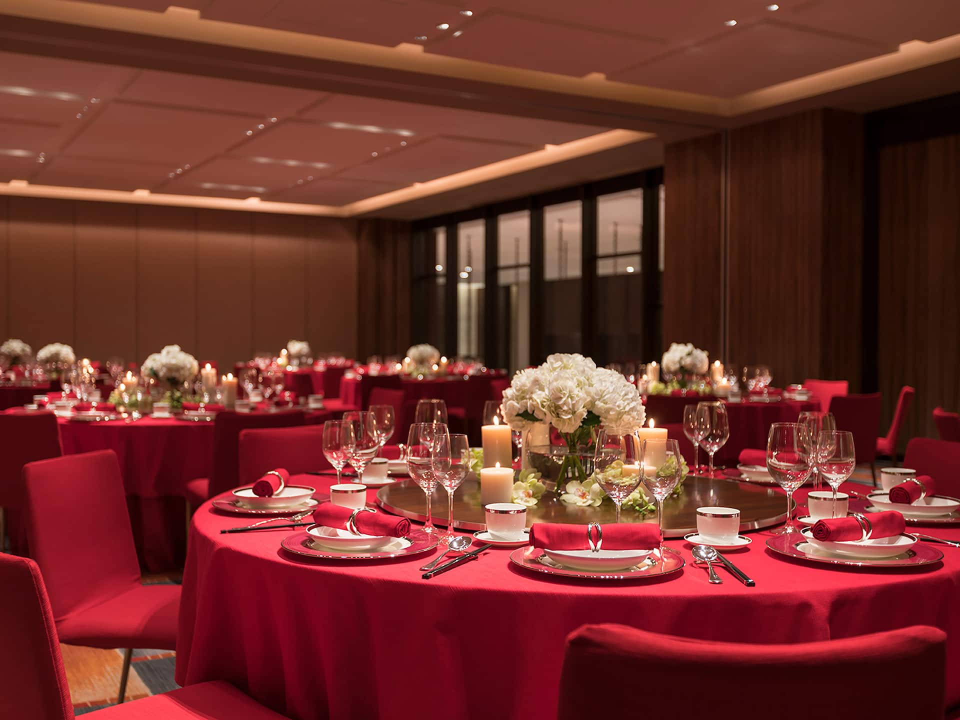 The Grand Ballroom with its floor-to-ceiling windows and natural daylight can comfortably seat up to 700 guests for weddings and has an area of 1,160 square meters (12,486 sq ft)