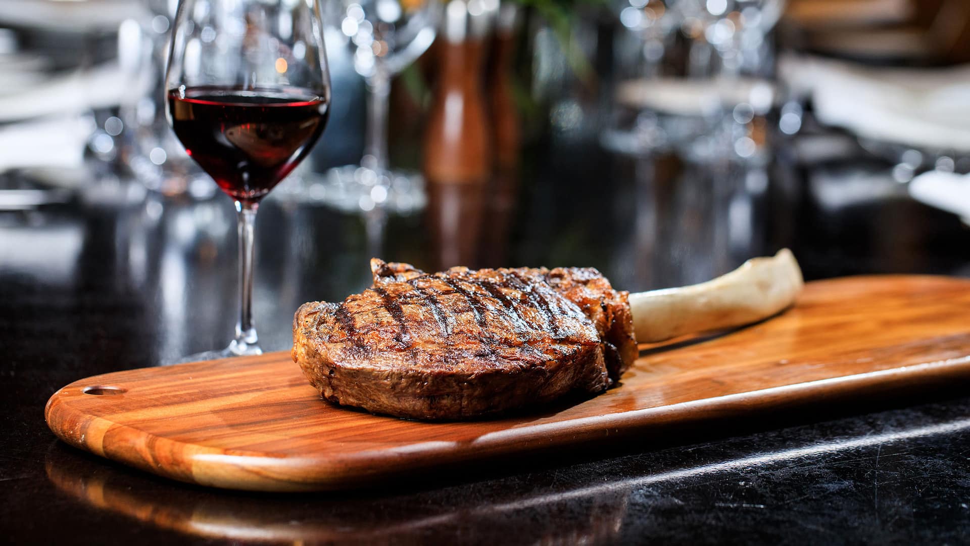 On our dinner menu: premium grilled meats like our signature wagyu tomahawk, slow-smoked American-style brisket and smoked pork belly with kohlrabi and apple remoulade, wood roasted prawns, fish and seasonal vegetables. To finish, indulge in decadent house-made desserts, such as our signature tiramisu with smoked mascarpone.