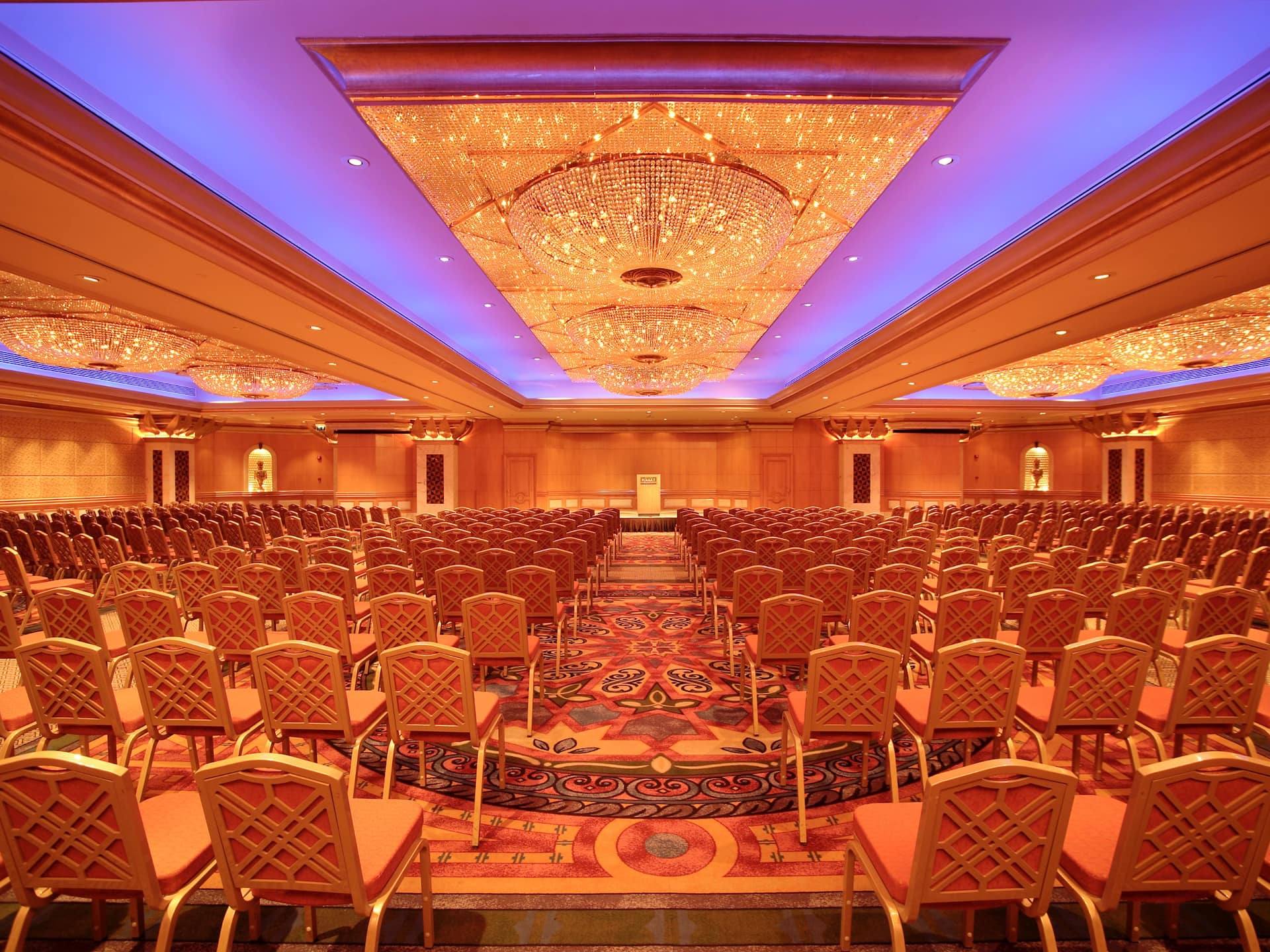 Events can take place in a choice of seven meeting rooms, located on different levels of the hotel. These include the rectangular soundproof 750-square-metre (8074 square feet) Afrah Ballroom, located on the ground floor with its own grand entrance from the adjacent car park, to the 52-square-metre (560 square feet) pre-function foyer, ideal for cocktails. It has three projection screens, and on-site technicians that can adapt the built-in audio-visual system to virtually any requirement. It is divisible into three smaller, yet no less grand, function rooms.