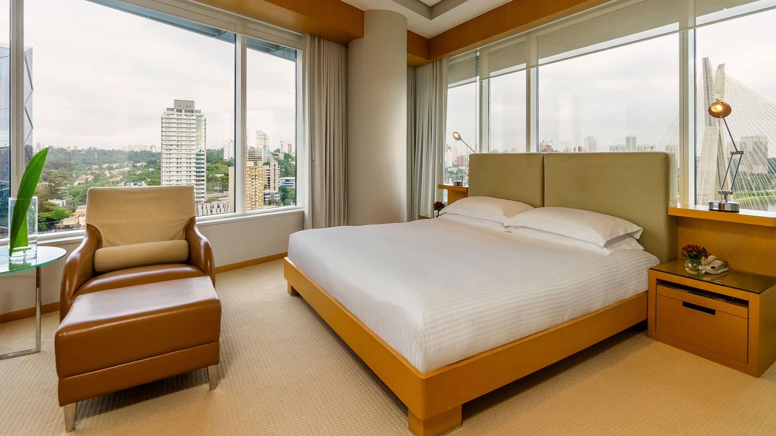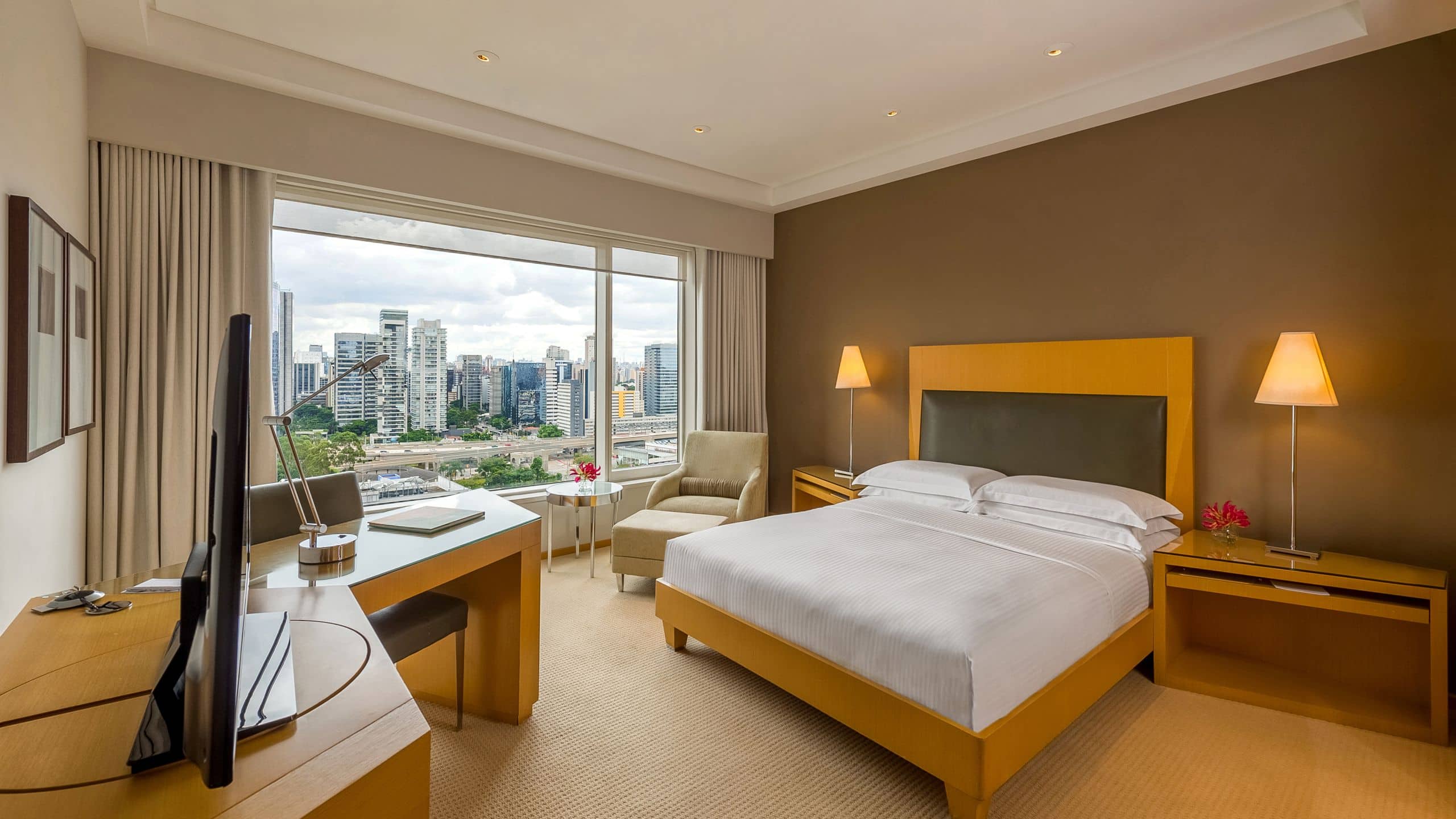 Refúgiese en 37 metros cuadrados de confort en esta habitación que cuenta con una suntuosa cama queen, área de trabajo grande, un clóset espacioso, y bañera y ducha a ras del piso independientes. Esta habitación incluye acceso al exclusivo Grand Club Lounge de la propiedad.