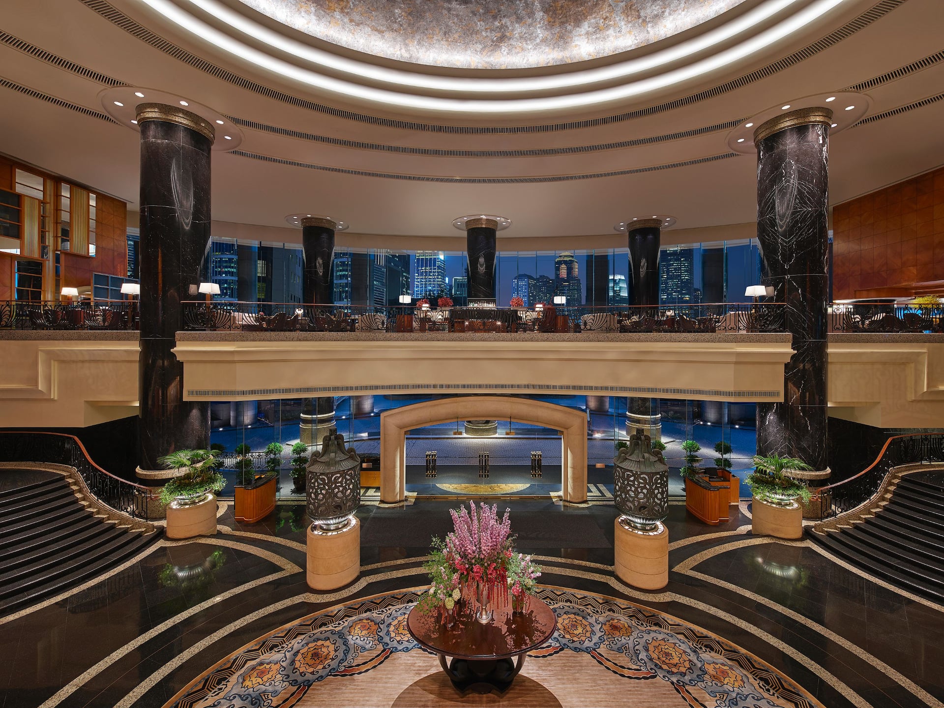 三間特首廳位於酒店5樓 ,設有落地玻璃,客人可以欣賞維多利亞港和香港天際線的美景。