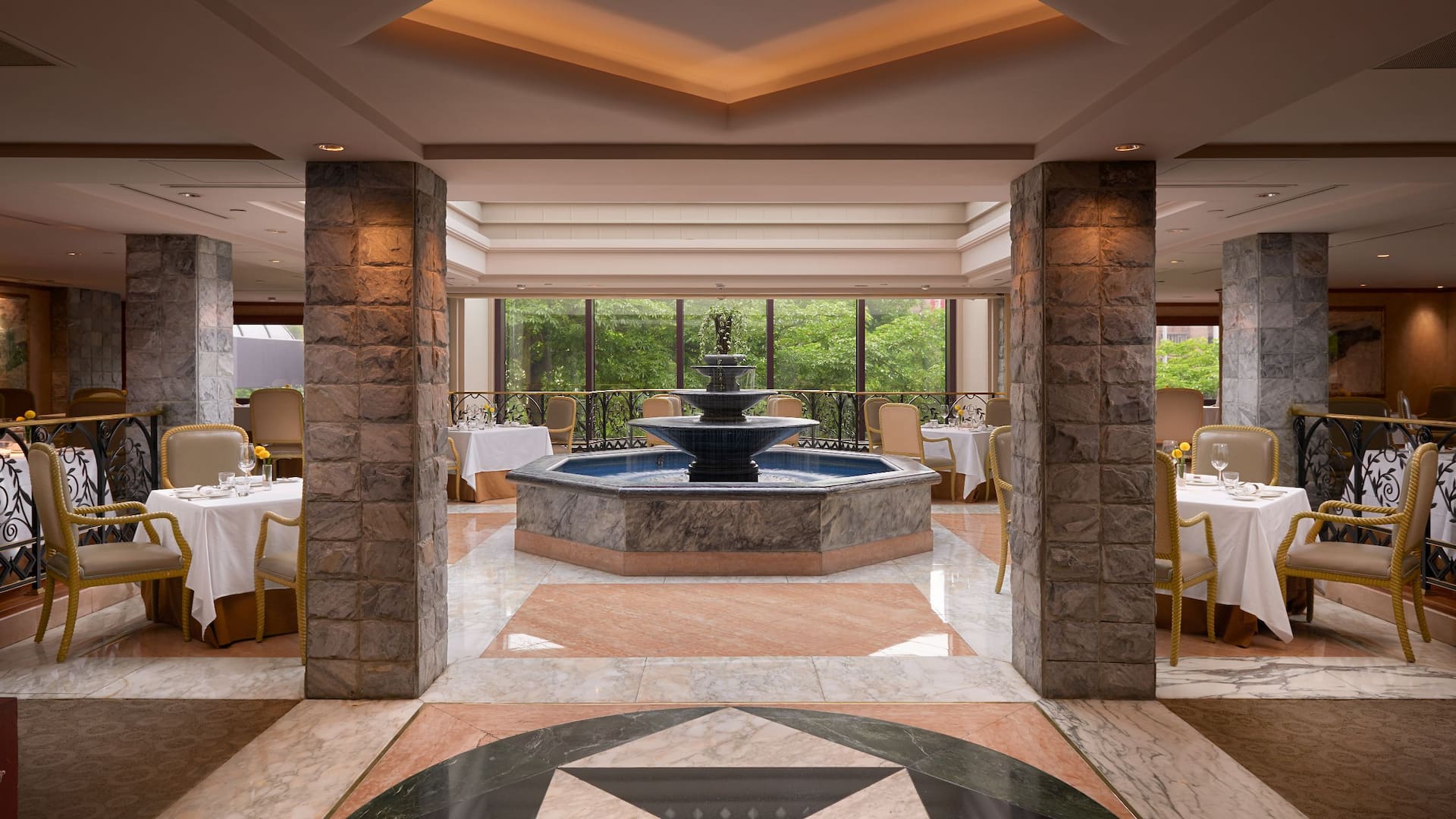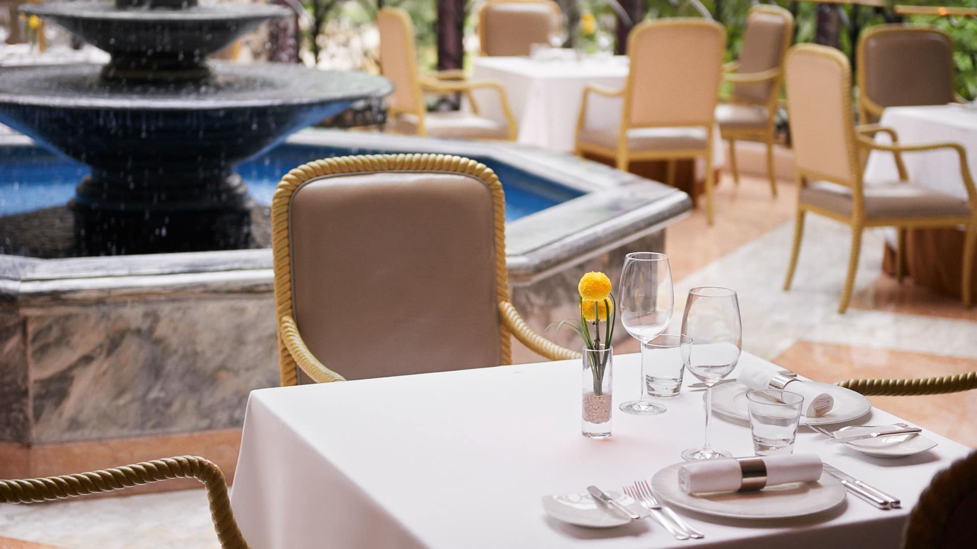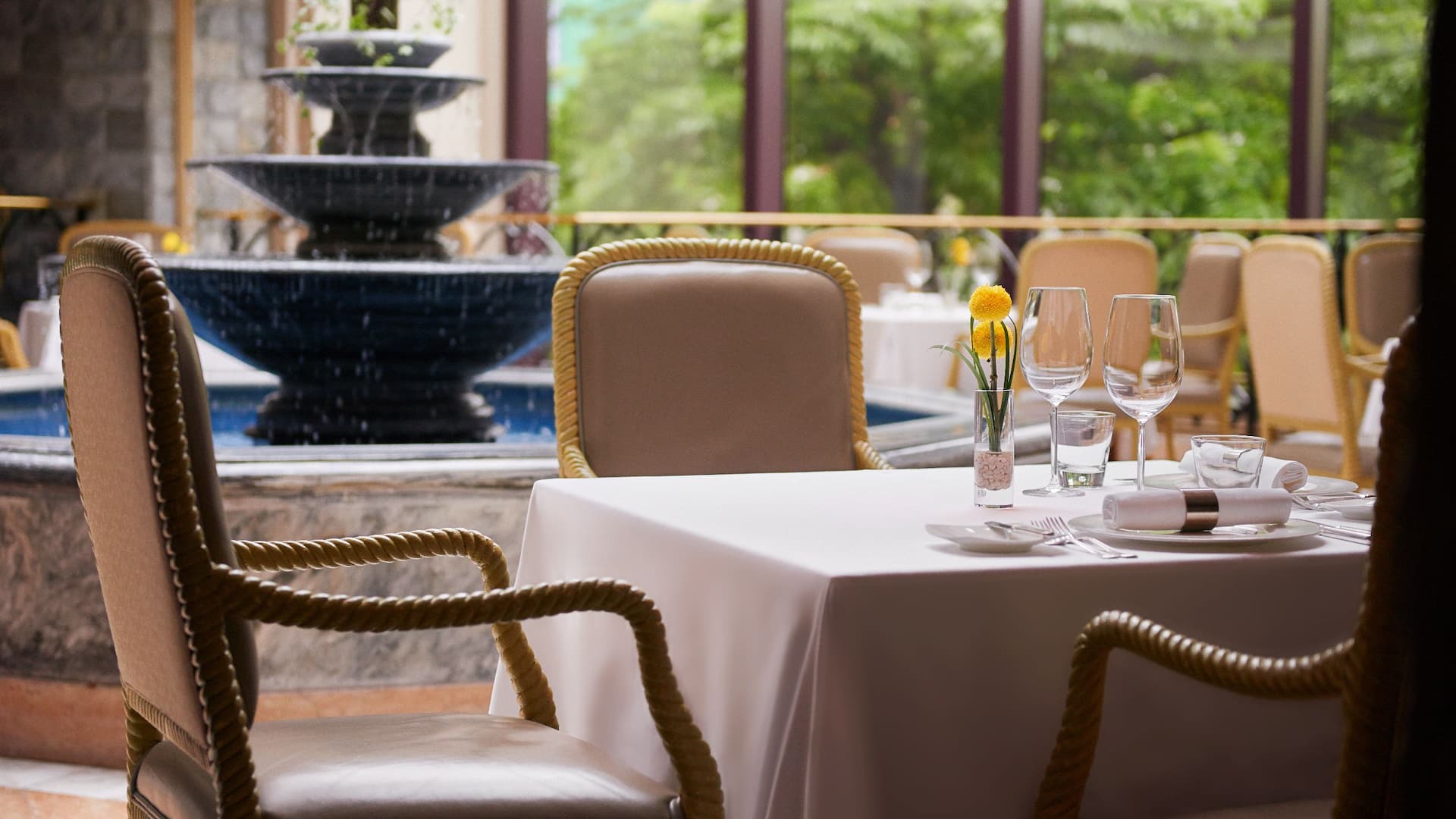 米其林餐盤推薦餐廳。以頂級歐陸料理聞名,供應各式燒烤、牛排與海鮮佳餚。餐廳內大理石噴泉與自然天光相互輝映,讓人沉浸在優雅舒適、歐式莊園般的用餐氛圍,是慶祝特殊節日或商務宴請的最佳選擇。噴泉前名聞遐邇的「求婚桌」亦提供客製化服務。