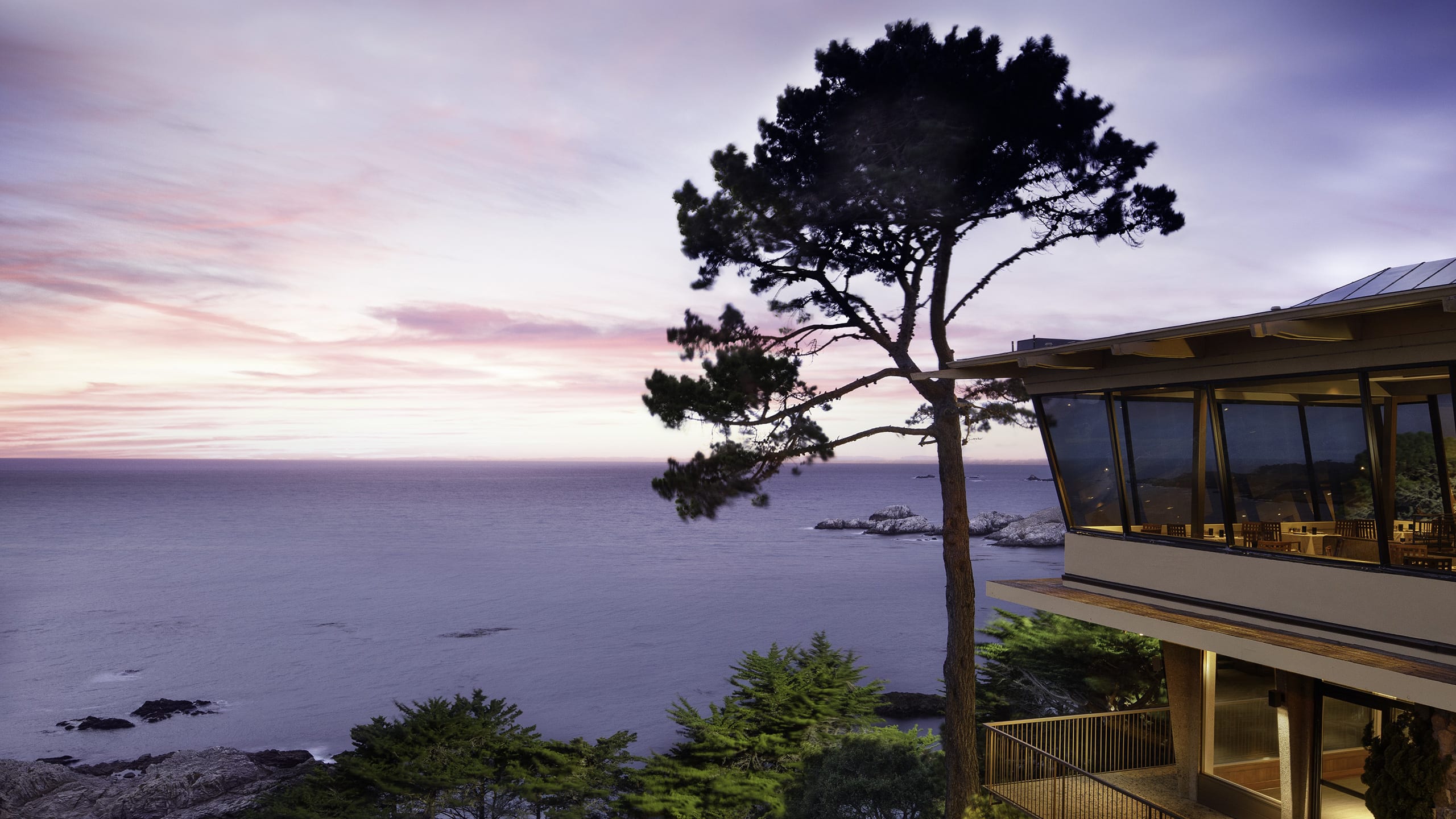 The Surf Room can accommodate up to 120 guests (80 with a dance floor). The private balcony offers an inviting backdrop to begin any evening, as you watch the sun melt into the Pacific. Dinner service continues inside with breathtaking views of the Carmel Highlands rocky ocean cliffs through floor to ceiling windows.