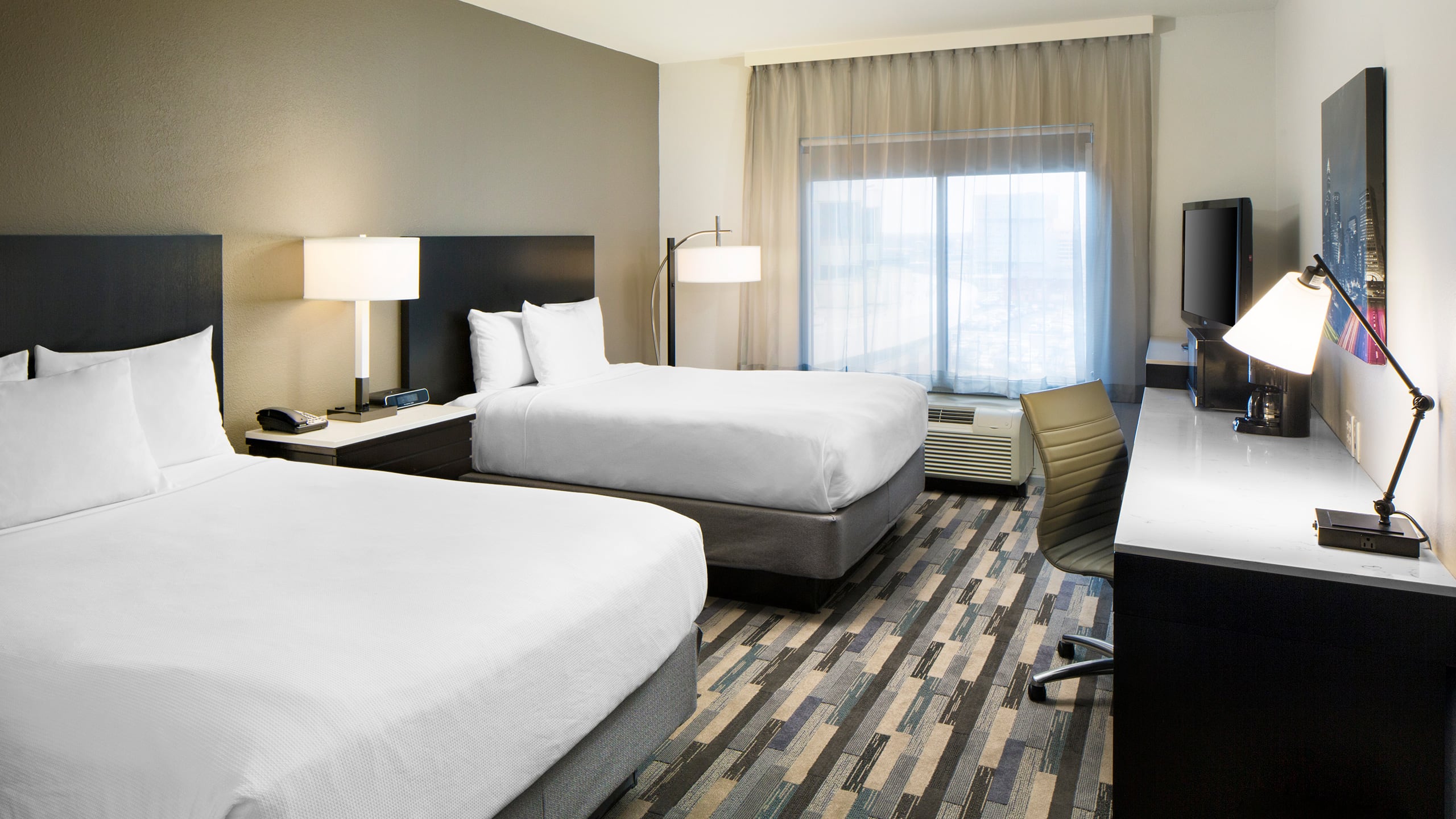 Relájese en esta habitación de 32 a 35 metros cuadrados adaptada para personas con discapacidad que cuenta con una suntuosa cama king y una combinación de ducha y bañera con barras de sujeción.