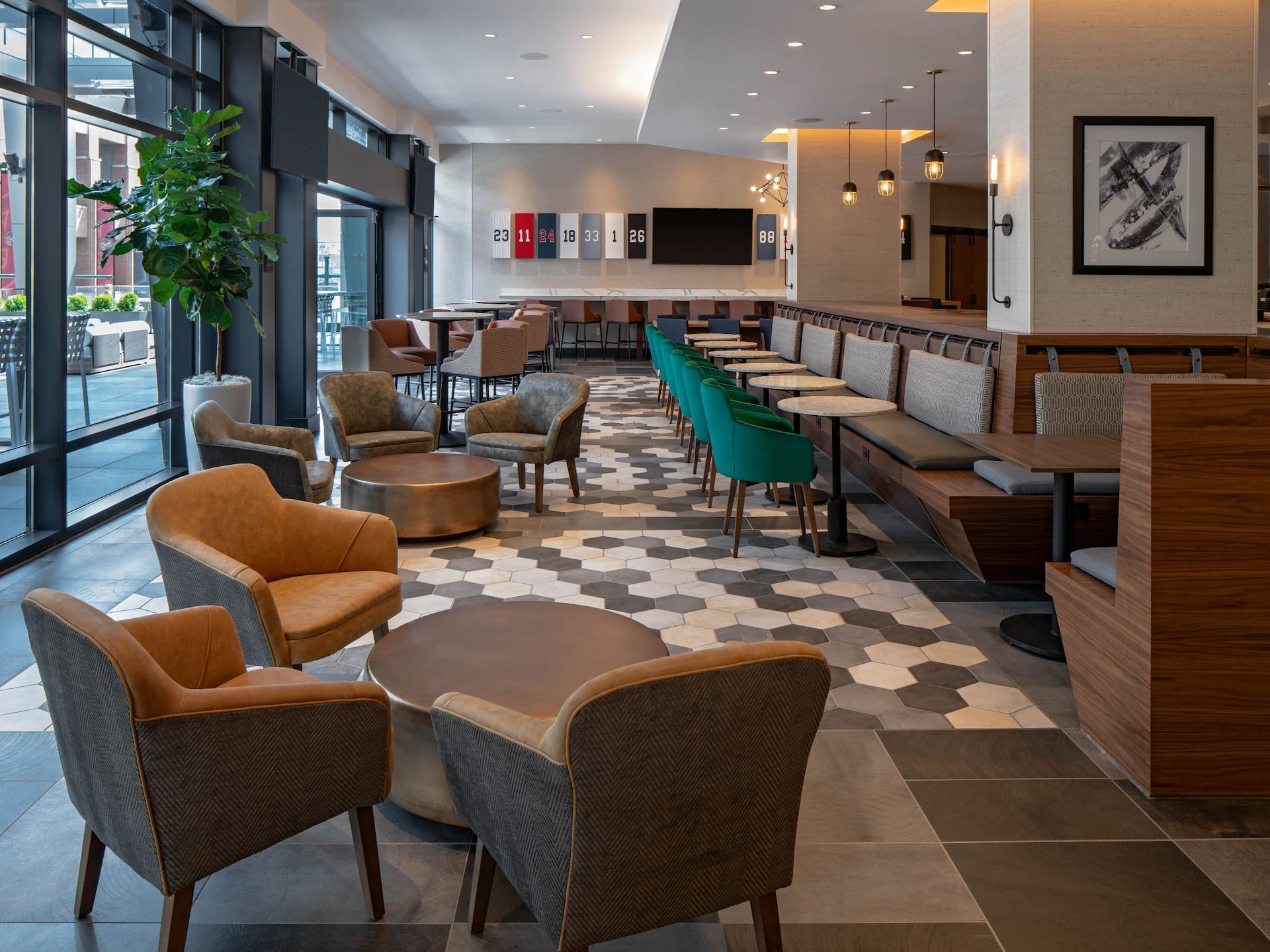 Pivot Bar & Balcony couples a chef-driven menu and craft cocktails with views of Bankers Life Fieldhouse, home to the Indiana Pacers. Ideal for catching up over cocktails or lounging near the fire pit, Pivot Bar & Balcony is a 3,000-square-foot space where you can relax your way. Located on our second floor, the restaurant and bar features an open-air balcony with fire pits, plush couches, tables, and big-screen TVs, along with an indoor bar and seating area.