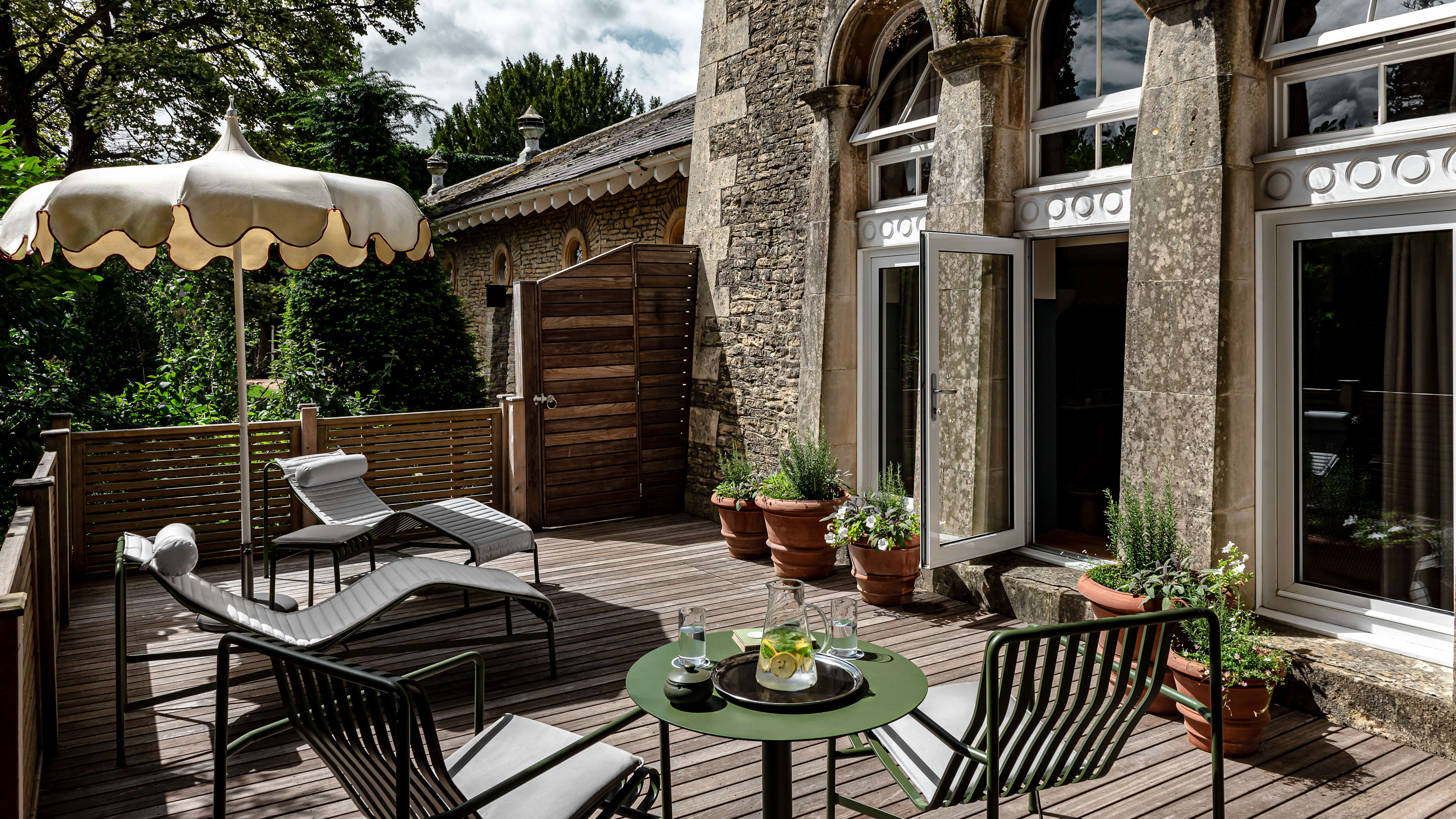 If you're travelling à deux, the St Mary Suite has a private terrace (with lake views), and a super-king-size bed you may never want to leave. And, if it’s top-tier soaking you’re after, the Cowley Manor Suite has a plum, freestanding tub big enough for two overlooking the gardens, and a large wraparound balcony. For something equally spoiling, the Waterlily Rooms, in the main house have stunning views of the gardens and lake, spacious layouts, and large bathrooms with both a bathtub and separate rainfall shower.