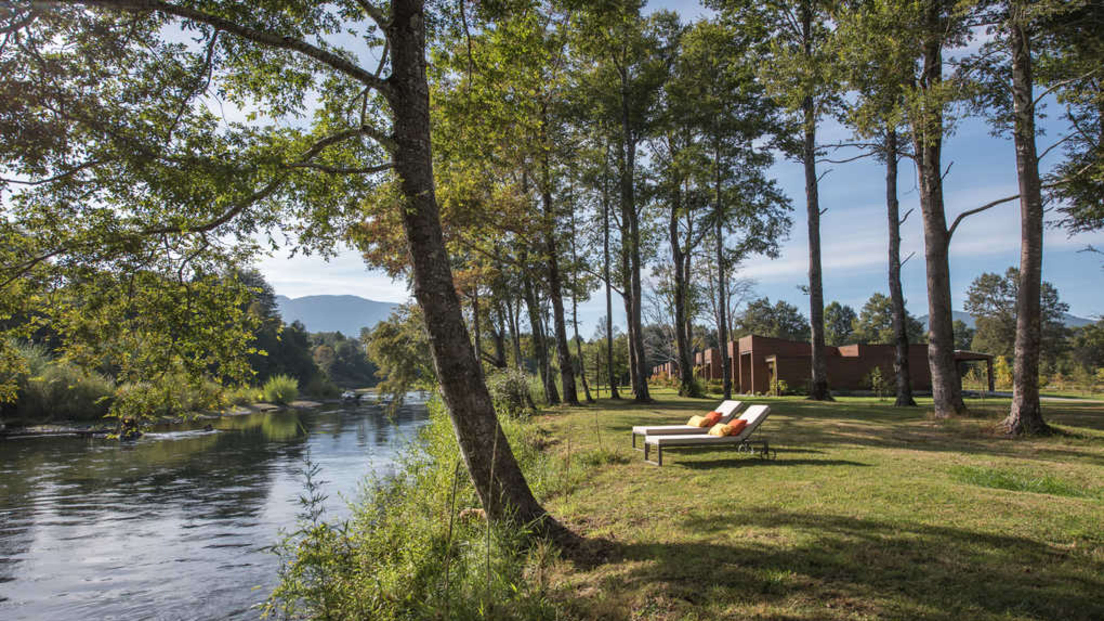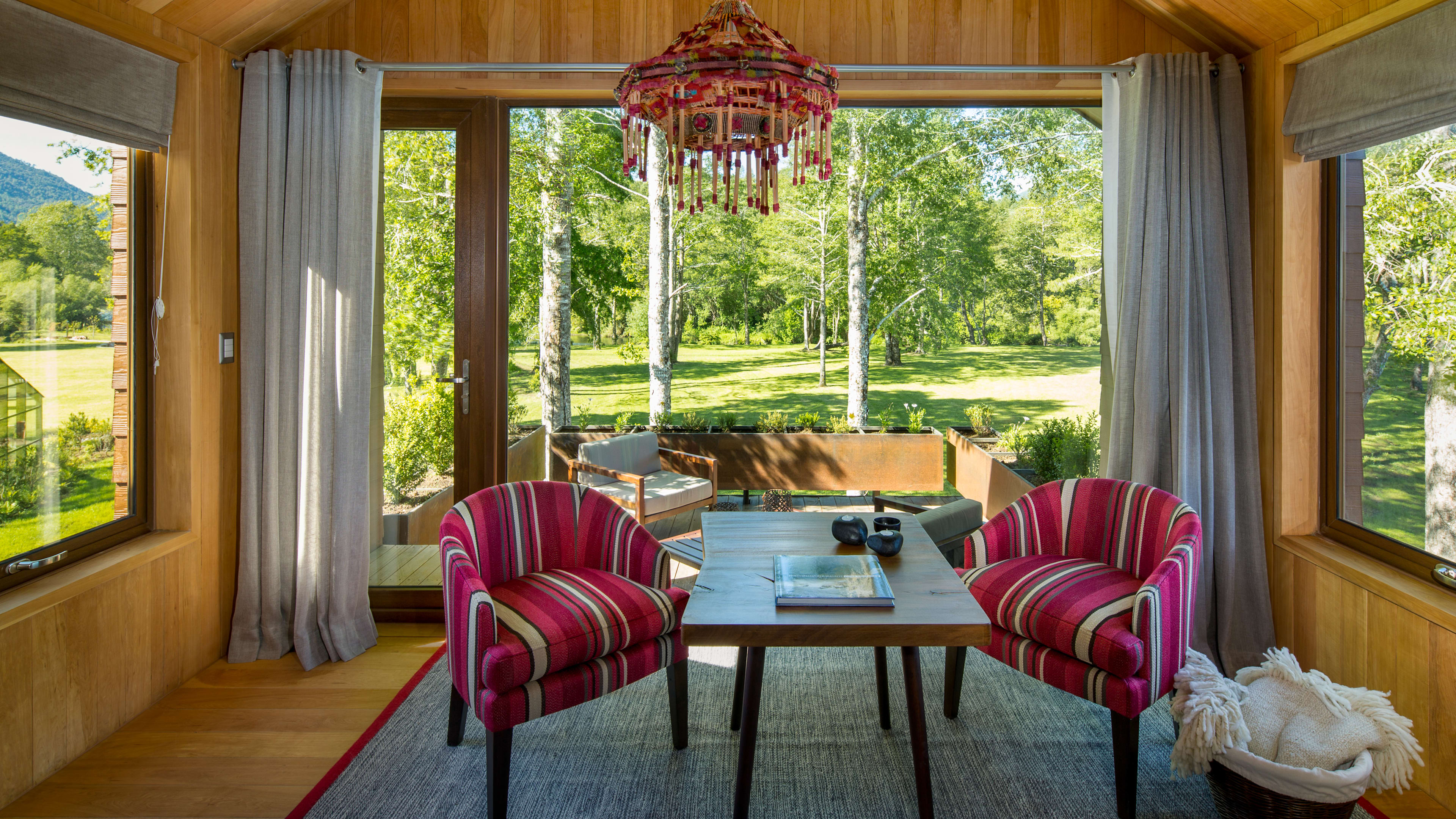Spring for a Villa Suite. The most spacious room type, each one features a crackling fireplace, outdoor tub and panoramic windows to take in the scenery. Since the suites are situated on the riverbank, guests can fly-fish from their terrace.