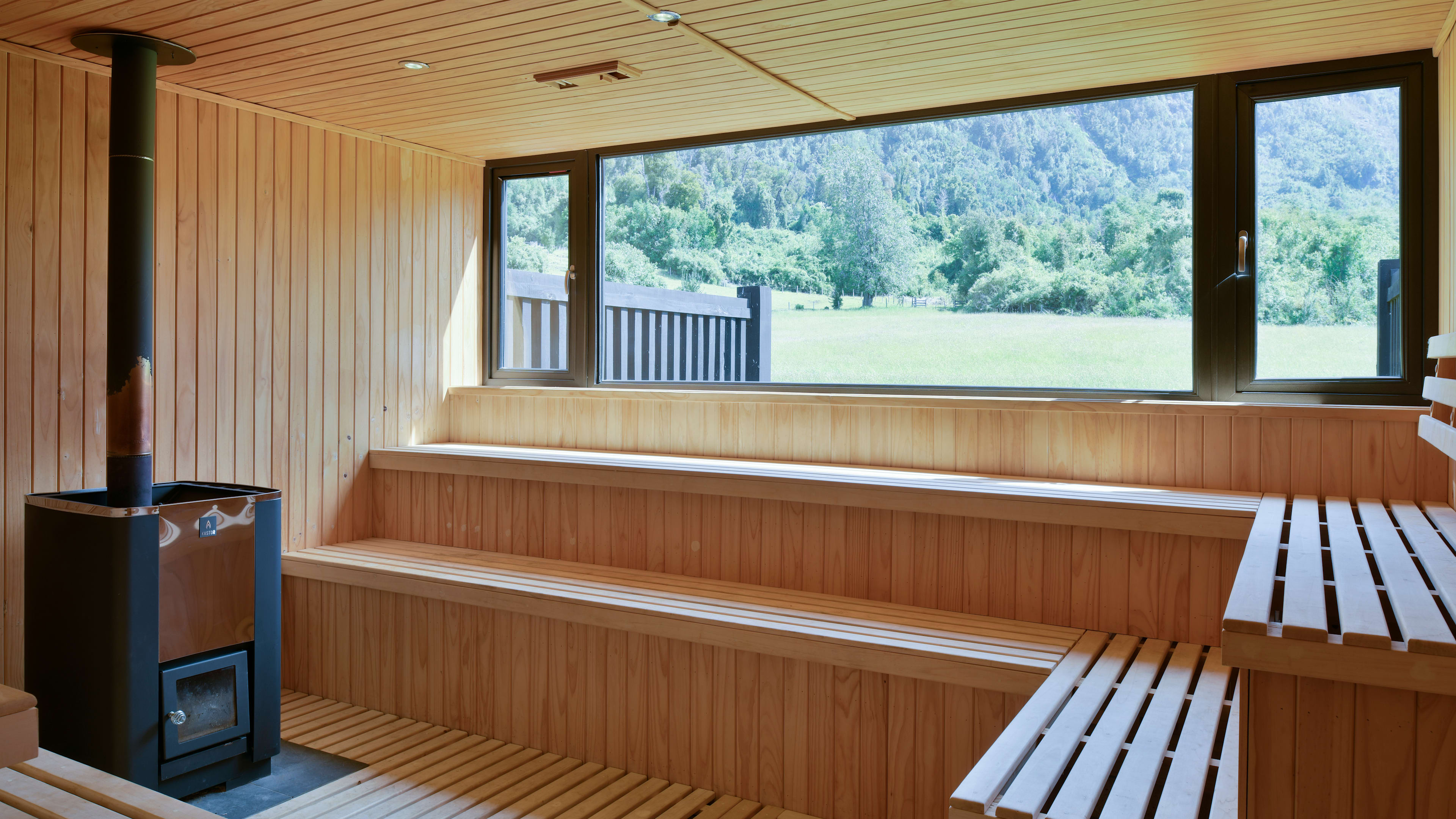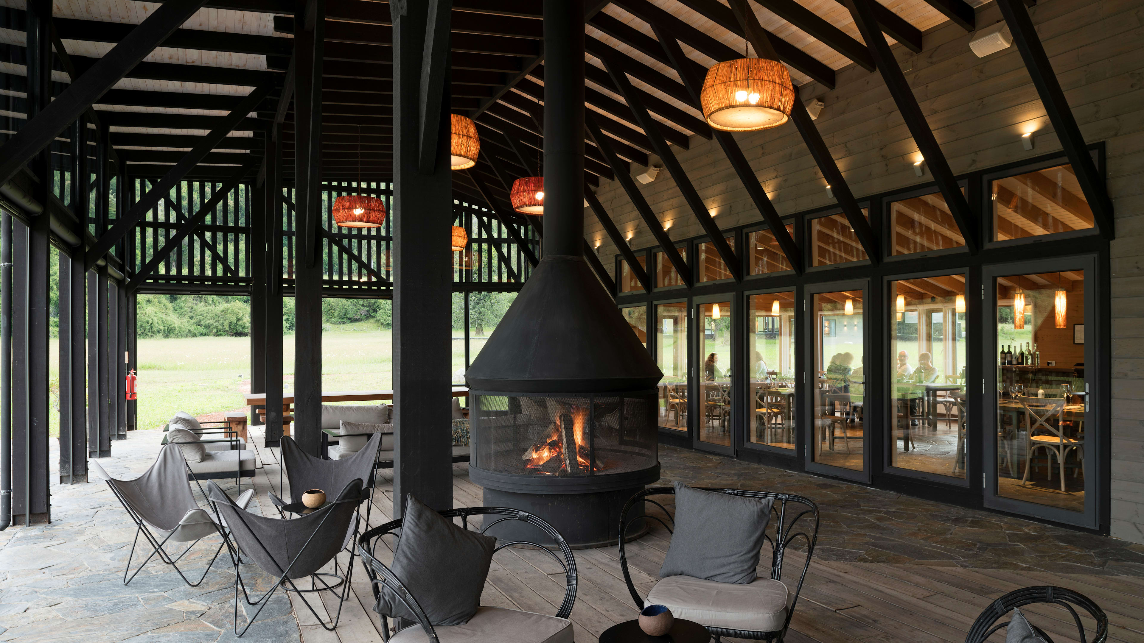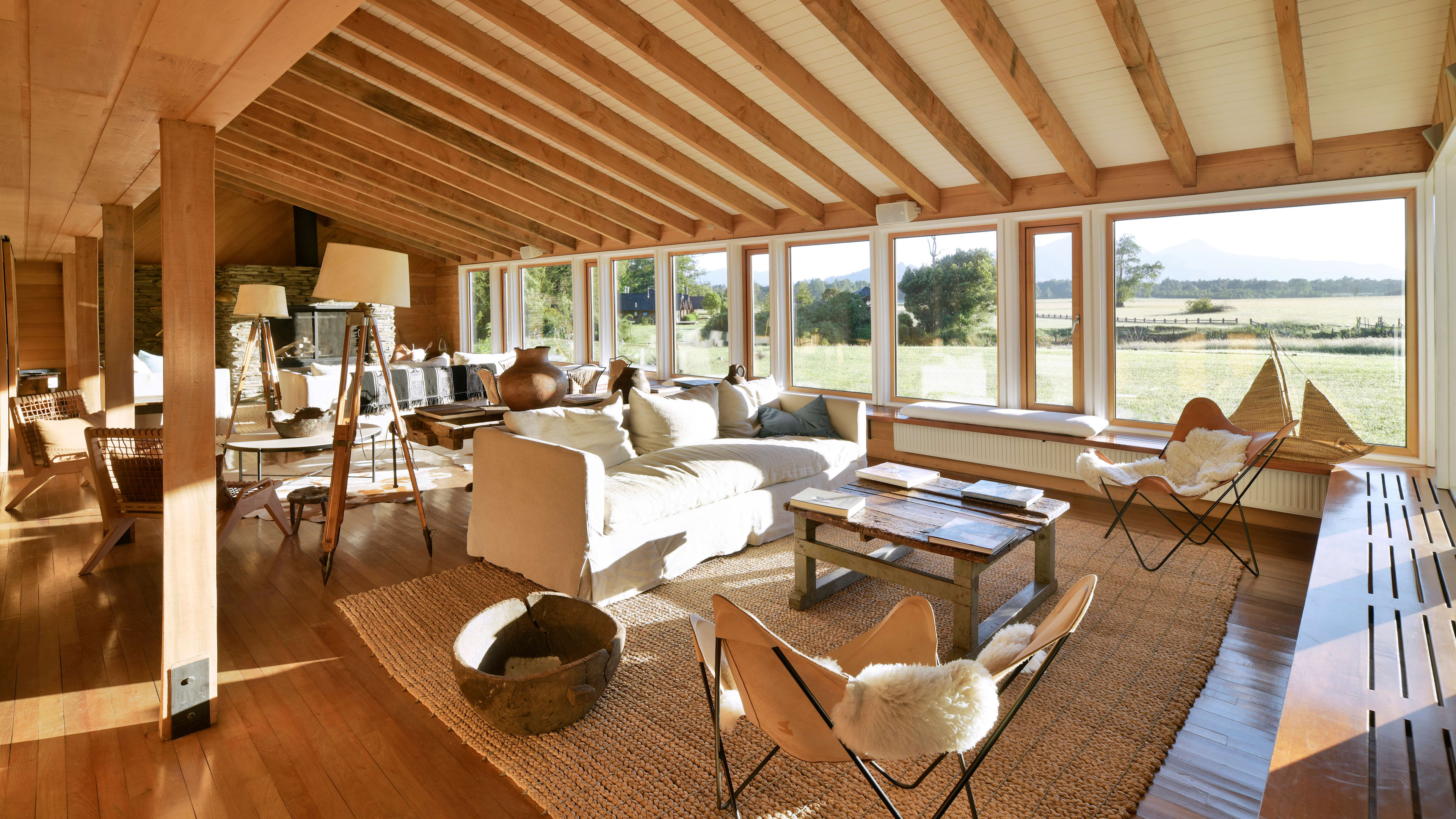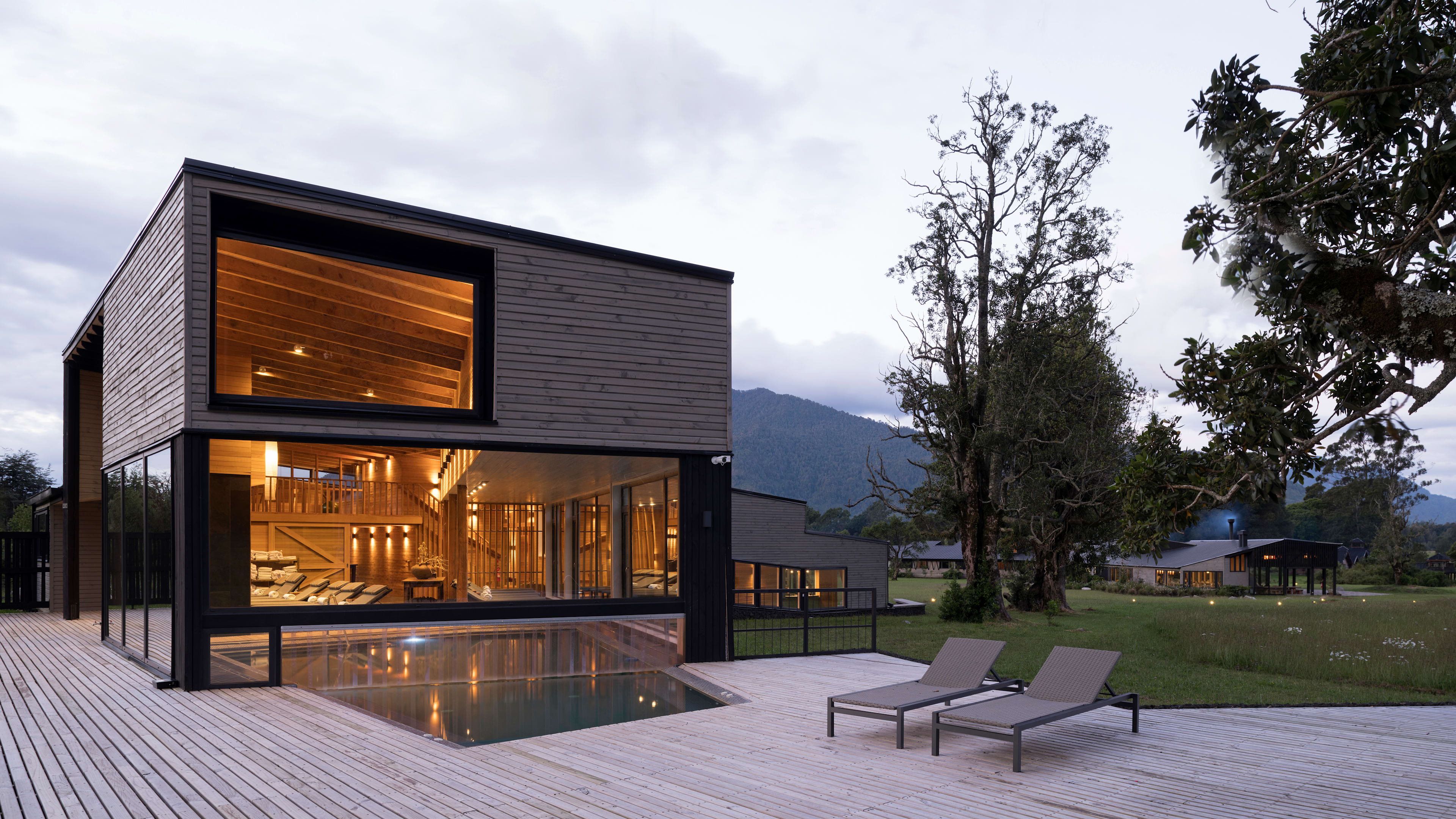 Clad from floor to ceiling in native timber, the rustically minimalist rooms look like a cross between an Alpine chalet, gaucho hut and Californian beach house. Every room has picture windows with uninterrupted views of the oak-dotted gardens, meadows and distant mountains; a wooden sill runs beneath each window, creating the perfect place to pen a postcard. The Exploradores Rooms, housed in a separate block about 120 metres from the main building, have views of the Rupumeica granite towers. For extra legroom, go for one of the suites, which have living areas with cowhide lounge chairs.