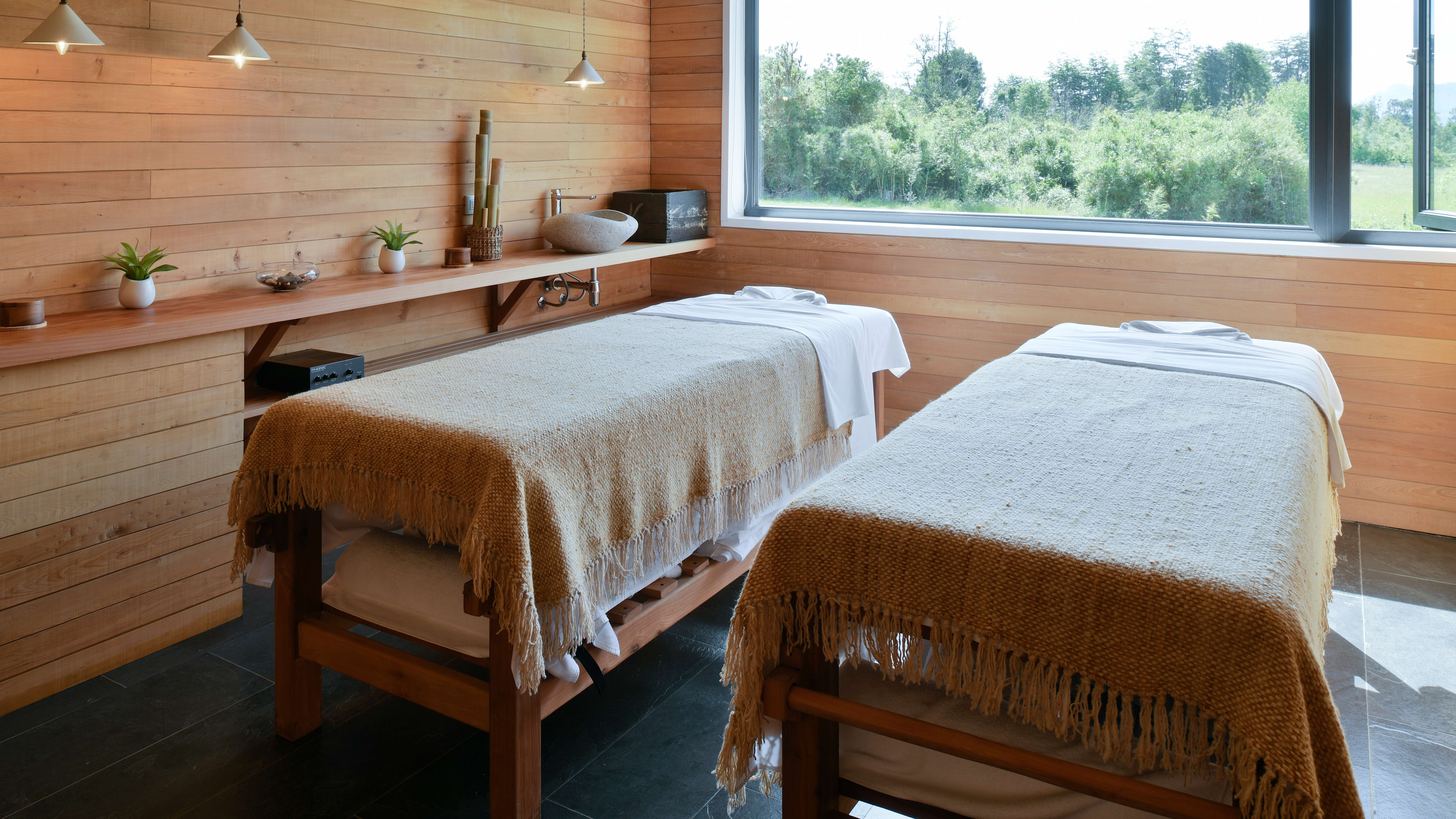Dressed in native woods and volcanic rock, Triwe Spa channels the placid beauty of the Valdivian landscape. Its light-flooded spaces look out across oak-studded fields towards an amphitheatre of mountains, where medicinal plants grow and crystal-clear streams are abundant. The treatments feature native herbs, berries and oils which are completely organic and responsibly sourced. The menu includes facials, wraps, muscle-soothing massages and treatments designed to release specific tension and stiffness. Alongside the treatment rooms, the spa has a sauna, relaxation area and an indoor/outdoor pool with a sun deck.
