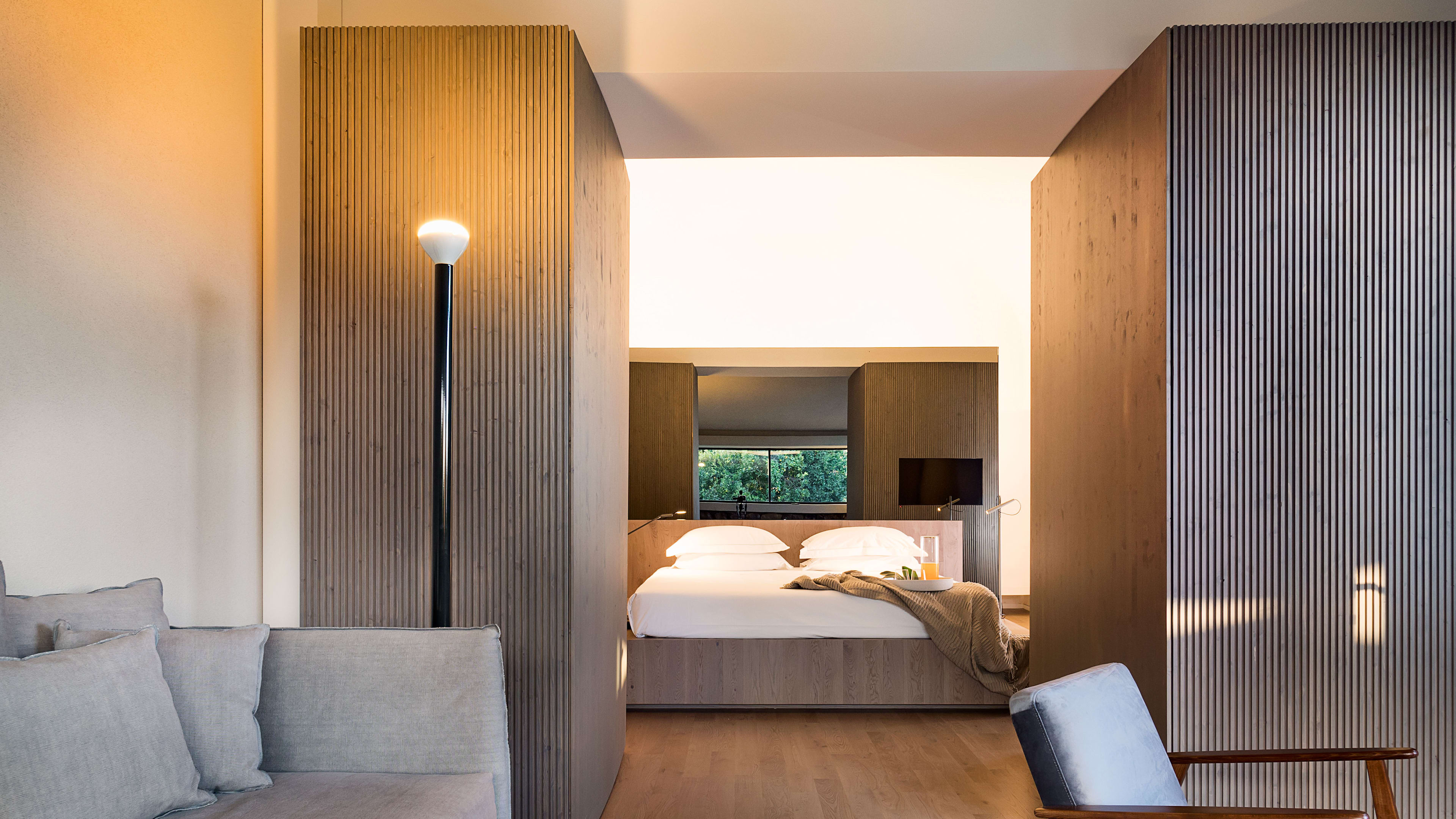Bambini can stay; some rooms fit extra beds, the pool has a beach-style entrance, and there’s some sweet and stylish mini furnishings (we spied a little Philippe Starck Ghost chair). But, it’s far more romantic if you leave them with a sitter.