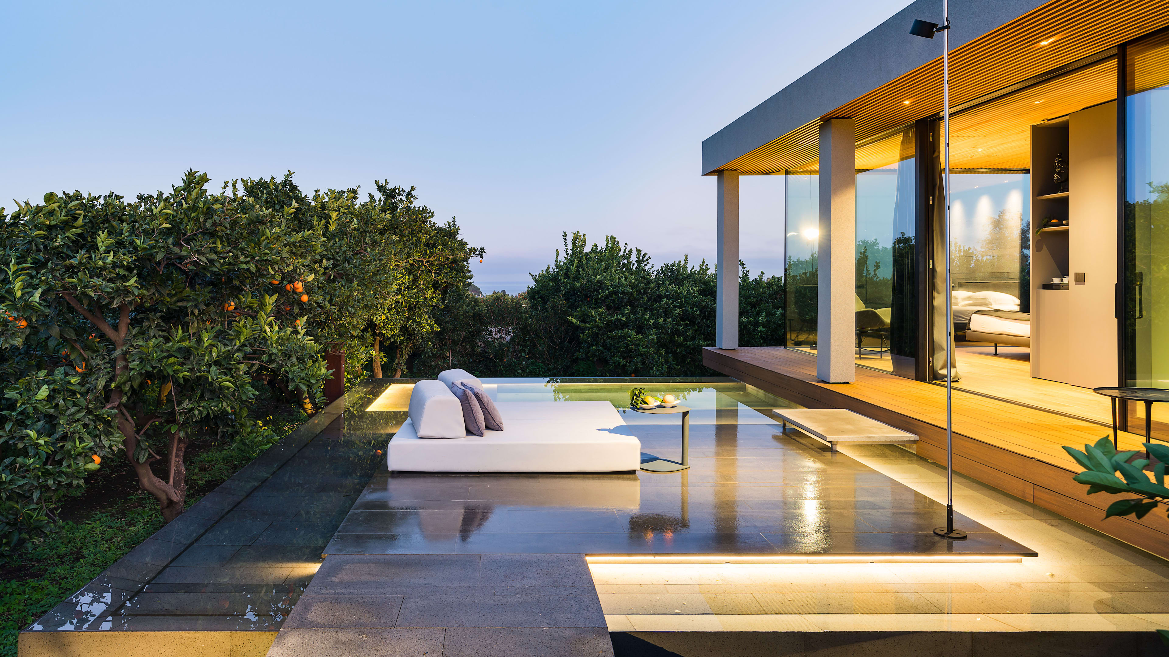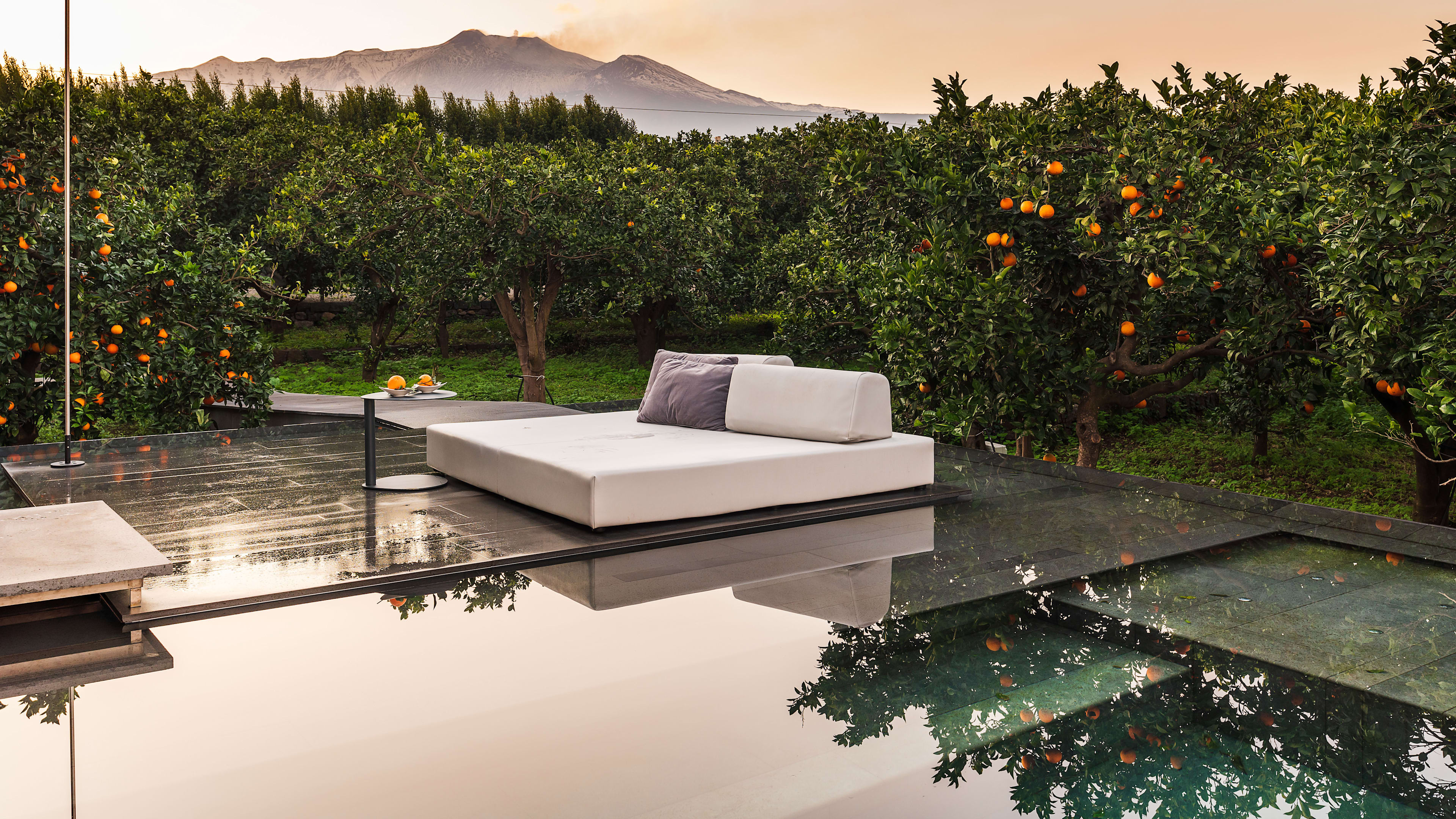 Etna smoulders away like a Byronic hero from all aspects of Sicilian retreat Zash Country Boutique Hotel & Spa. But, don’t mind him – or the brief rumblings he makes – because this is a blissful, peaceful paradise. Orange-blossom scents breeze by, birdsong twinkles, and all around are the searing greens and blues of dense citrus groves and the distant Ionian Sea. You’ll get spells of spa simmering, dining with a vivid imagination that lingers till late, and chilled tastings of the fertile volcanic terroir. The dusky-rose villa of the Maugeri wine dynasty and architect Antonio Iraci’s modernist villas – some with bubbling private pools – show an intergenerational design nous contrasting rugged lavastone and a more burnished milieu, all conceived with a passion that runs hotter than the lava you might – if you’re lucky – see spilling after dark.