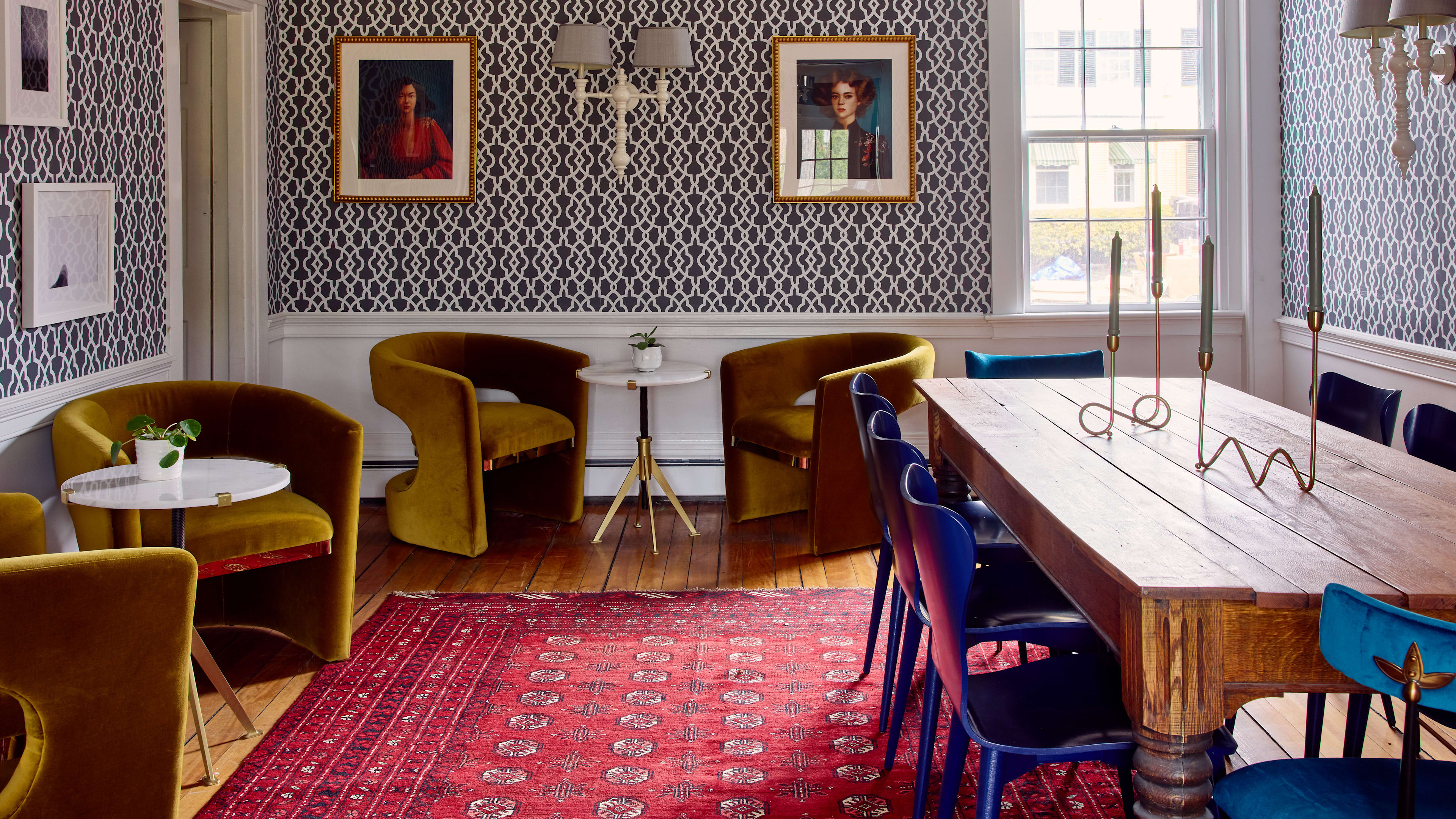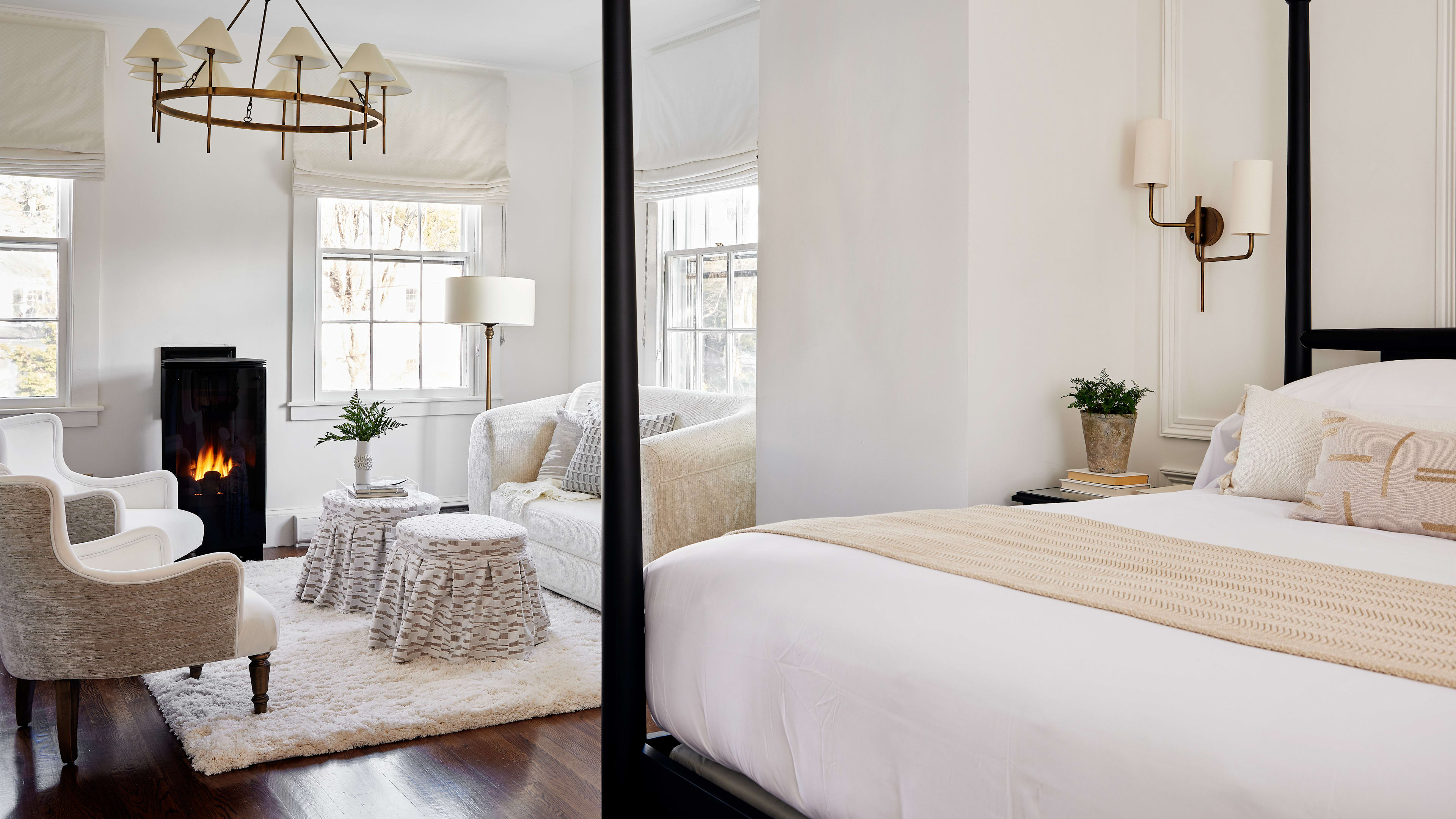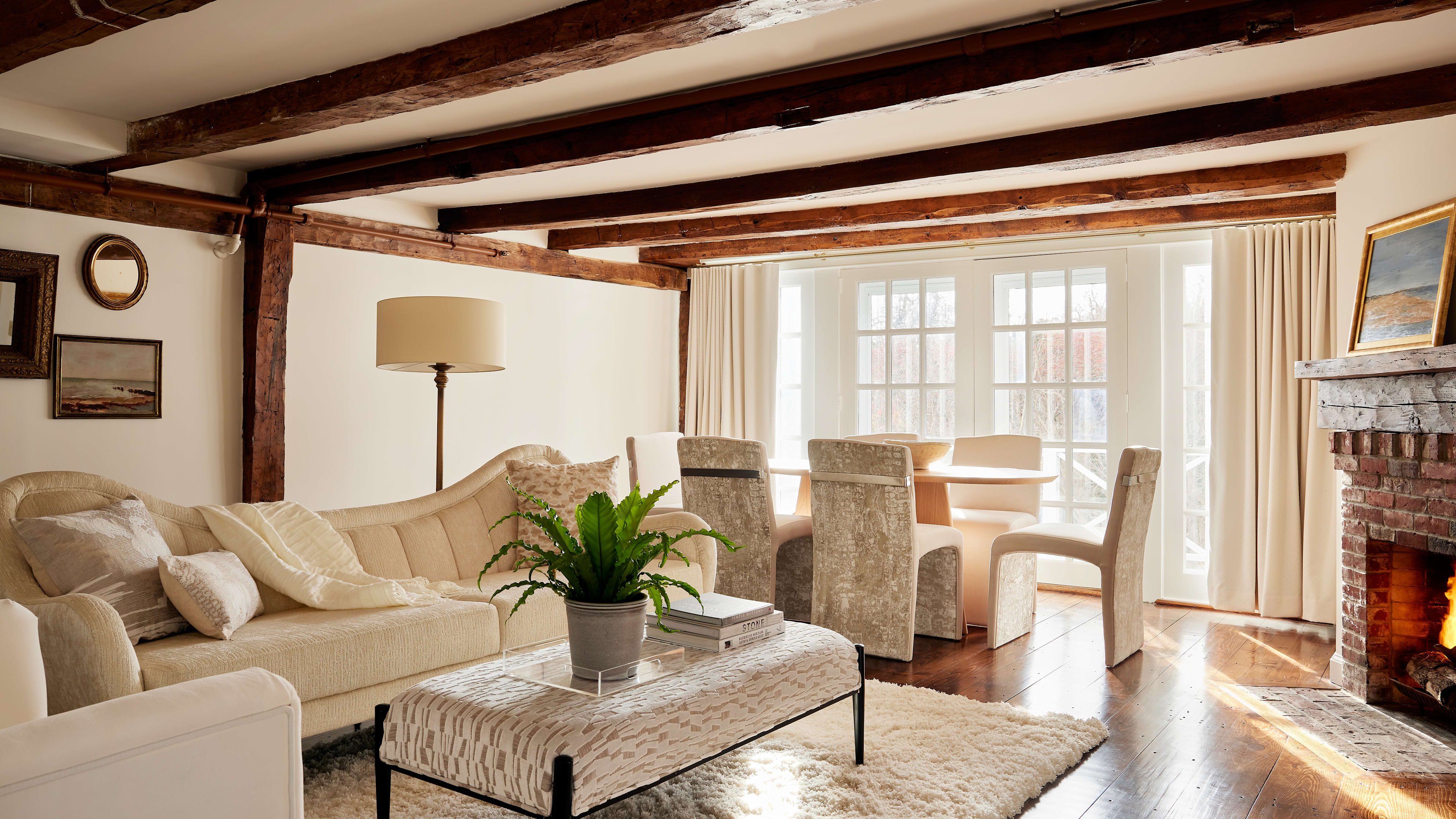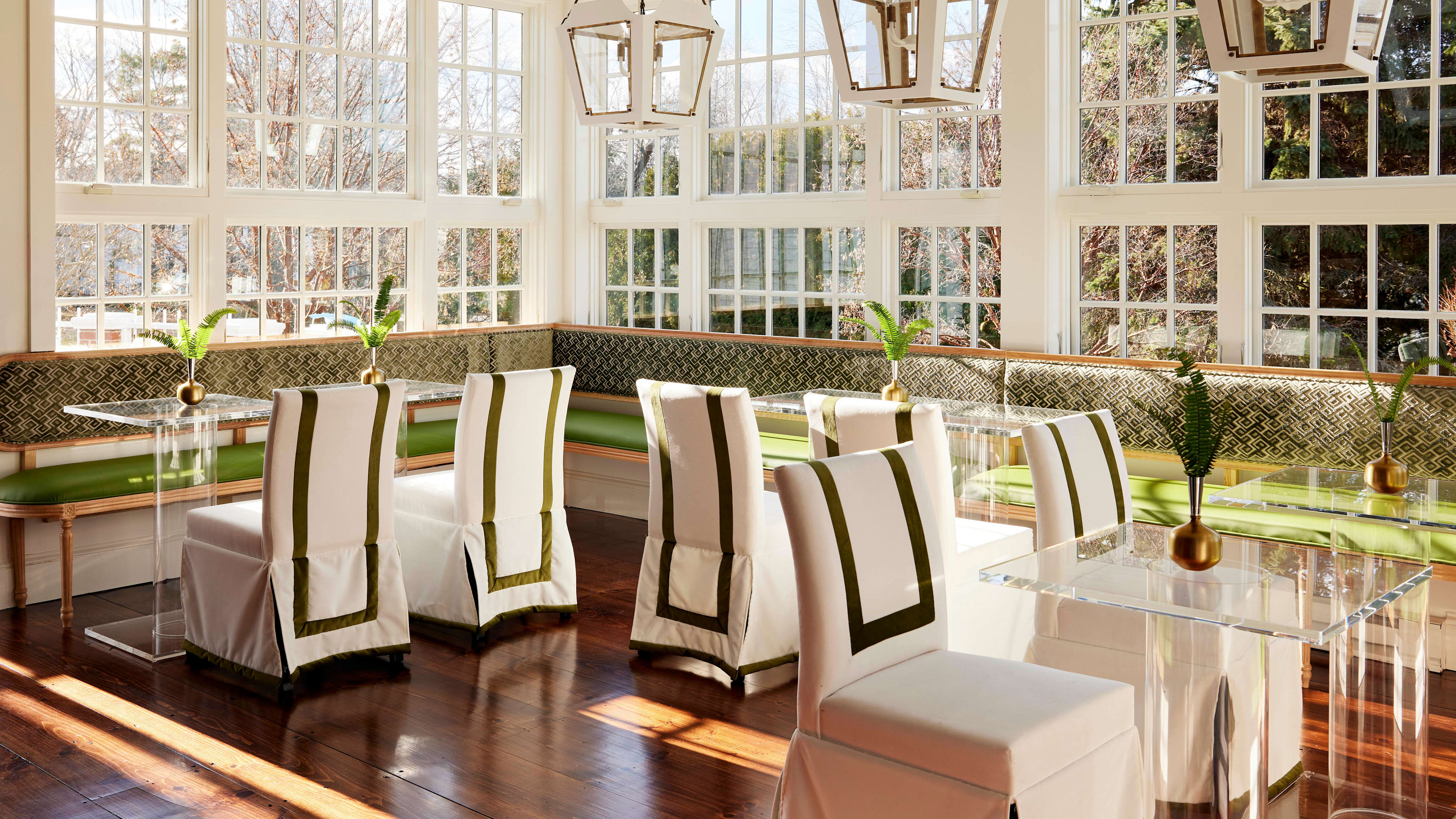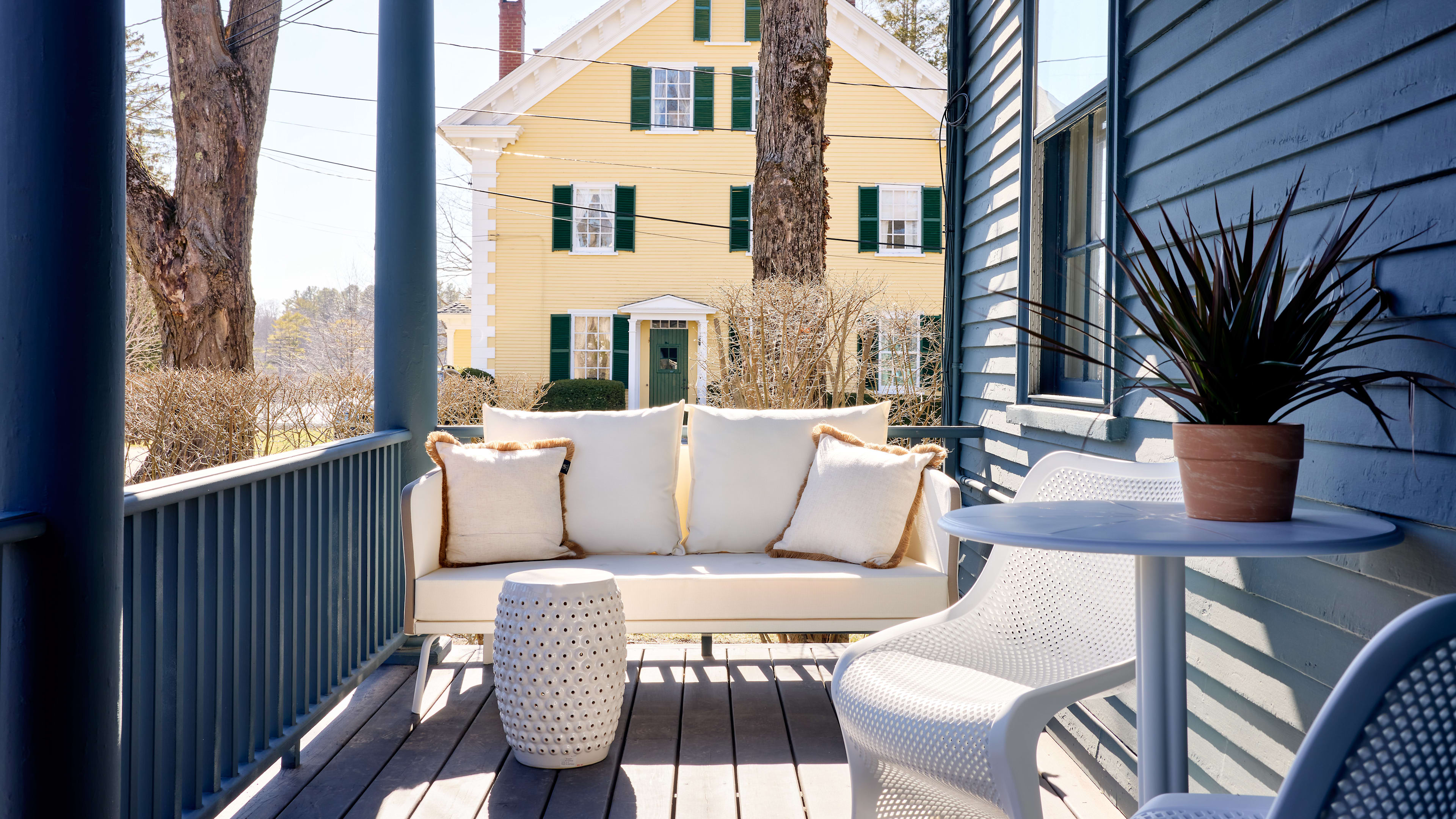 Nathaniel Lord’s drawing room is an undeniably handsome spot, but breakfast on the deck is idyllic in summer, and the conservatory-like lounge of green-velvet banquettes and Ghost chairs at William Jefferds House is just as enticing.
