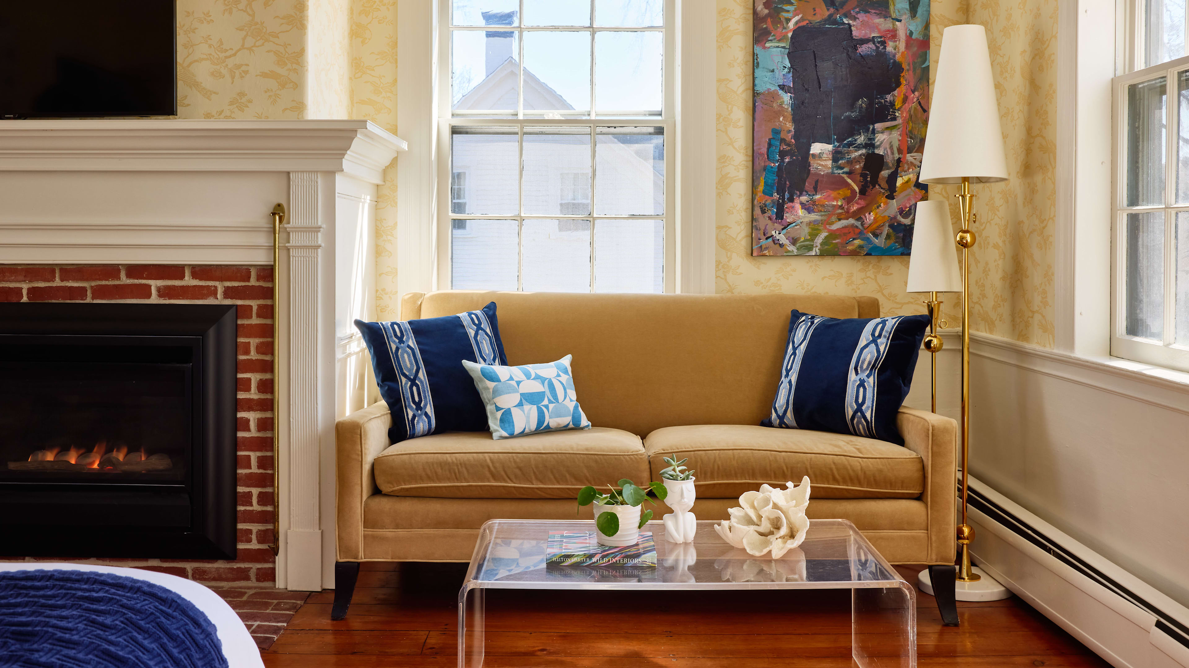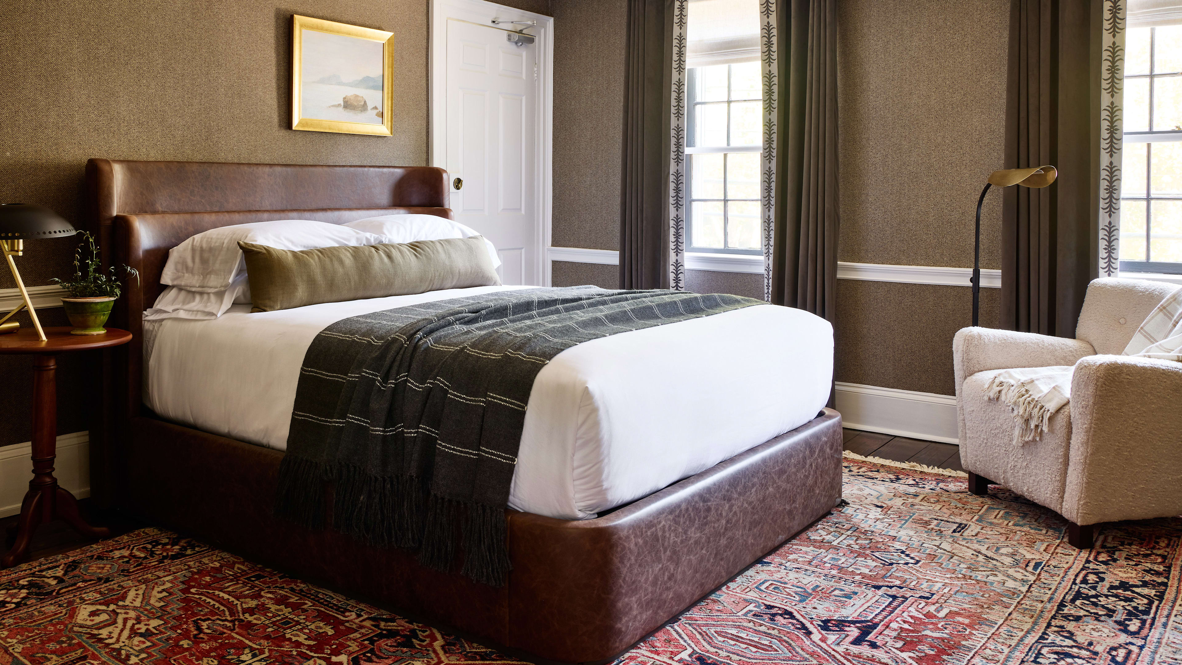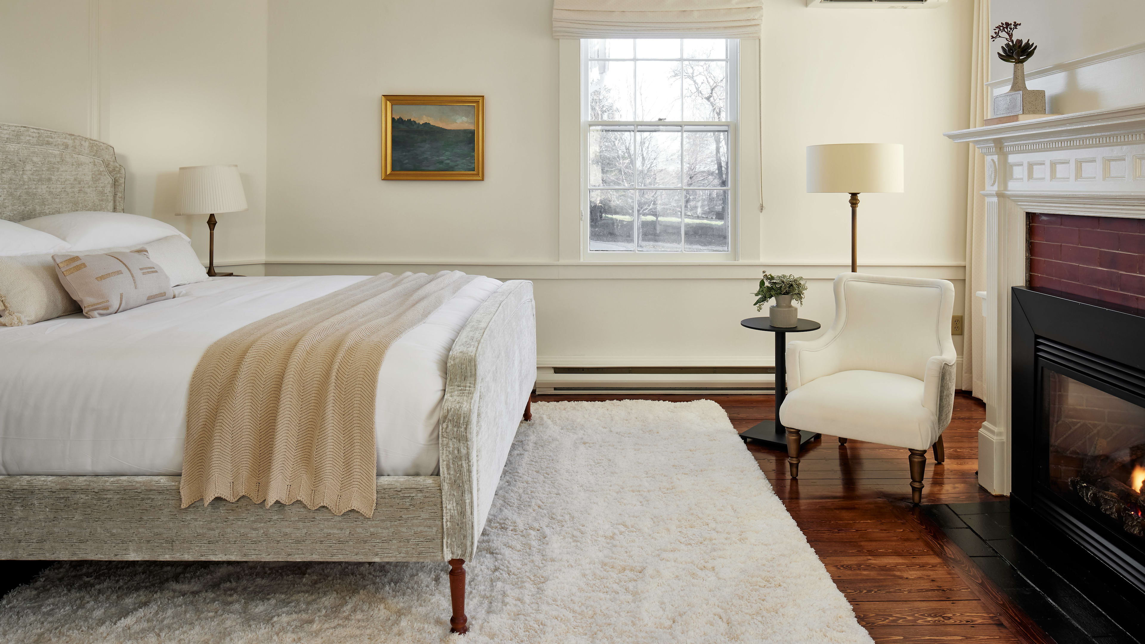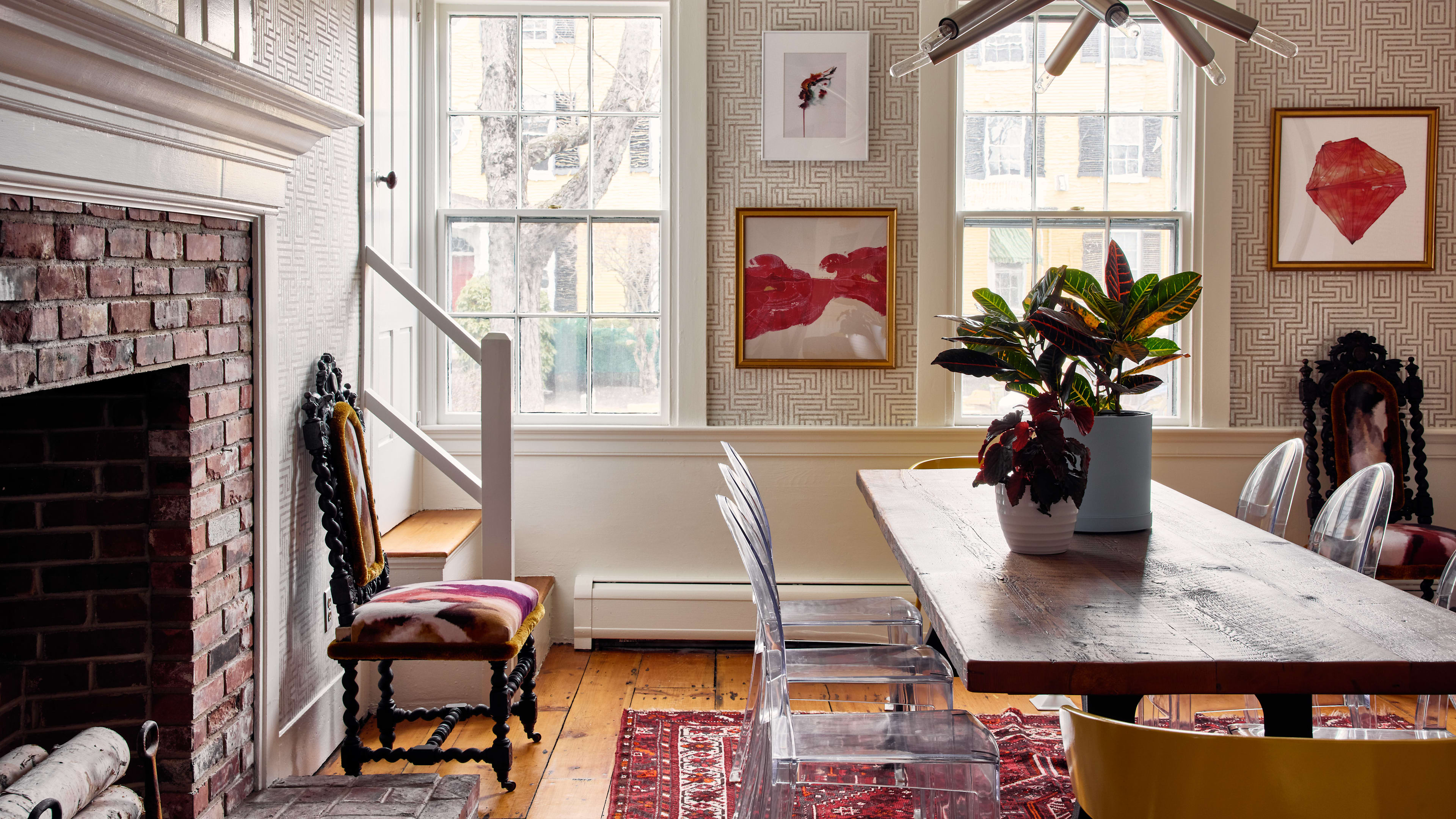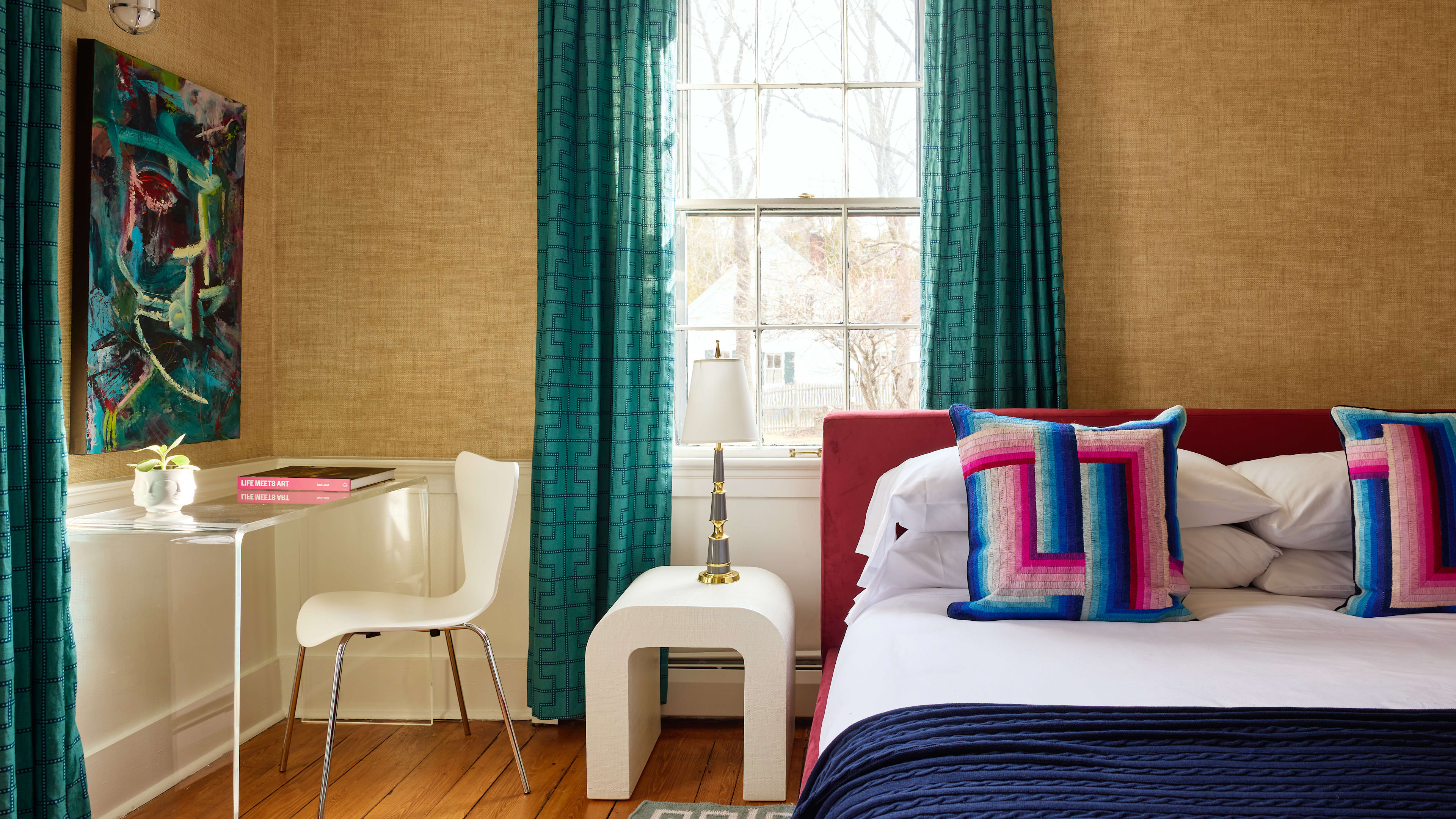 Nathaniel Lord’s drawing room is an undeniably handsome spot, but breakfast on the deck is idyllic in summer, and the conservatory-like lounge of green-velvet banquettes and Ghost chairs at William Jefferds House is just as enticing.