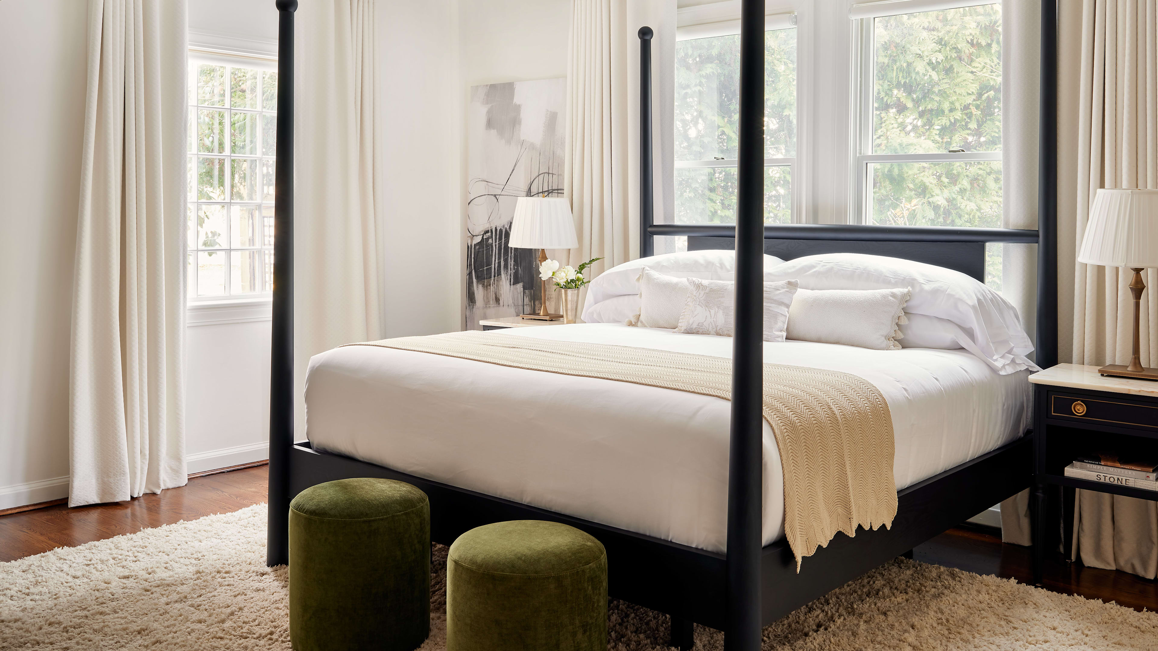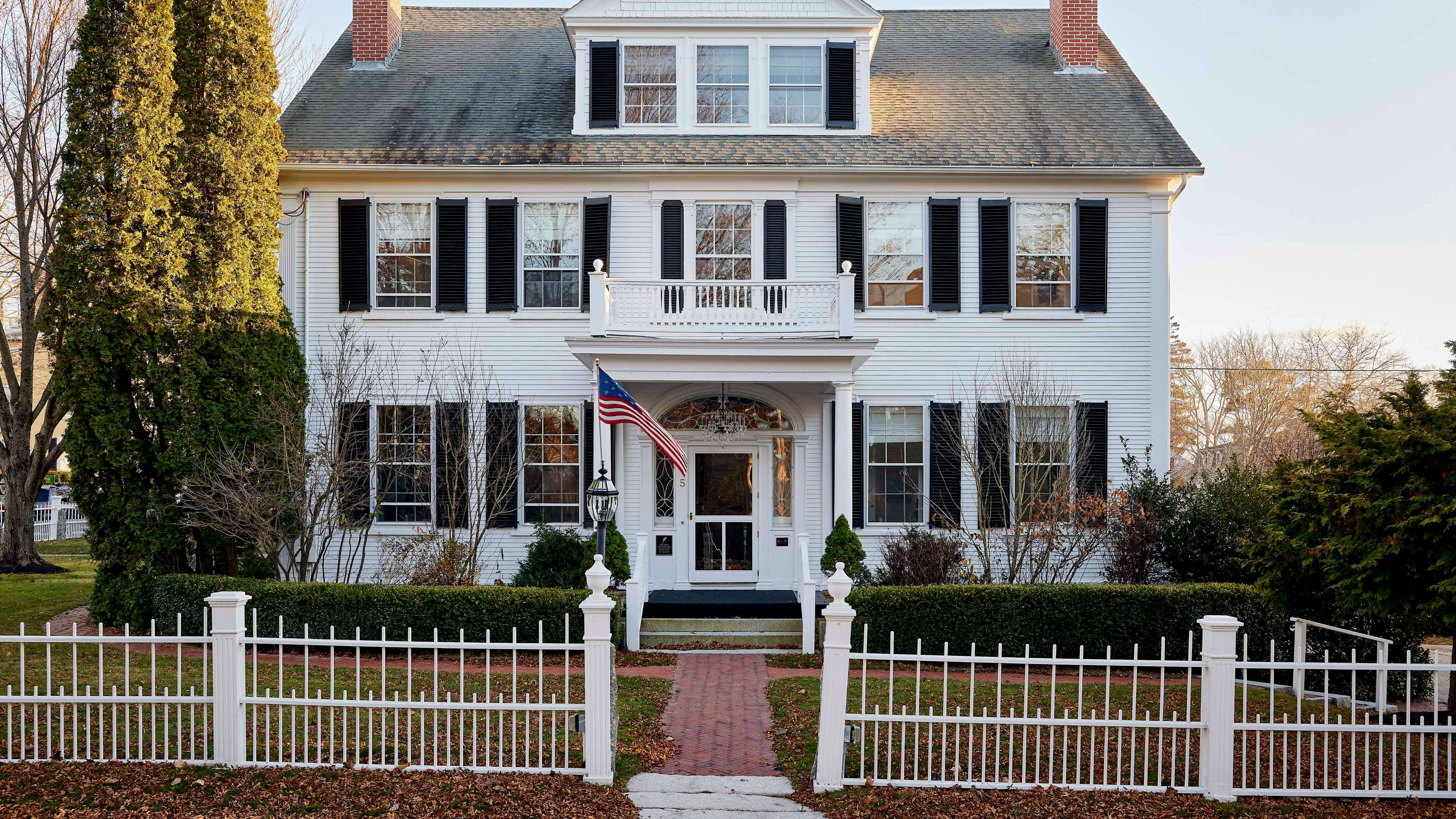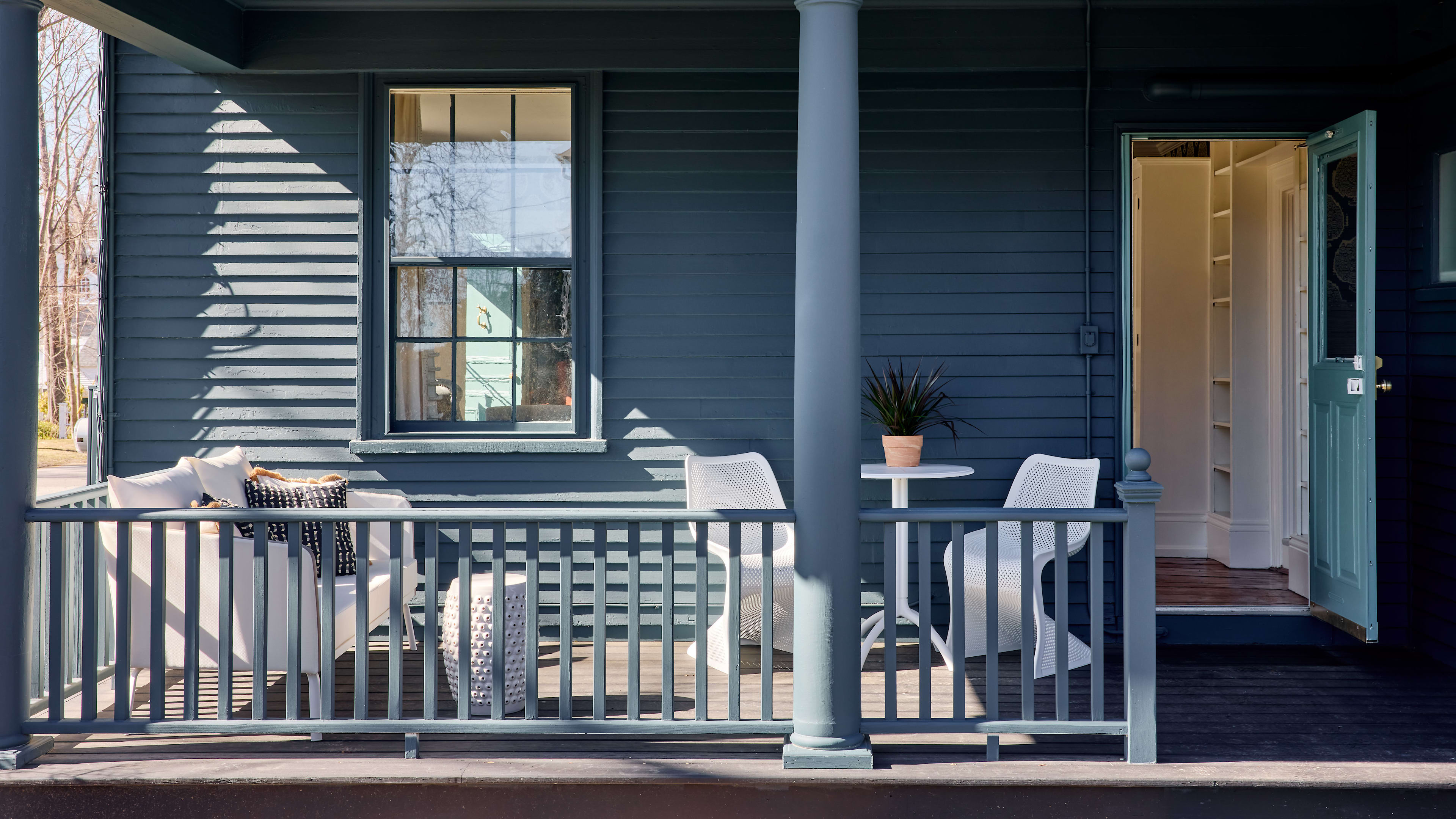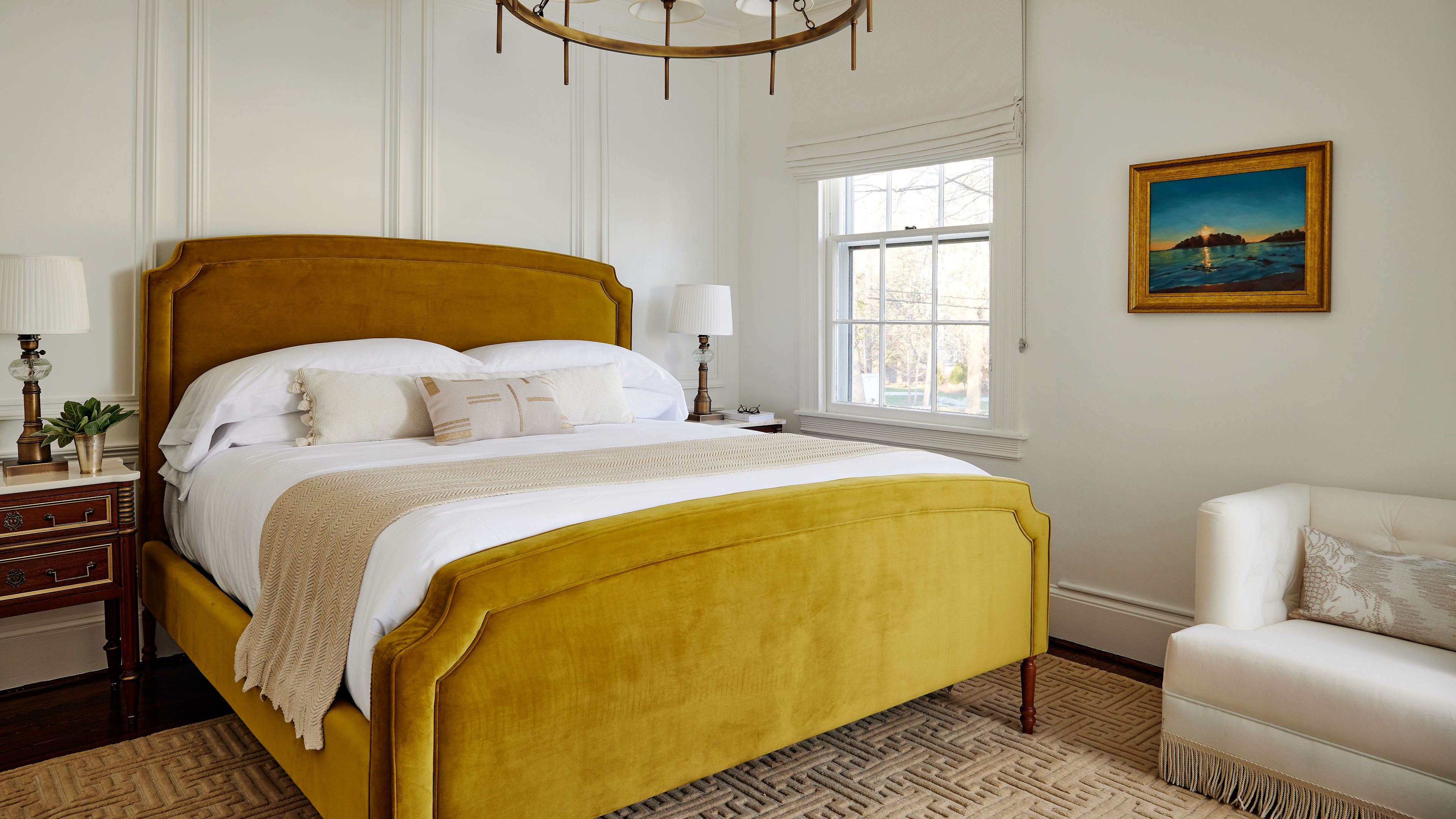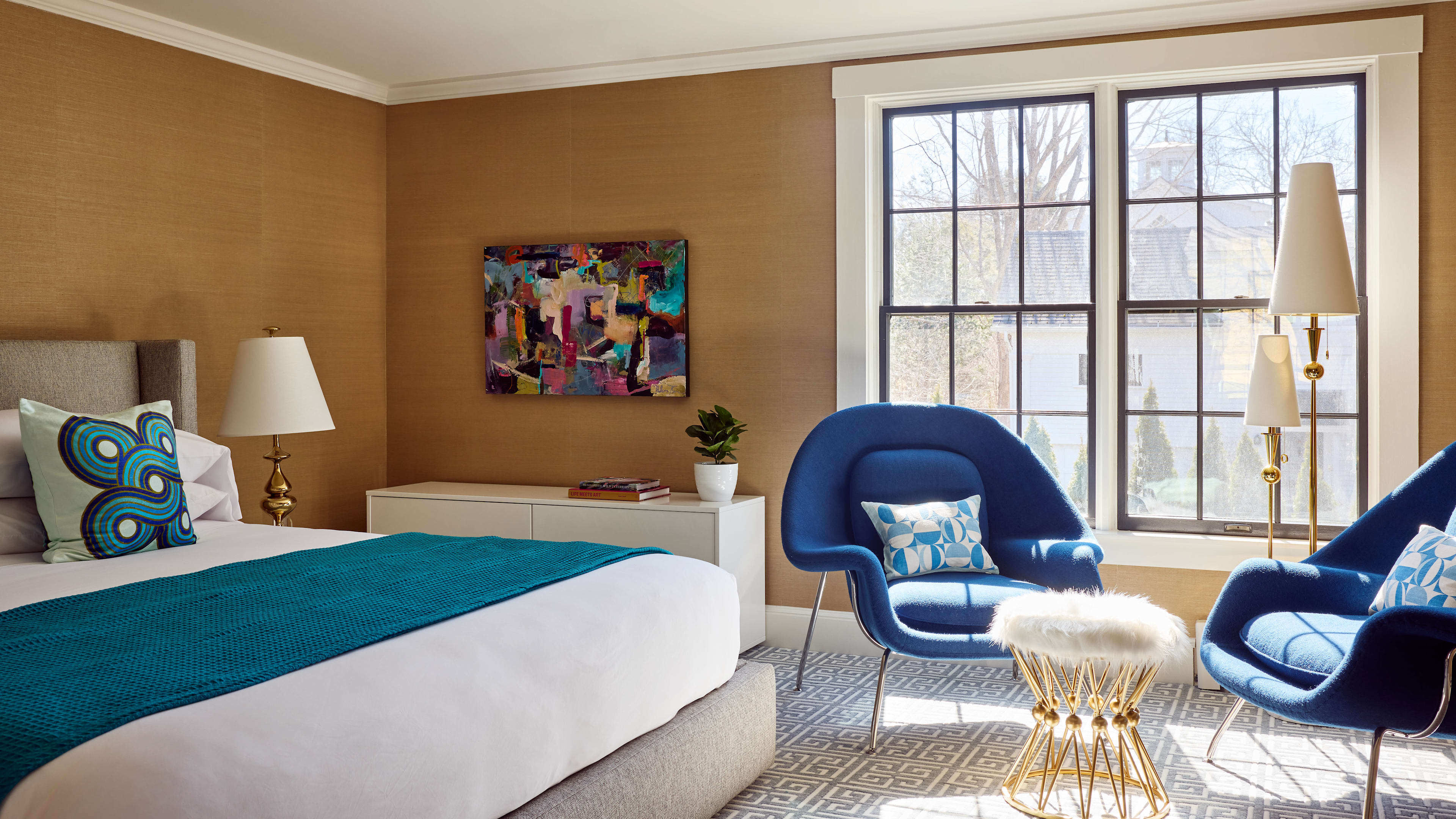 Nathaniel Lord’s drawing room is an undeniably handsome spot, but breakfast on the deck is idyllic in summer, and the conservatory-like lounge of green-velvet banquettes and Ghost chairs at William Jefferds House is just as enticing.