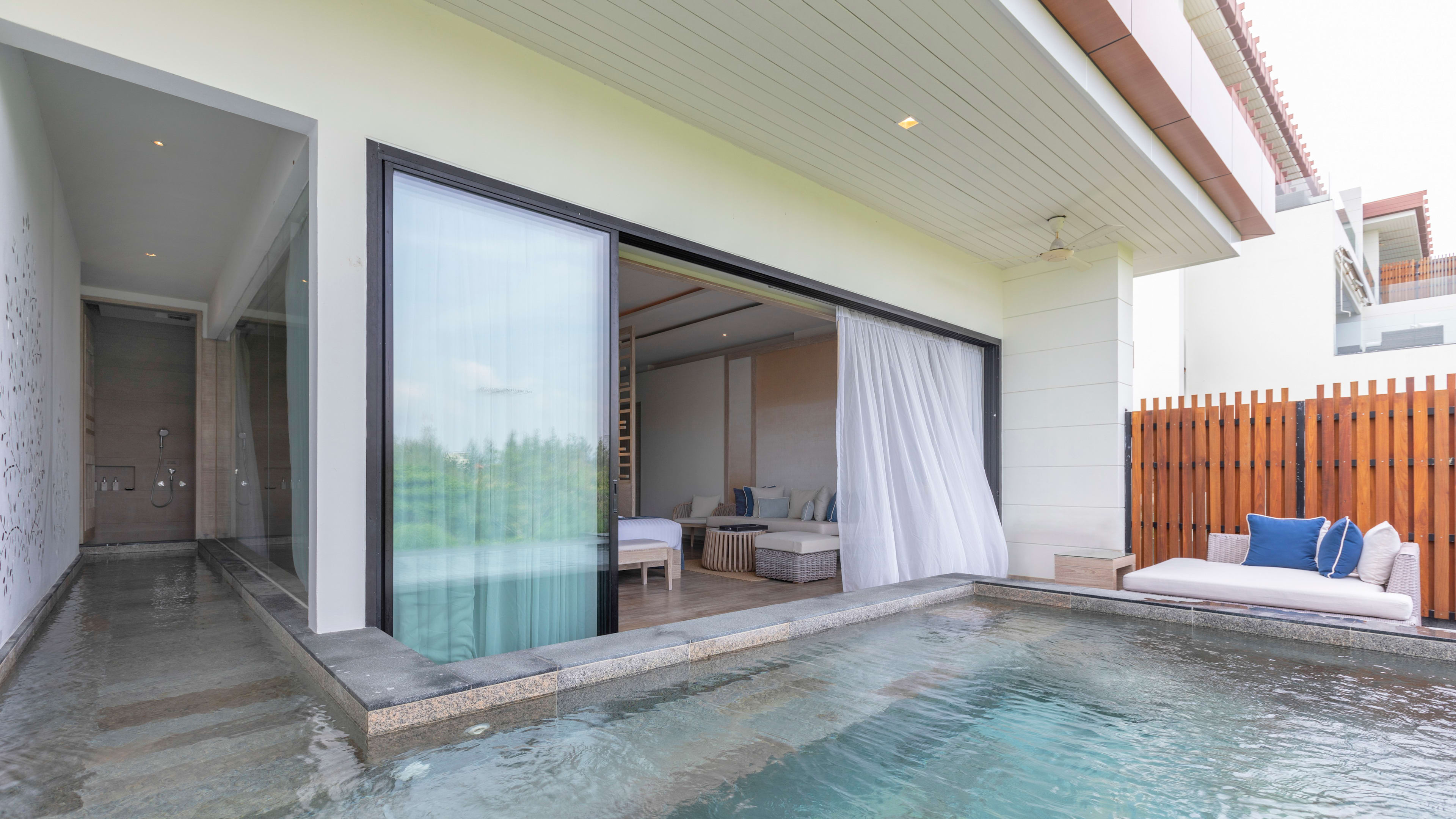 Kayaks to borrow; reading room; gym; gift shop; chauffeured golf cart around the resort, and free WiFi throughout. In rooms: widescreen LCD TV, Bluetooth speaker, air-conditioning, minibar, tea- and coffee-making kit, free bottled water, bathrobes, slippers, and custom bath products.