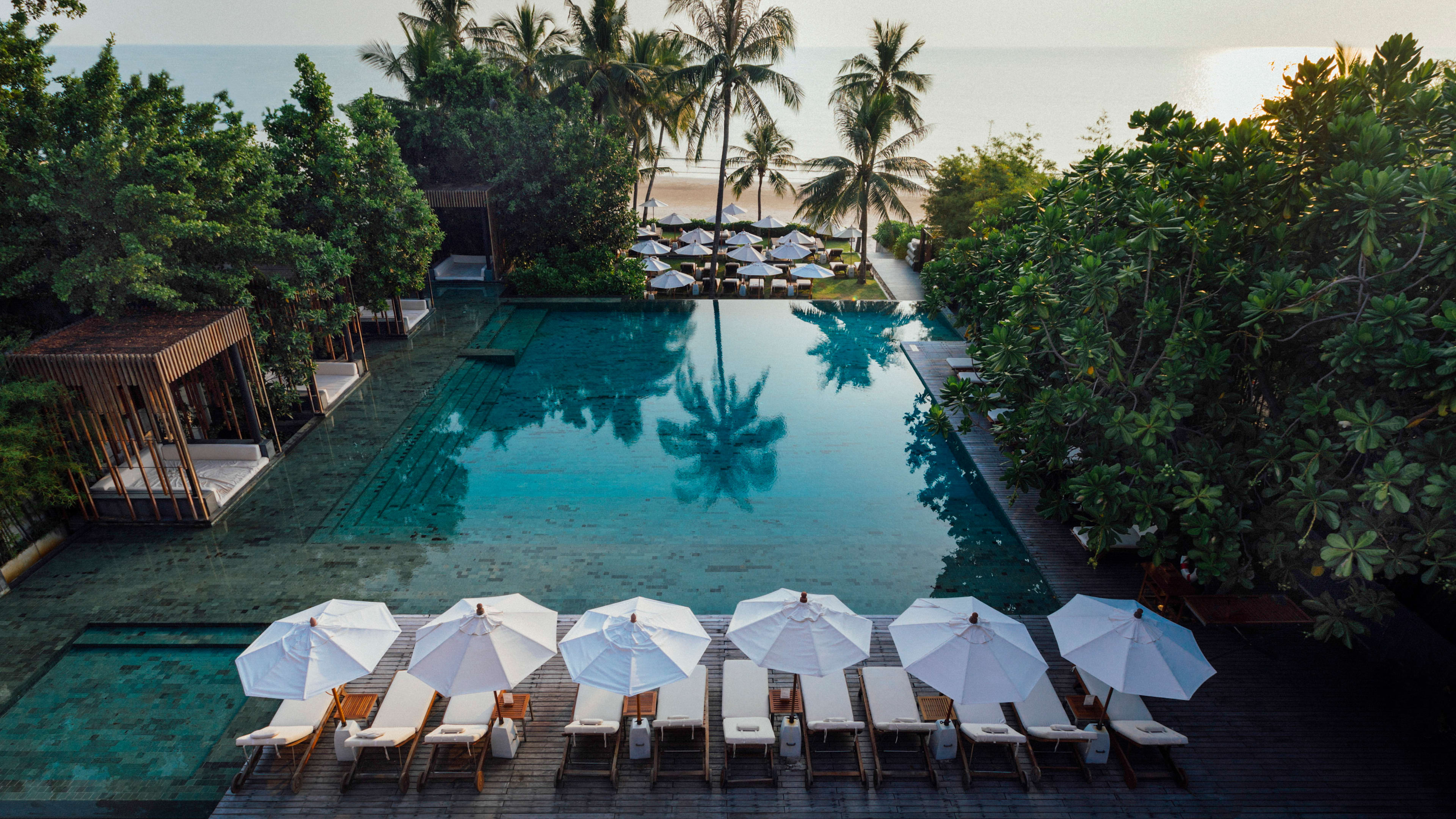 The concierge at Cape Nidhra can arrange a number of classes, including Thai cookery, and fruit carving; active options include yoga, Thai boxing or the art of Thai massage (should your treatments at Cape Spa so inspire you). The hotel has kayaks you can borrow for a paddle along the shoreline. Early-risers and/or the spiritually minded may wish to make an offering to the monks on their 6am constitutional along the beach (the hotel can arrange a suitable gift). Evening spectacles include the nearby Cicada Night Market (Friday to Sunday), which has all kinds of craft stalls, street food, and an entertainment ‘amphitheatre’. For a slightly gritter take on night markets, open daily, try the two blocks of stalls at the night market by Hua Hin Clock Tower, which is home to a colourful riot of stalls, peddling on-the-spot massages, fresh produce, and piles of seafood, in addition to its abundance of suitcase-filling souvenirs. Further afield, Monsoon Valley Winery runs tours of its vineyard and has an on-site restaurant. Or head an hour south to Khao Sam Roi Yot, a national park, where there’s a much visited (and posted on social) network of caves, Phraya Nakhon. For glimpses of Thailand’s wild elephants and more than 200 other wildlife species, it’s Kui Buri National Park (an 80-minute drive away) you want.