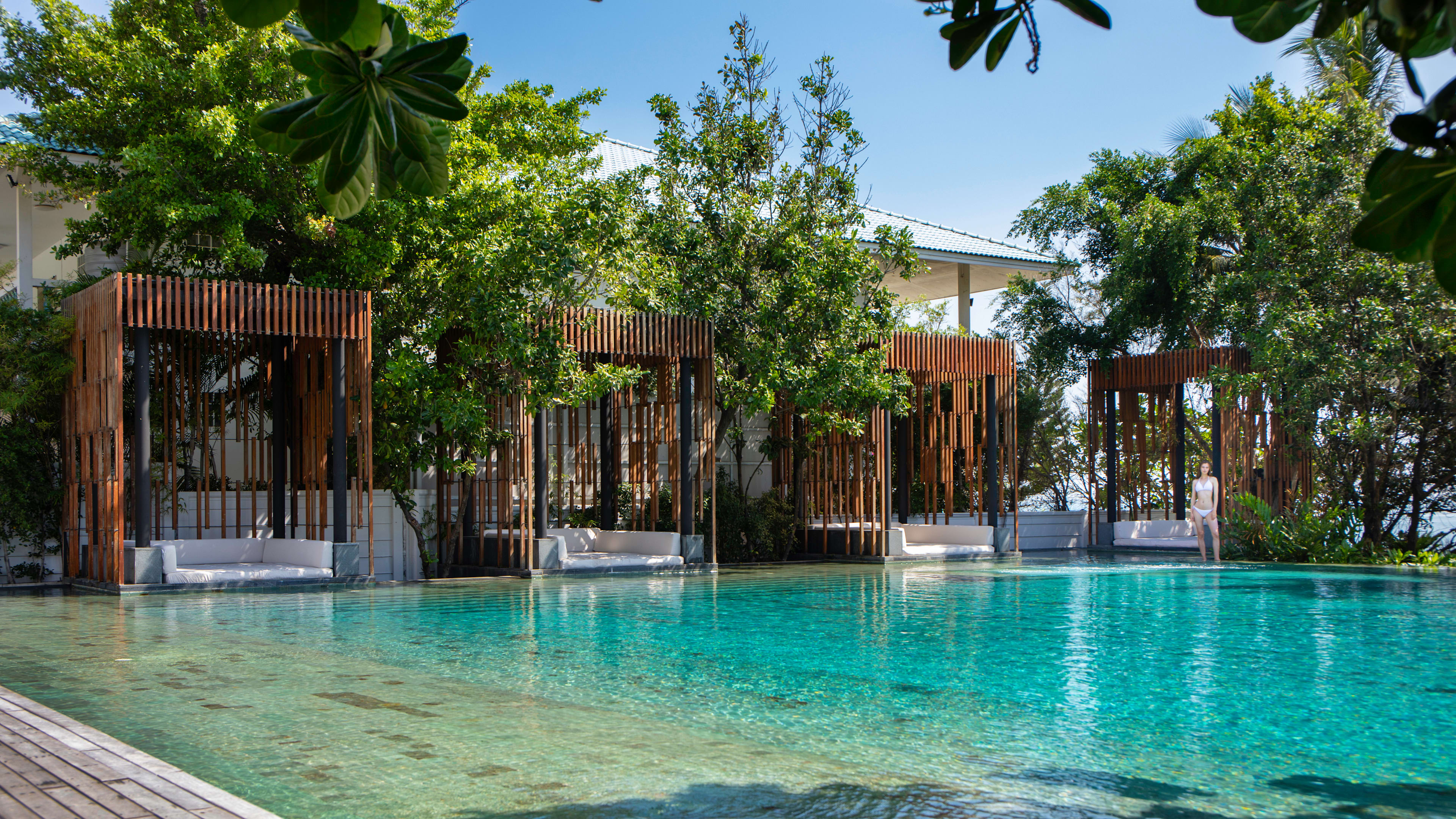 Between the restaurant and the beach, Cape Nidhra’s saltwater infinity pool is an accomplished number, edged by sunloungers and parasols at one end, and timbered-cabana day-beds to one side. Throw in sea views, and proximity to the hotel’s bar and restaurant, and this is a spot you could easily linger at all day. It has submerged, step entry and no lifeguard, and is open from 7am until 8pm daily. On a palm-dotted grassy terrace between the pool and the beach, there are more sea-facing sunloungers and parasols, as well as some lounging furniture on the sand itself.