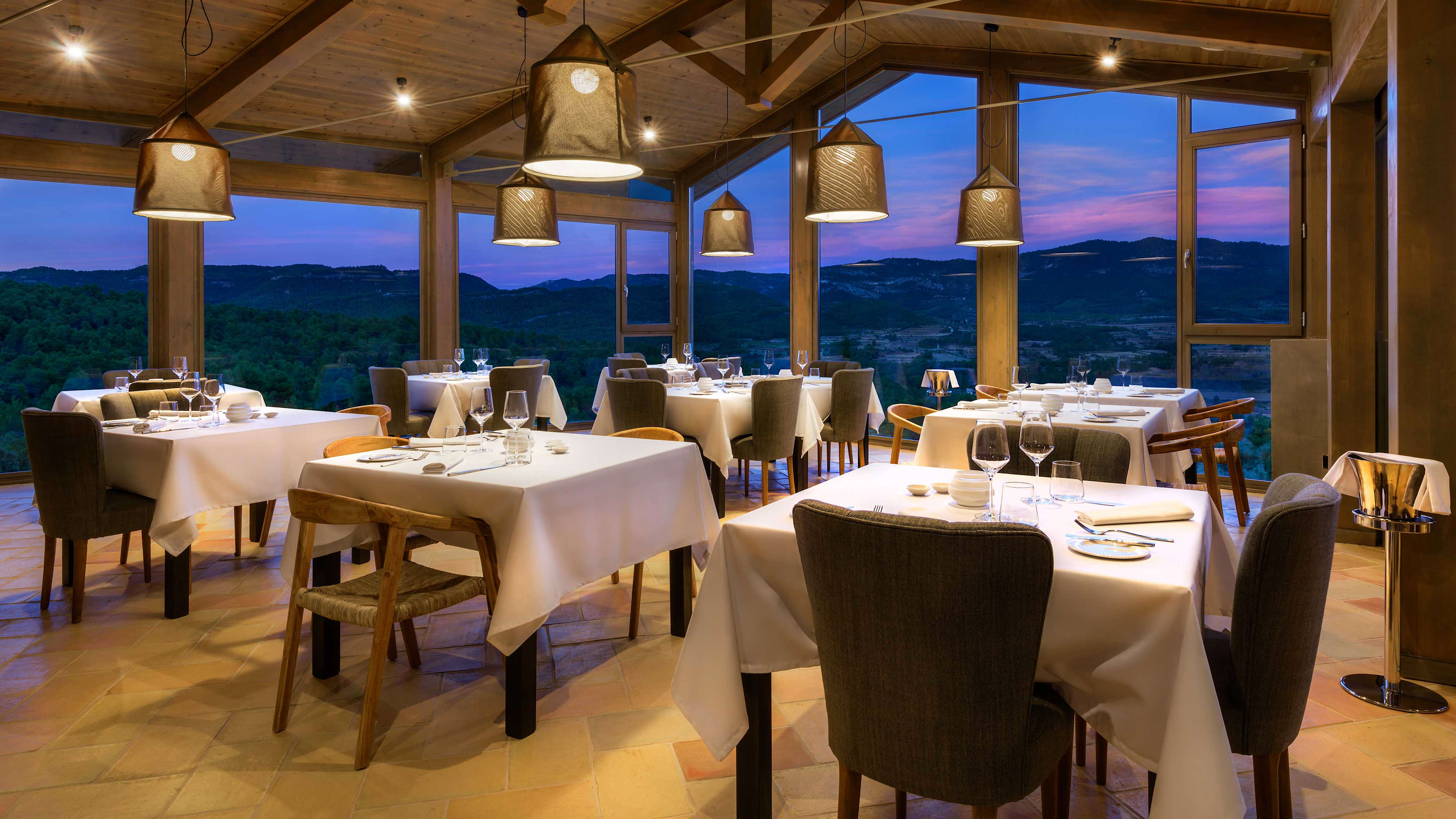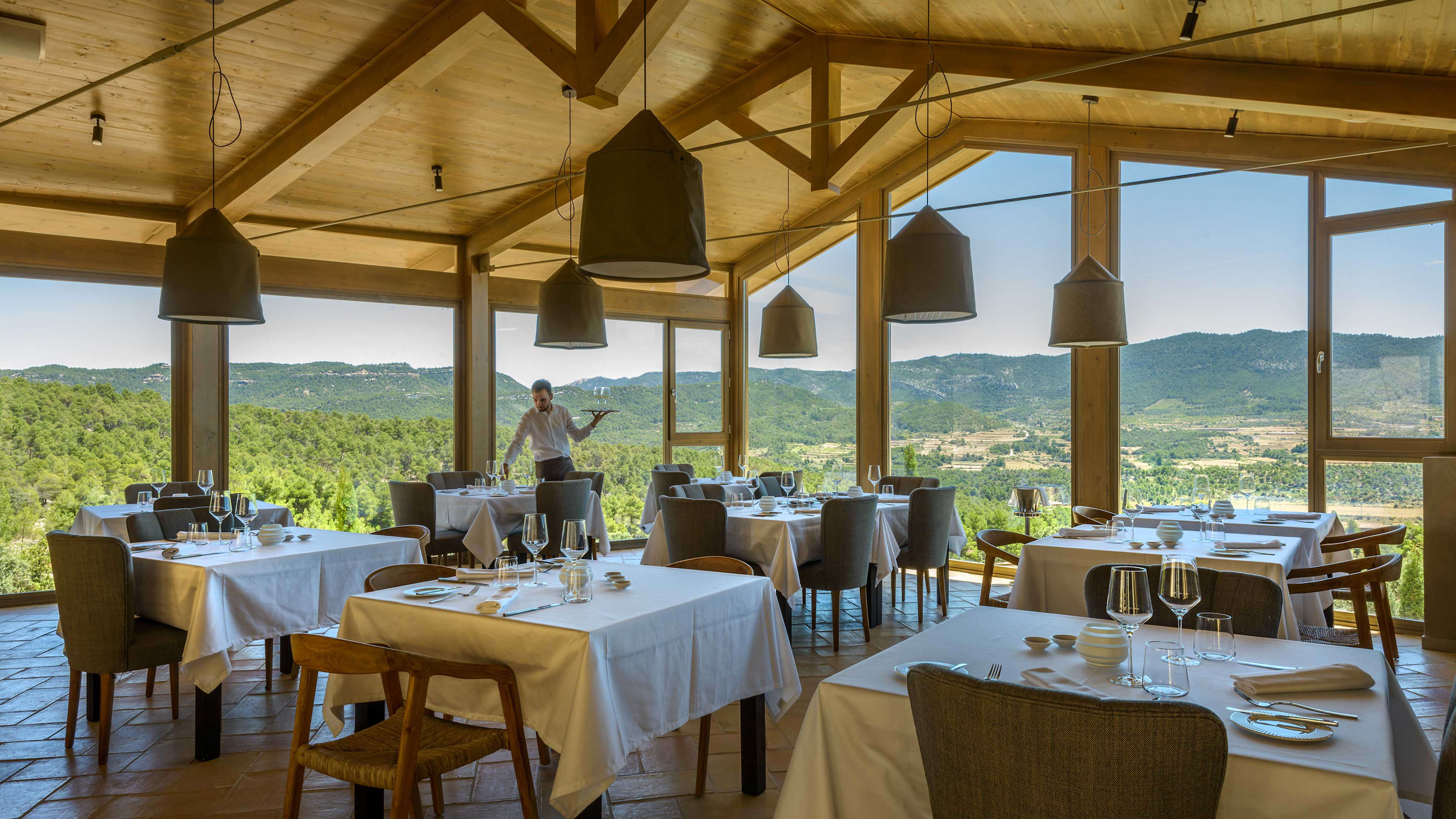 It should come as little surprise, given Torre del Marqués sits among 130 hectares of olive groves, almond-tree orchards and vineyards, that much of the menu pays tribute to the flavours found within. Head chef Eduardo takes a ‘zero-kilometre’ approach to his creations, bringing garden-fresh creations to the table every day. Chief among these is his take on the local ternasco de Aragón – meltingly tender Ternasco lamb, slow-cooked for 16 hours and served with earthy purple potatoes, sugar-sweet shallots and zingy green mustard foam. Just try not to fill up on too much fresh bread and silky olive oils beforehand. Wash down your feast with wines from neighbourhood vintners so local you’ve probably nodded hello to them on your morning constitutional. Inside the restaurant, expect muted stonework and rustic pale woods. Though it seems likely you’ll spend more time gazing outside than in: the awe-inspiring limestone outcrops of the Ports de Beseit massif can be seen through the restaurant’s floor-to-ceiling windows.
