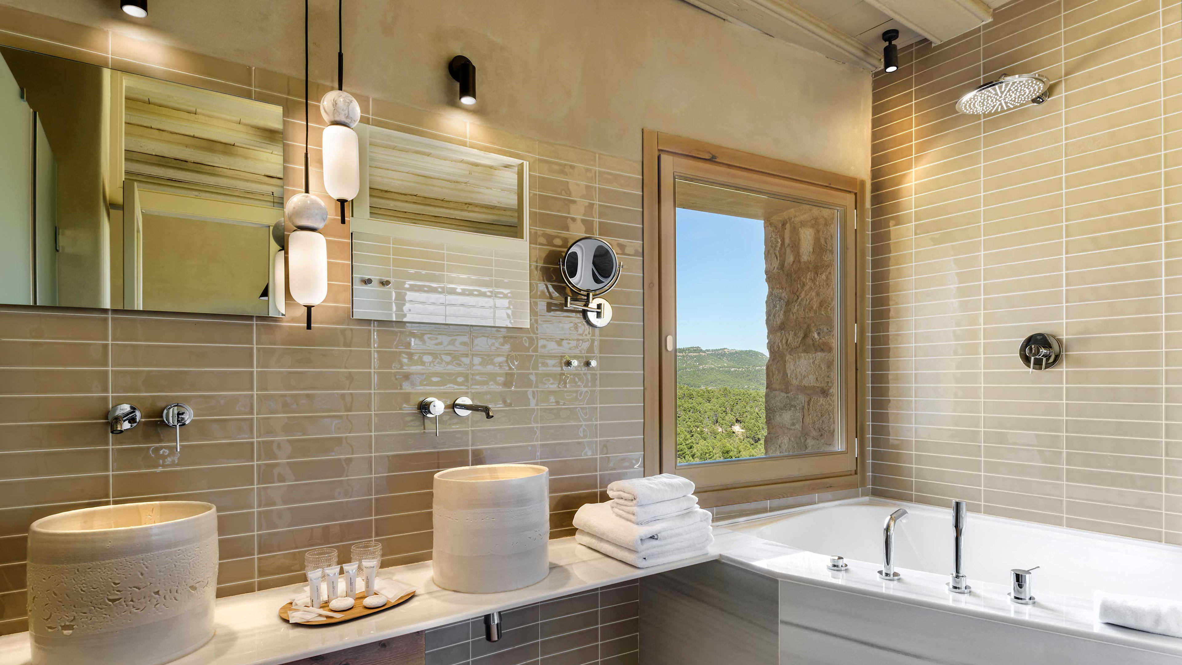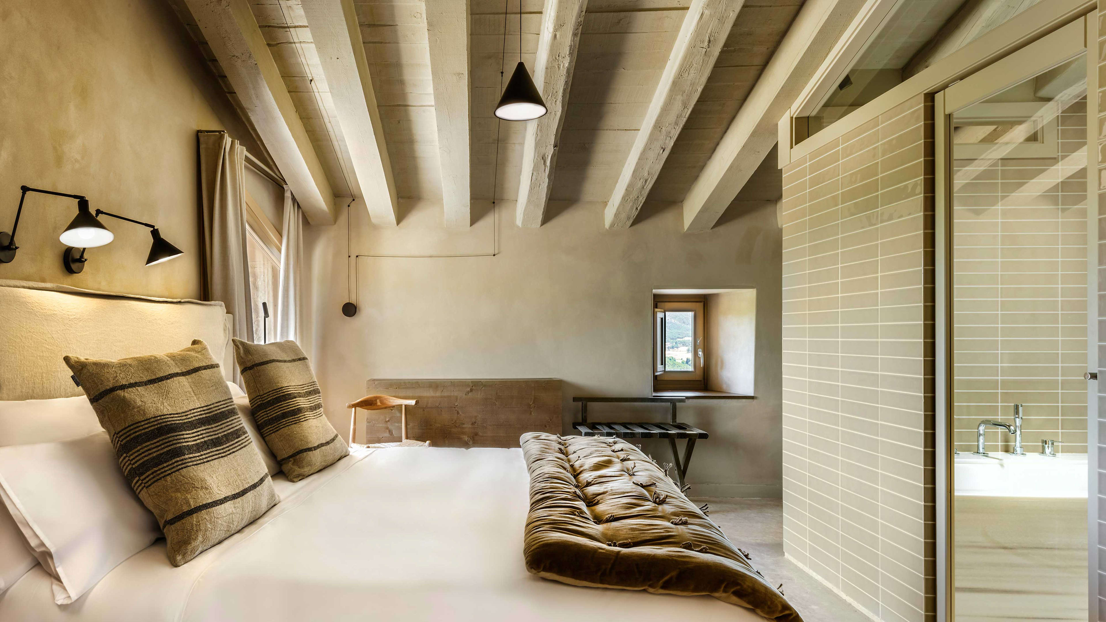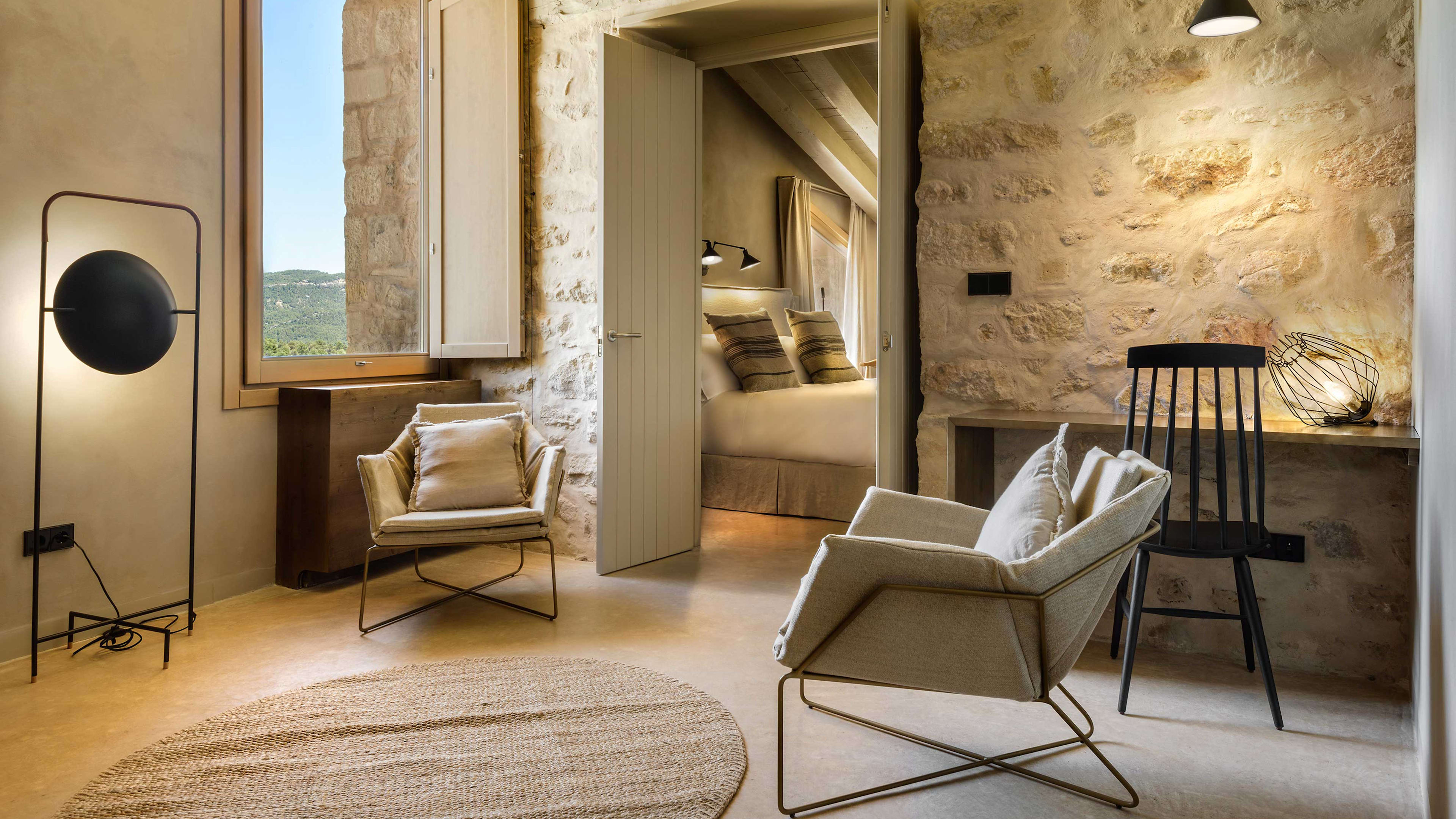 The hotel’s remote rural location means you’re likely going to need wheels. Take the opportunity to pair your countryside escape with a stay in one of Spain’s celebrated coastal cities. It’s about three hours’ drive from both Barcelona (to the north) and Valencia (to the south), cruising along Balearic bluffs and into mountainous Matarraña. There’s free parking and an electric-car charger at the hotel, to boot.