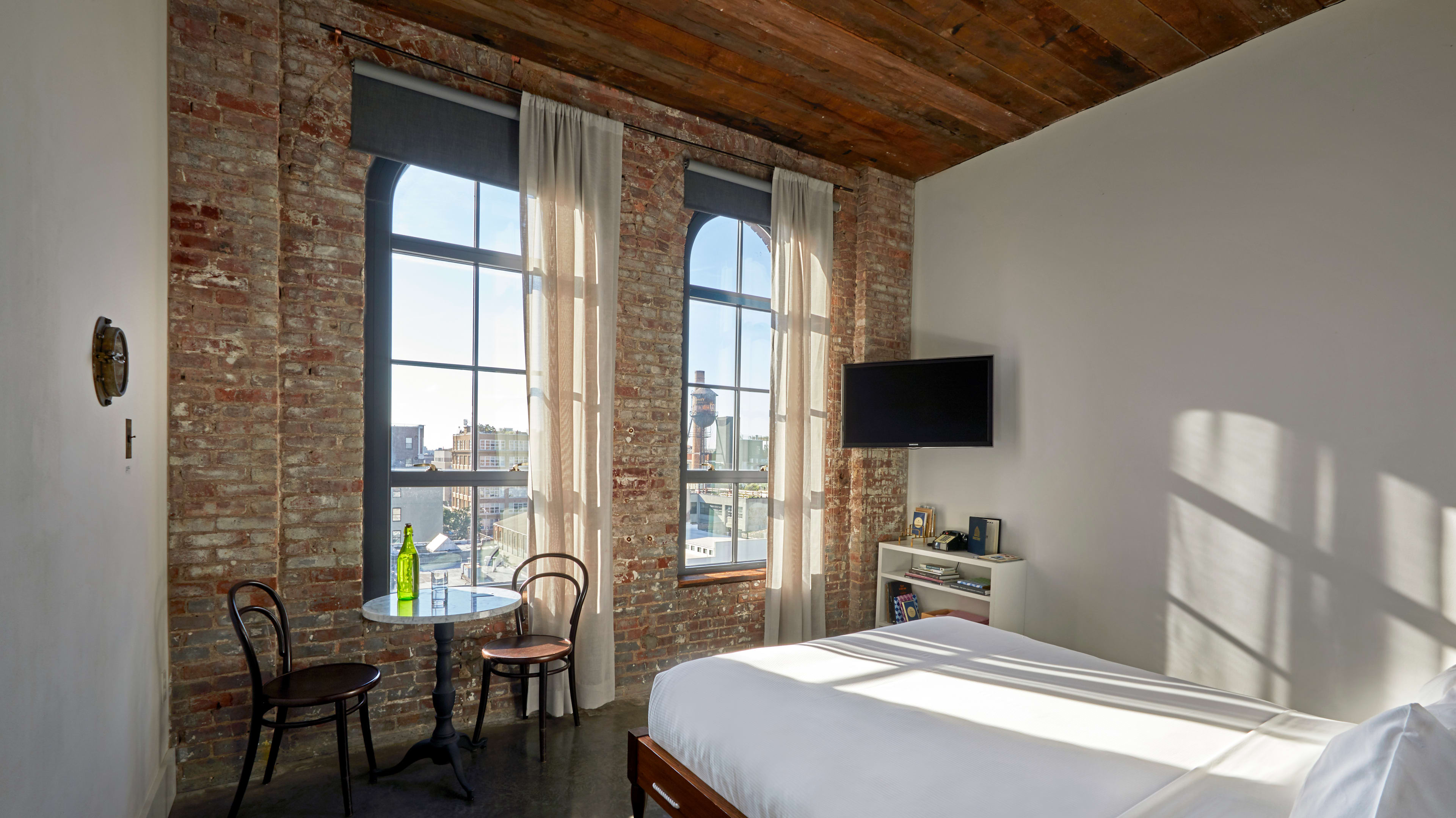 The Manhattan View King Room has everything it promises – a jumbo bed and restored factory windows looking out on a view you’ll never get bored of. Go all out on the North 8th Loft, which has a bath tub and a private rooftop terrace.