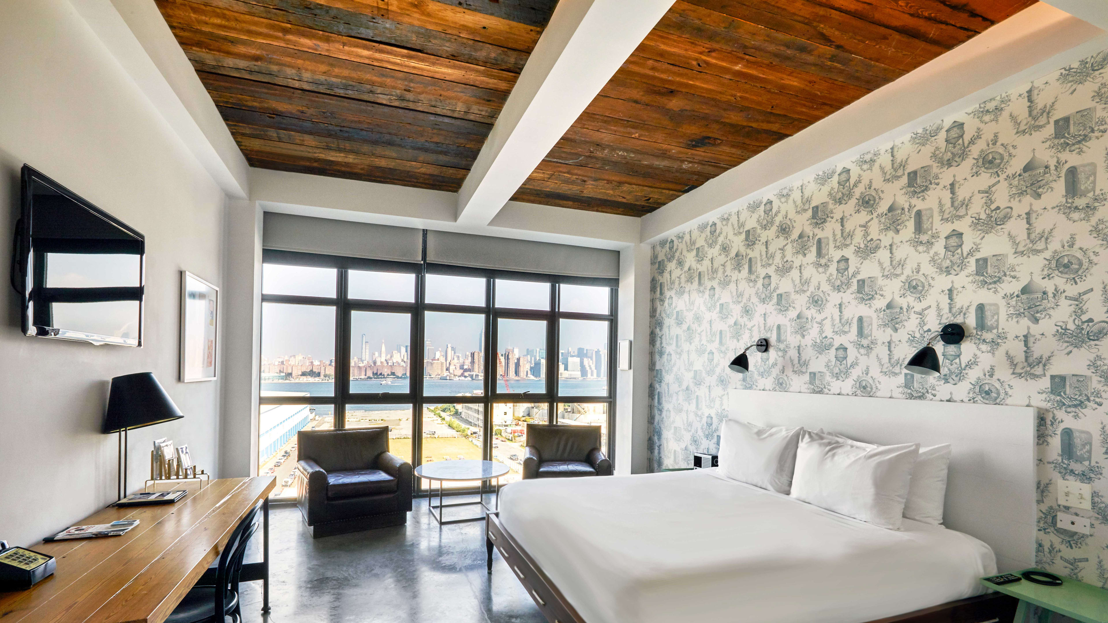 Wythe Hotel is a Williamsburg wonder: a century-old factory stripped back to its bare bricks and cast-iron columns, with a rooftop cocktail bar staring at the world’s most famous skyline. The laid-back locals will join you for French fare at Le Crocodile – and then you can join them at vintage markets, craft breweries and warehouse parties in New York’s hippest ‘hood. In the rustic-industrial rooms you’ll find heated concrete floors, reclaimed timber ceilings, and Flavor Paper wallpaper riffing off Brooklyn’s landmark water towers.