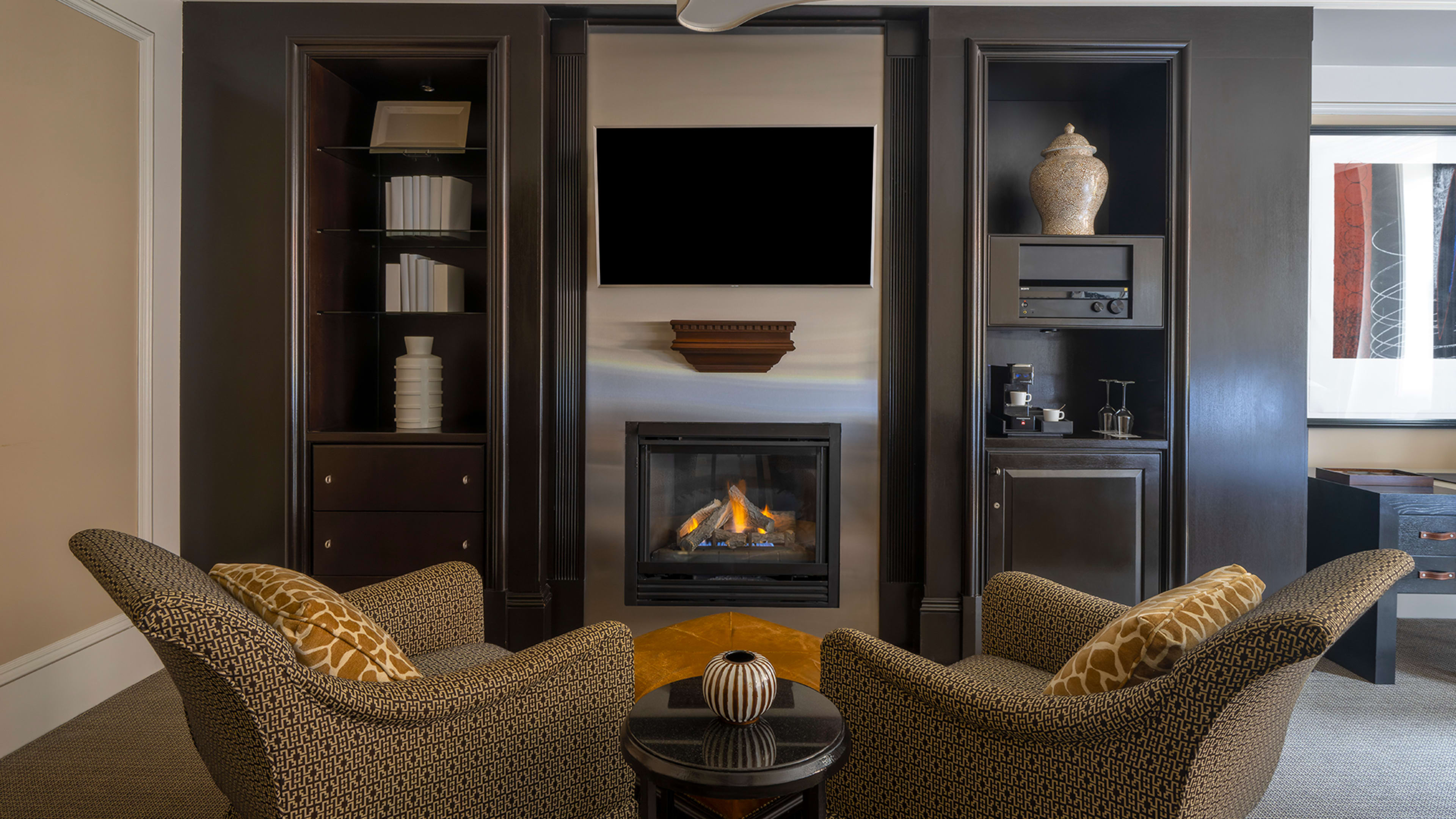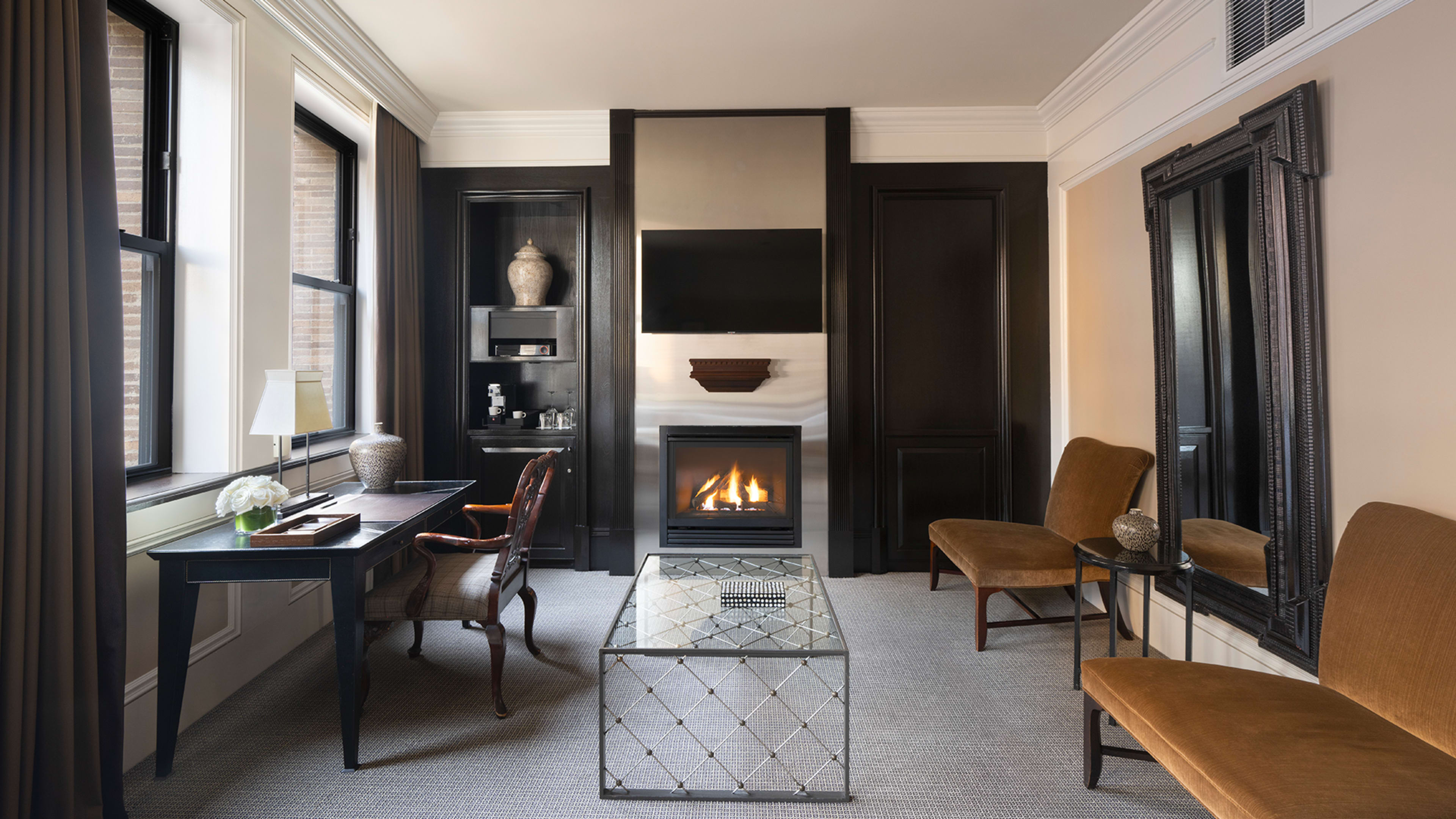 Gym, CD library, free WiFi throughout, valet parking, free shoe shining, house car (for drop-offs within a two-mile radius). In-room massages can be arranged through the concierge. In rooms: flatscreen TV, CD player with iPod dock, gas fireplace, minibar, Nespresso machine, turn down service, Fresh toiletries.