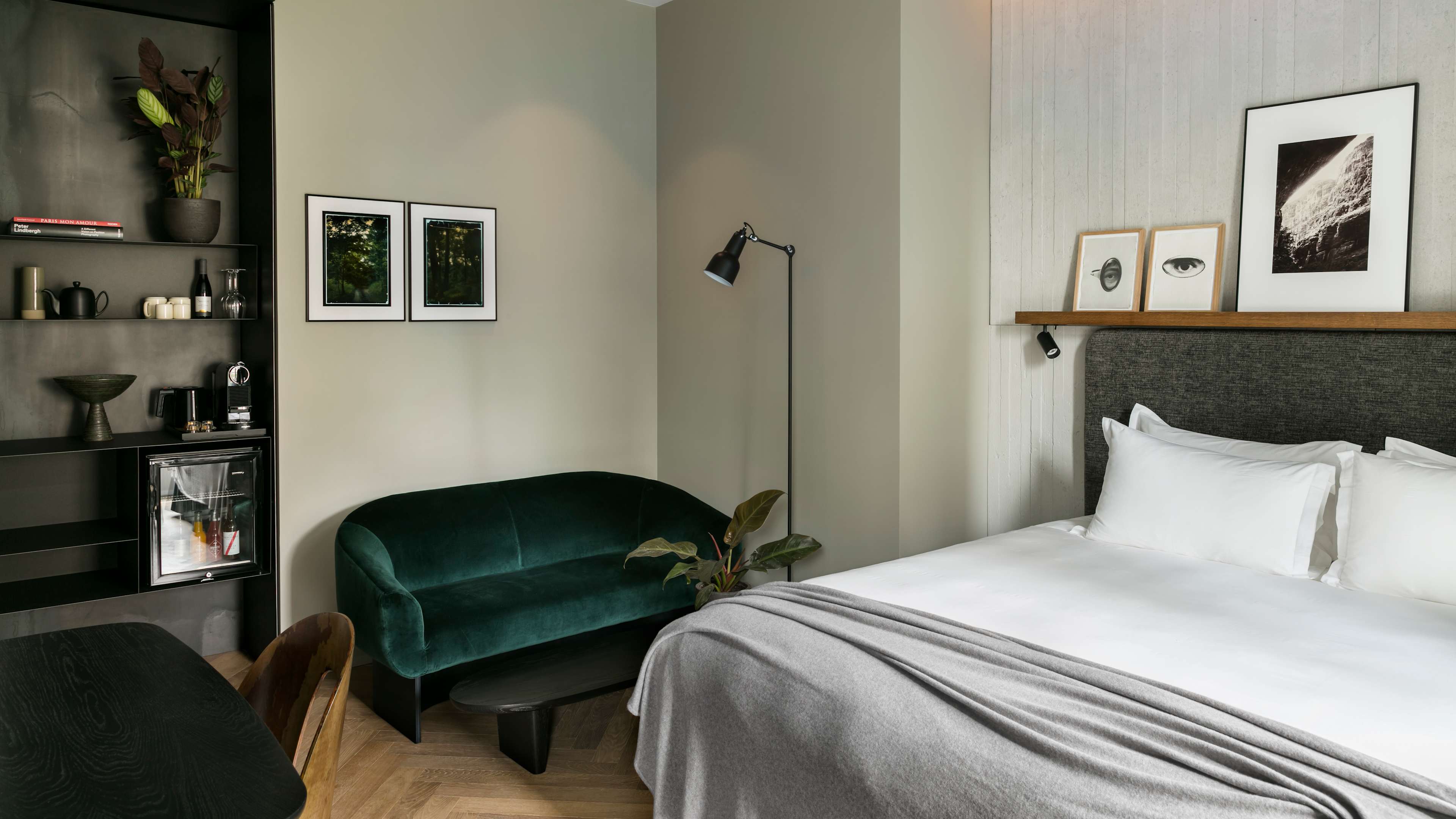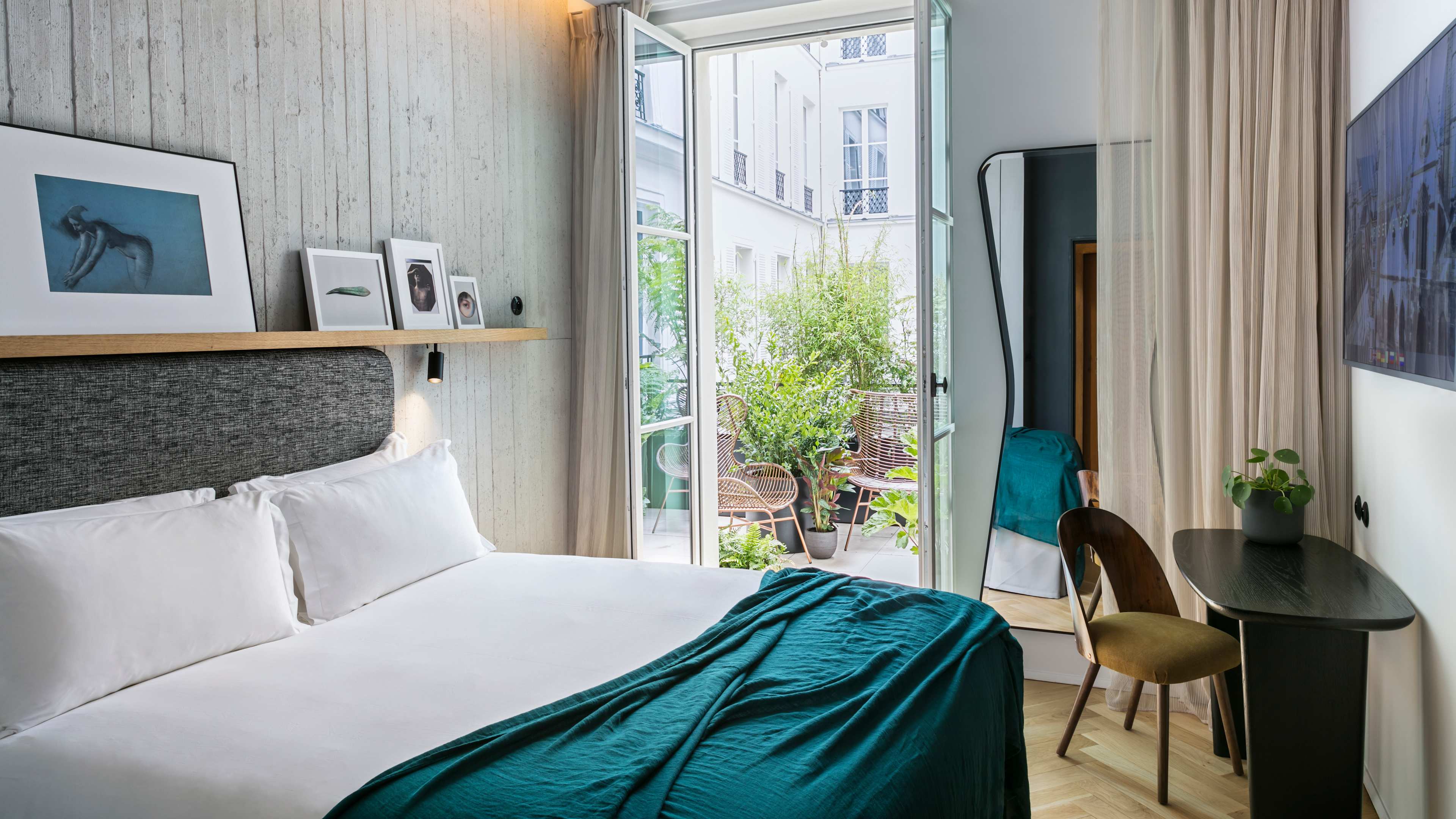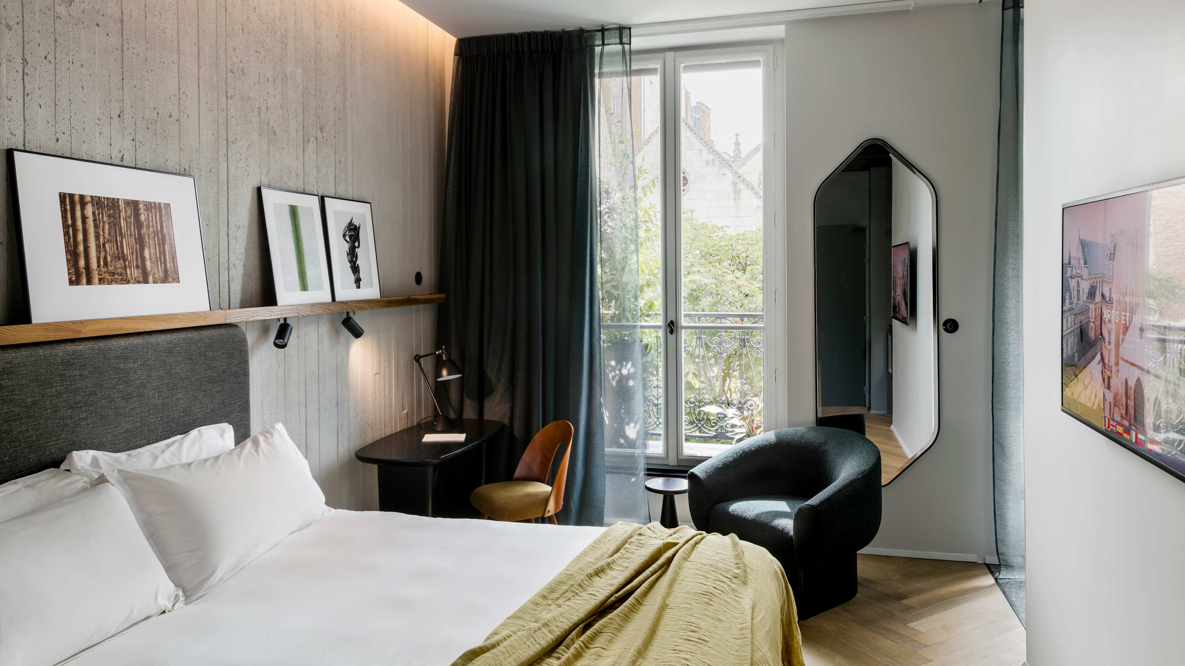 A contemporary design den near the Marais, Hôtel National des Arts & Métiers combines industry and innovation in two updated Haussmann buildings. Drawing its name and inspiration from the historic nearby engineering school, the hotel incorporates industrial accents, including oxidised pipes and iron furniture with classic French style. Bright, modern rooms – many with balconies – overlook the classic rooftops of Paris. A trio of beloved local chefs prepares Italian fare, including stellar pastas and small plates, as well as spritzes and espressos. The moody bar, l’Herbarium has become a local favourite for cocktails that conjure the best of the belle époque.