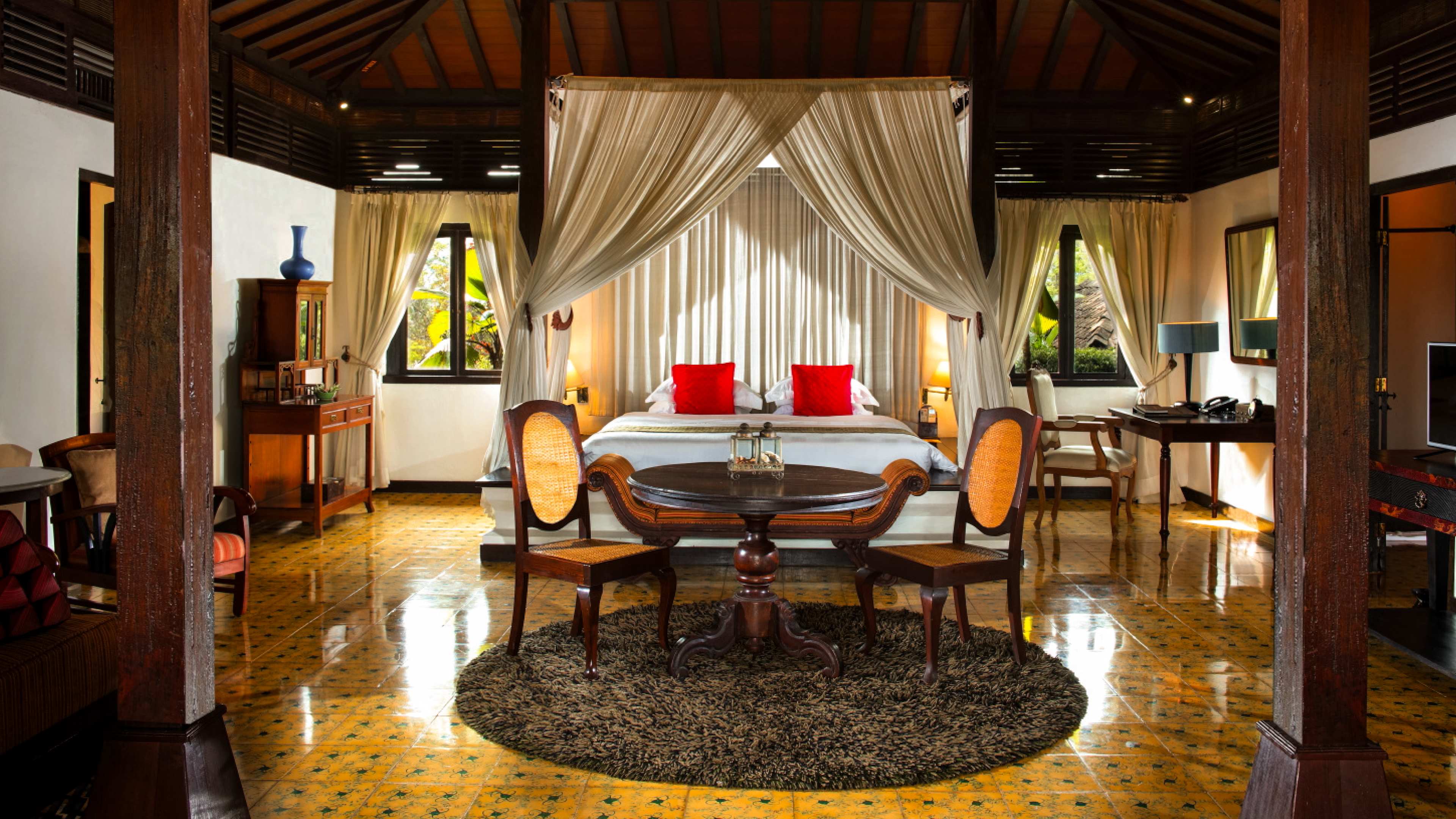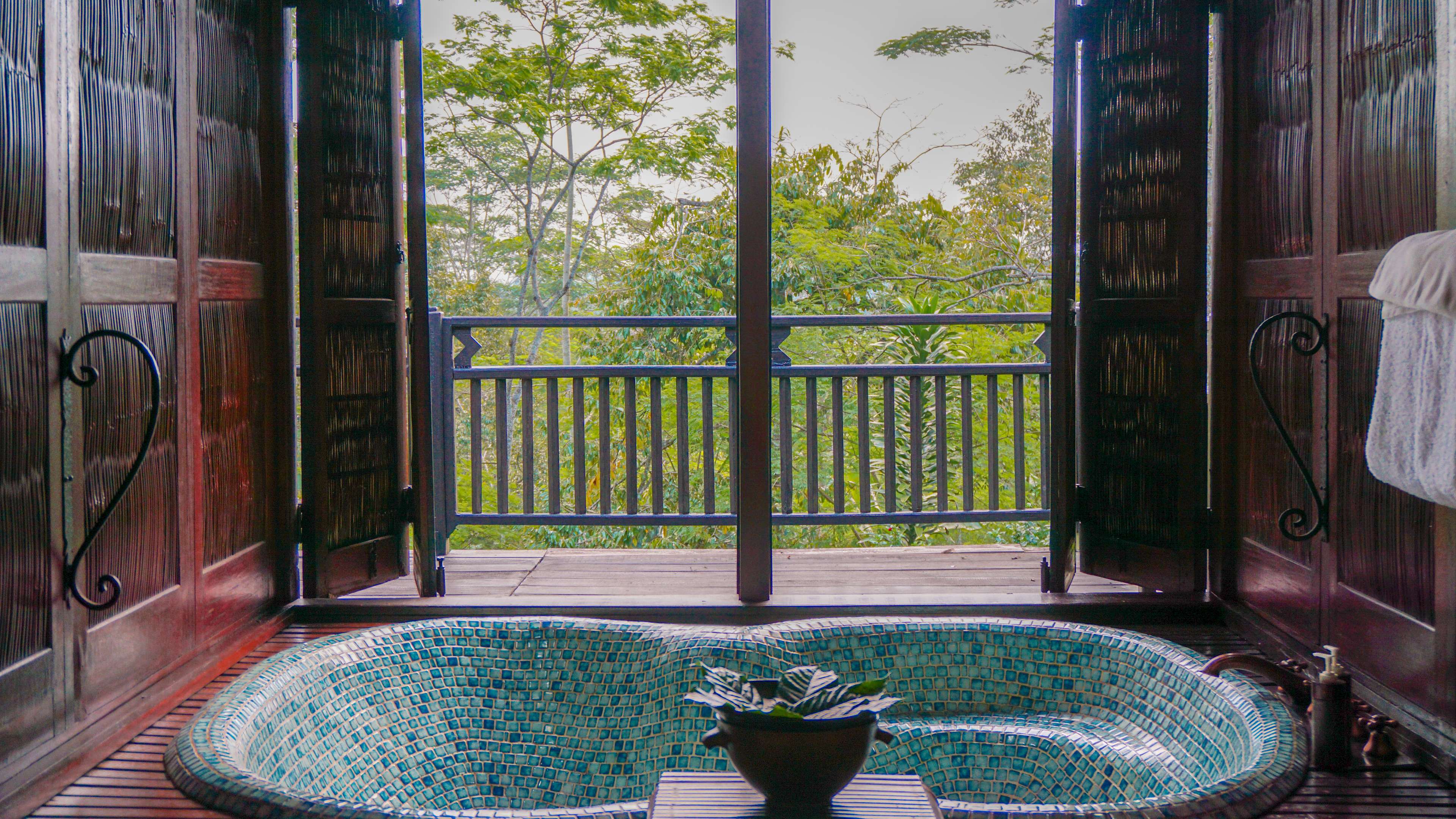The undisputed honeymooner’s hot spot, Arum Villa 204 immediately seduced us with its vast private balcony looking out onto the untouched forest, and the quaint round water fountain by the whimsical entrance. The grand and imposing Bella Vista Villa comprises two freestanding and three adjoining villas that were once part of nearby Solo’s royal court, and includes a private plunge pool.