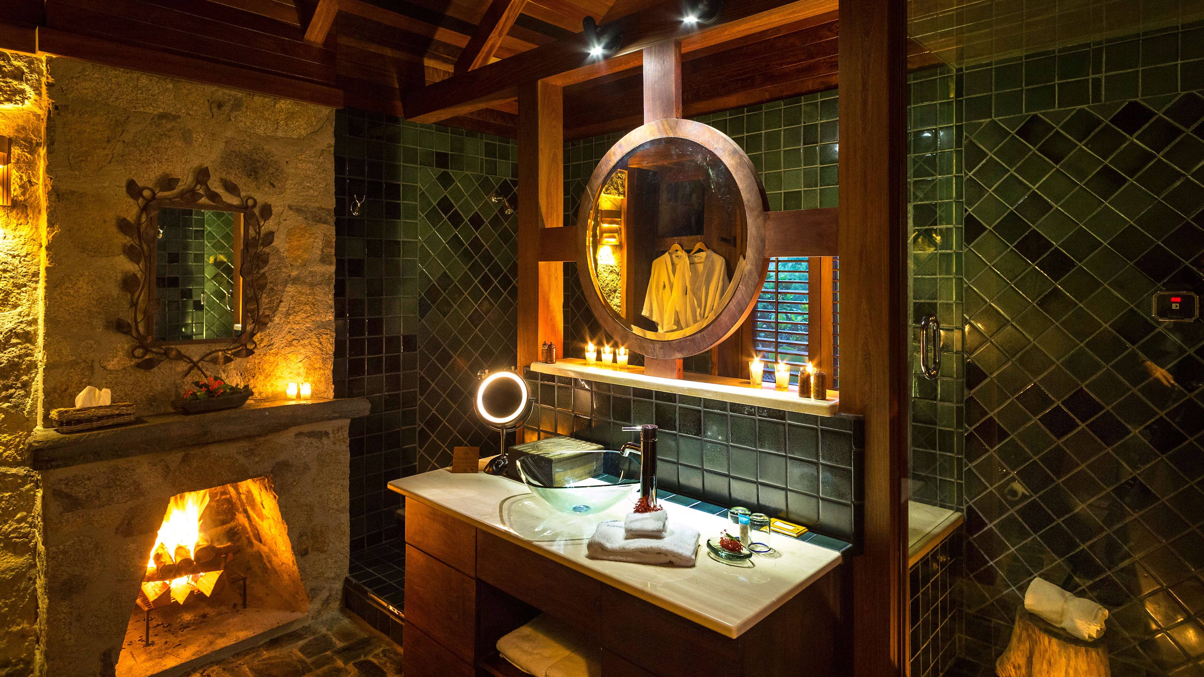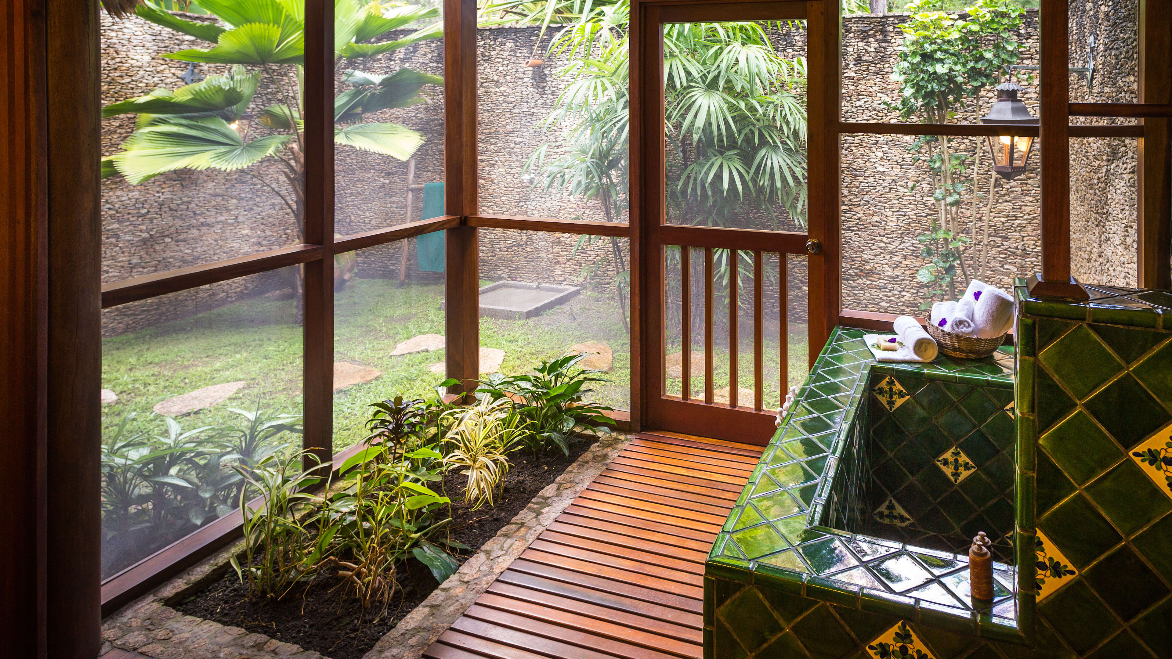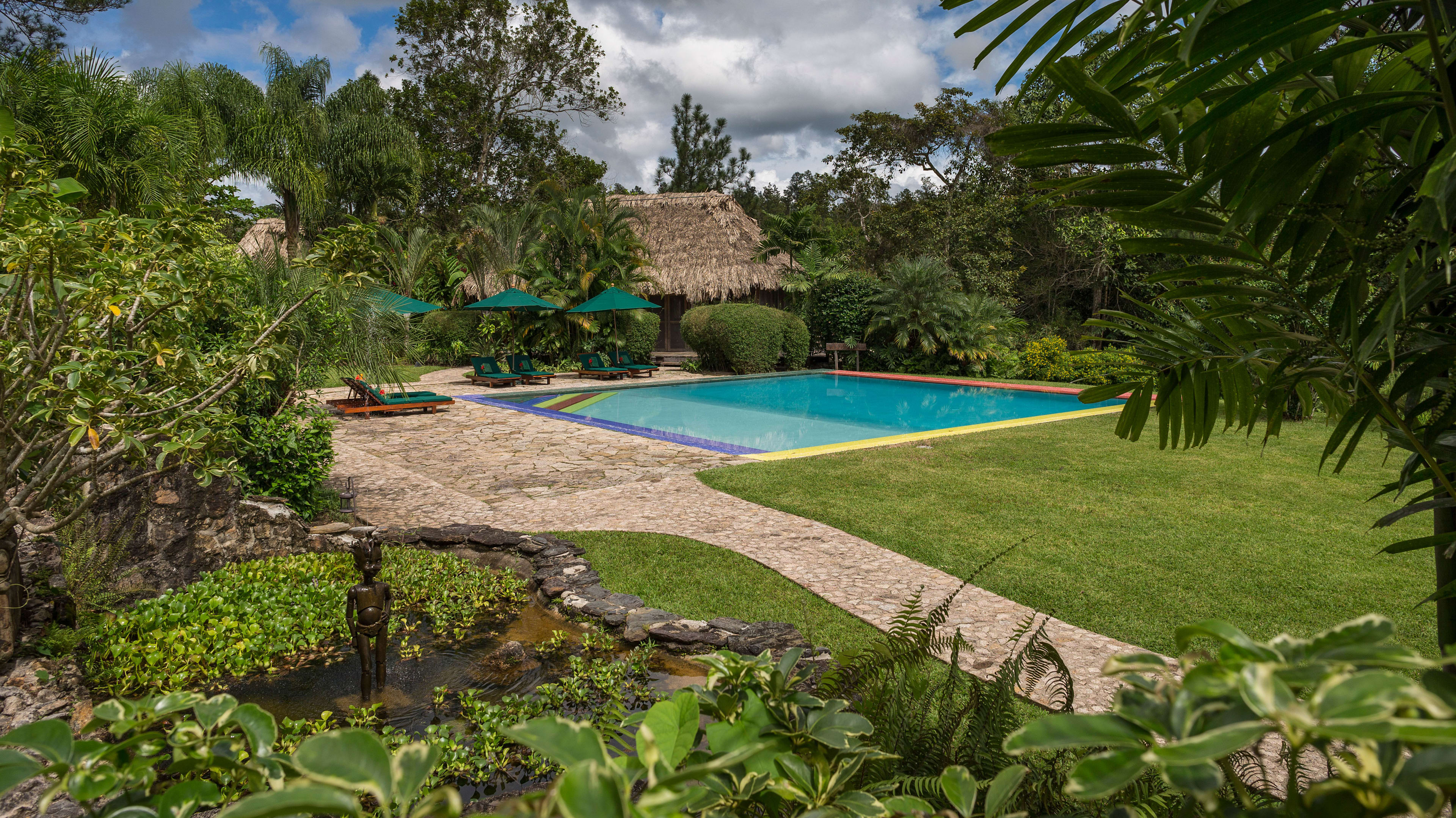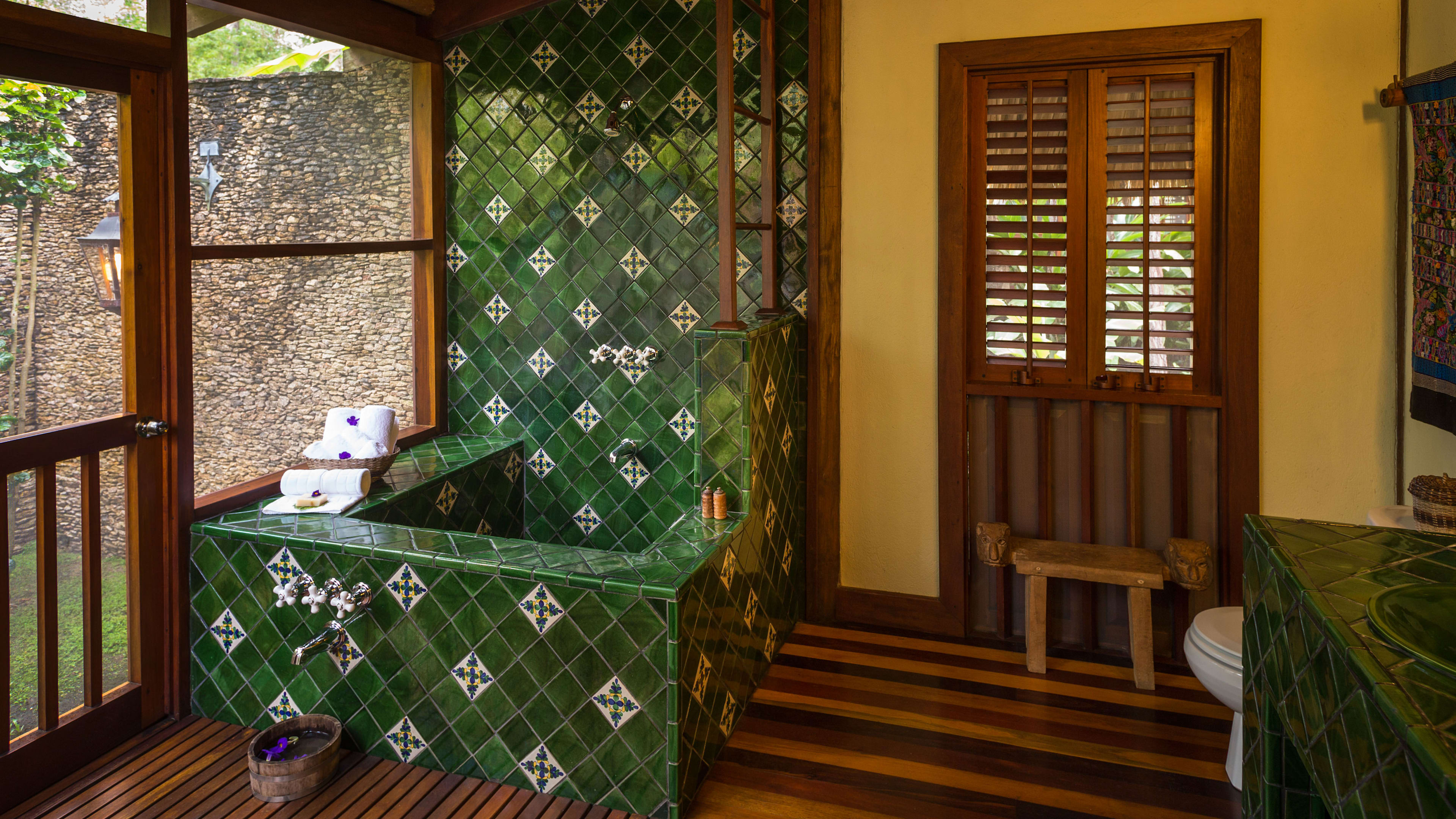 Although Francis Ford Coppola’s own villa is the largest, with a kitchenette and a vast open-air living area, we were most taken with the Honeymoon Cabanas and their soft cream sofas and carved beds. Number 5 has a secluded terrace with a sweeping waterfall view, as well as a private, heart-shaped garden. The Deluxe Honeymoon Cabanas are even more impressive, boasting slate-lined, mineral-salted plunge pools, huge bathrooms decorated with double sinks, vast square baths and colourful hand-made tiles.