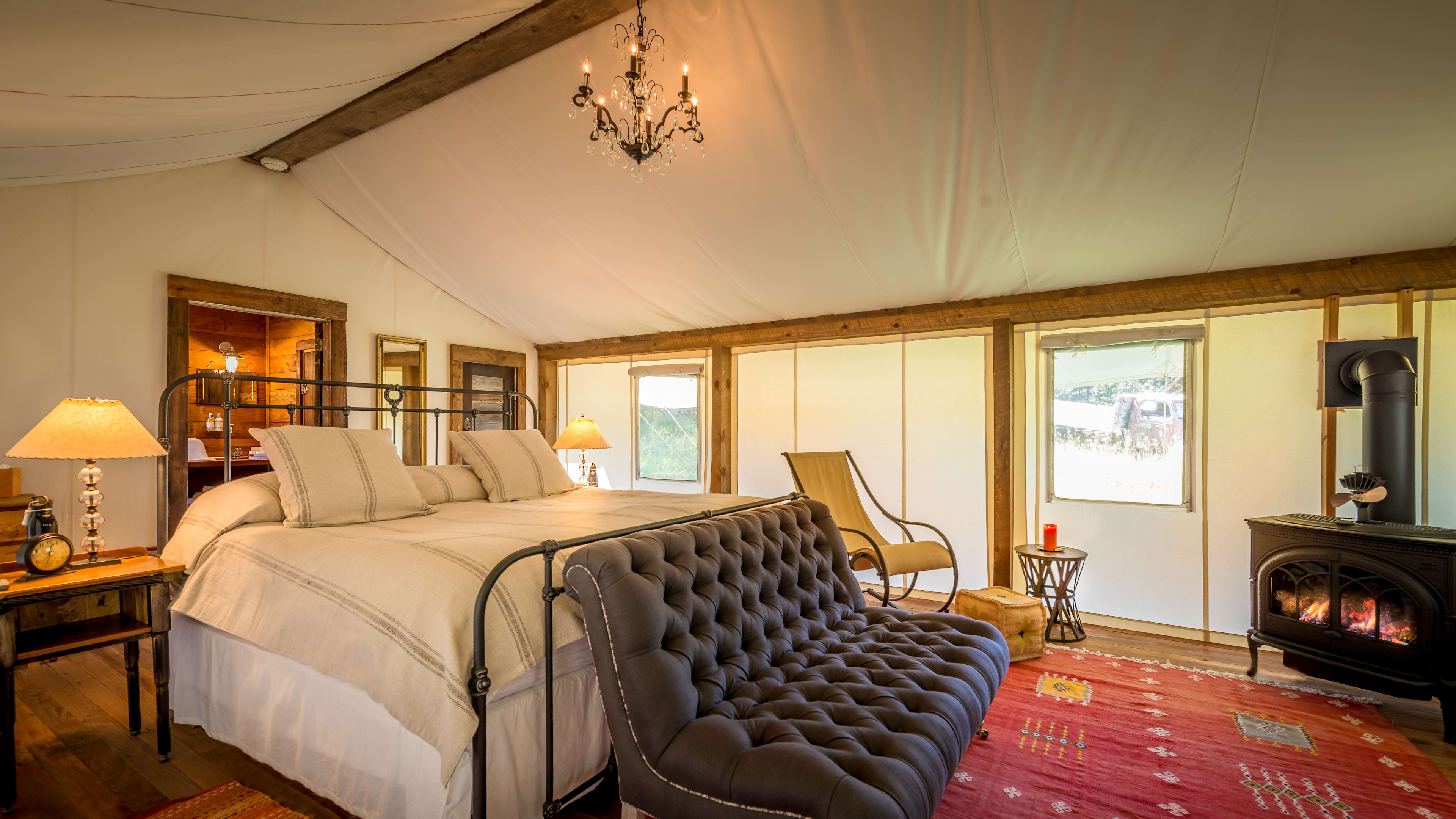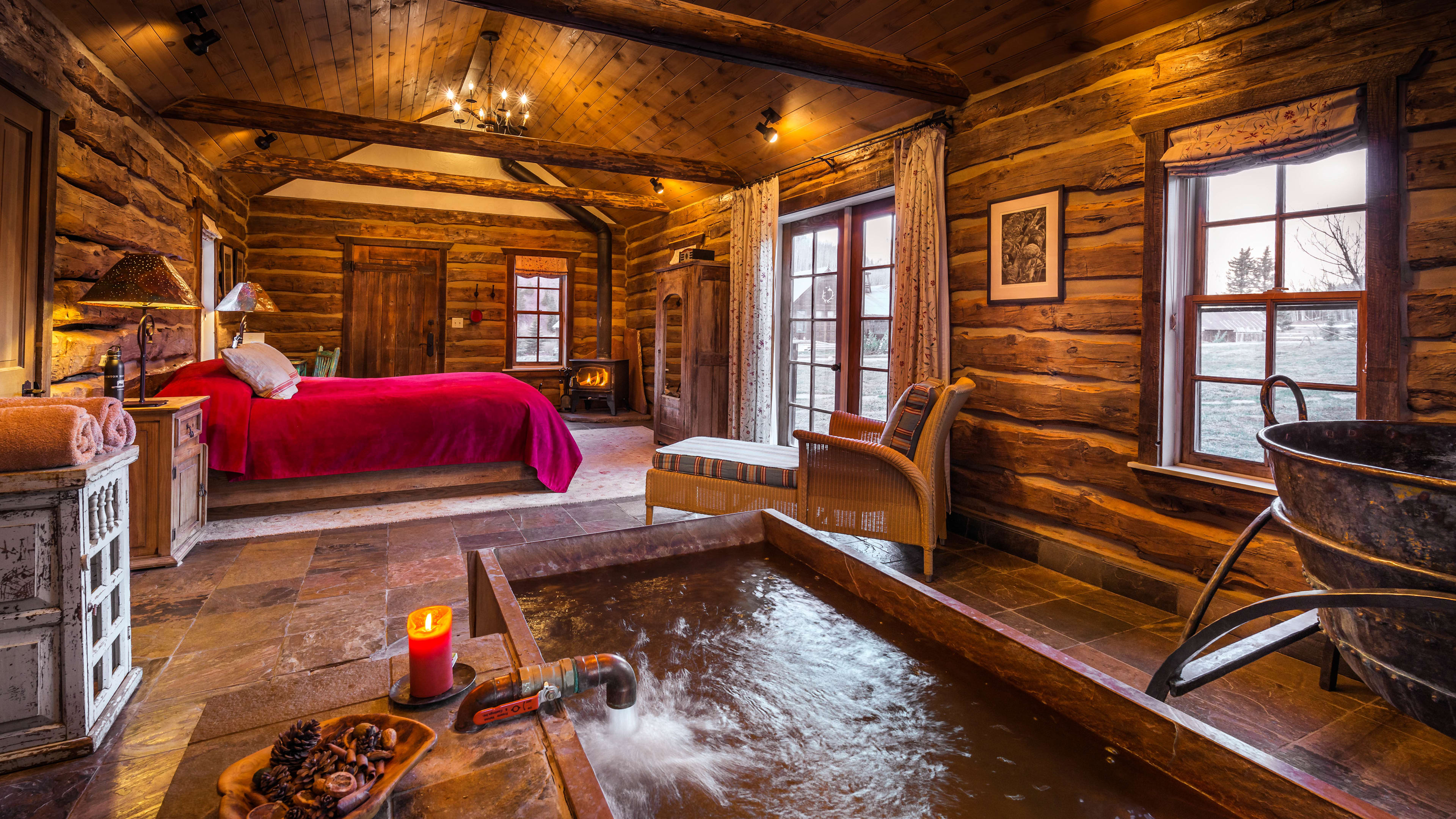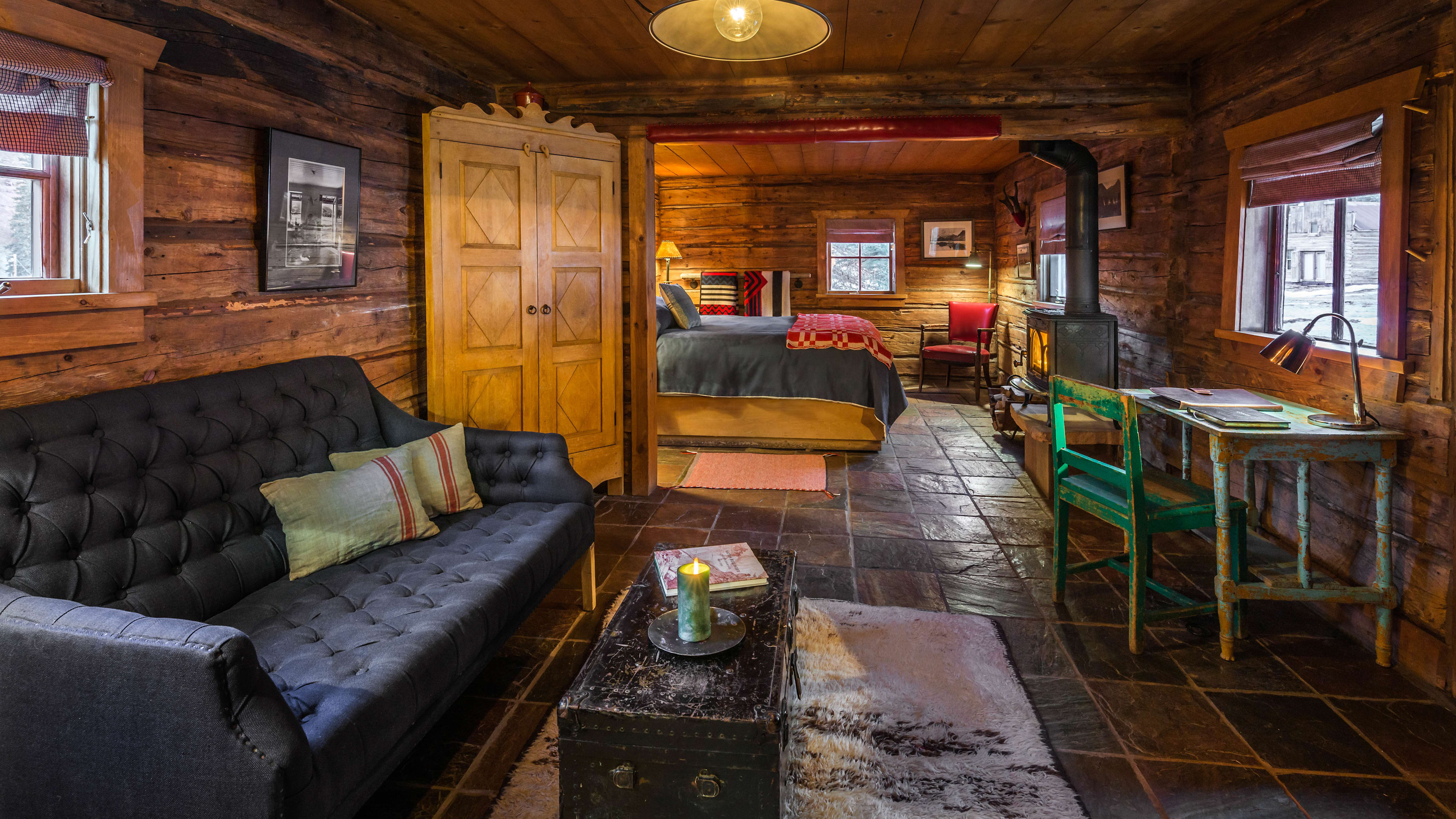 Of all the cabins, we love the spacious Well House best for its open plan, romantic vibe and private hot springs. Runner up goes to Bjoerkmans, one of the oldest and cosiest cabins, named after the miner that built it. As well as a view of the waterfall, its understated design takes in rustic rugs and classic wooden furniture. For seclusion, plump for Dolores, which has a large deck overlooking the river.