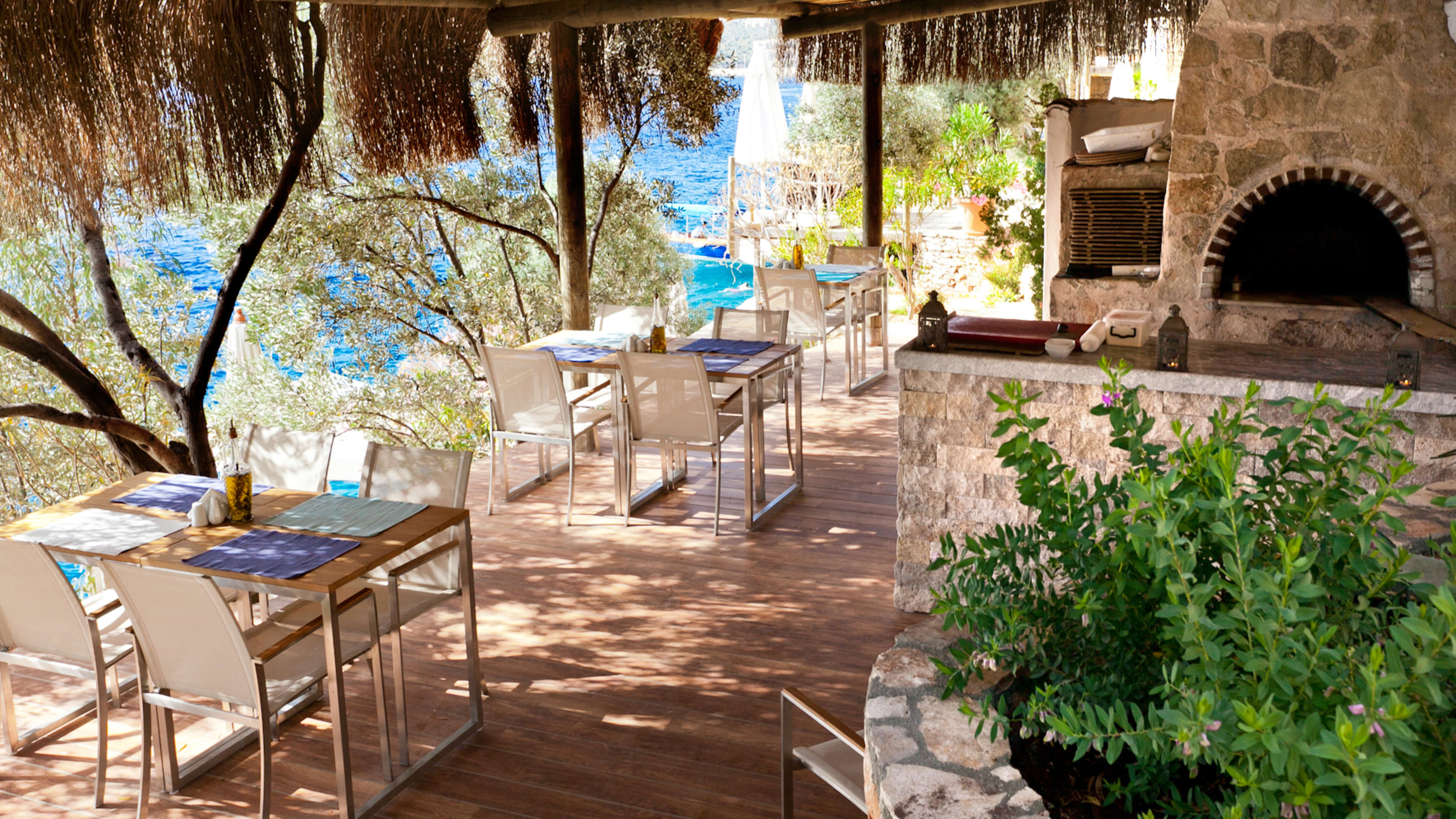 Sink into a bean bag or laze on a sunlounger at Mahal Beach Bar and sip a home-made lemonade with mint or a signature My Mahal cocktail (rum, Malibu, pineapple juice, blue caraçao and lime). Post-swim snacks include fried courgettes and cheese plates. Trusty Turkish wines (a glass of the Angora or Egeo goes down well) populate the poolside honesty bar – the brave can try a tot of potent Raki (a local anise-flavoured spirit) – and the rooftop terrace is the spot for sundowners.