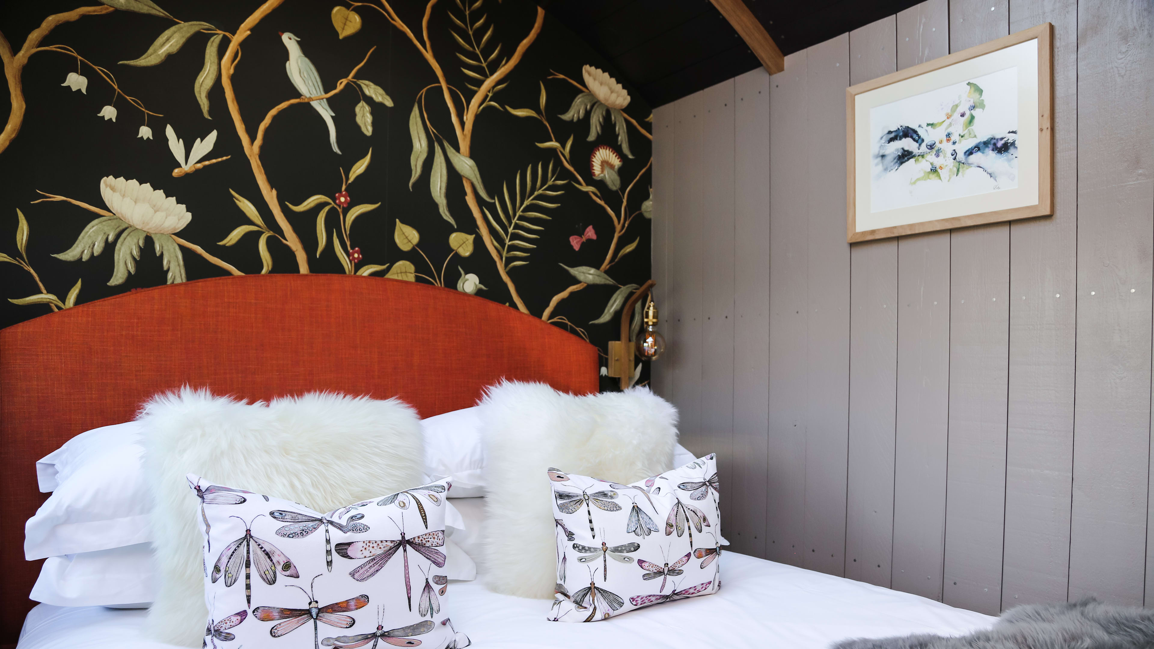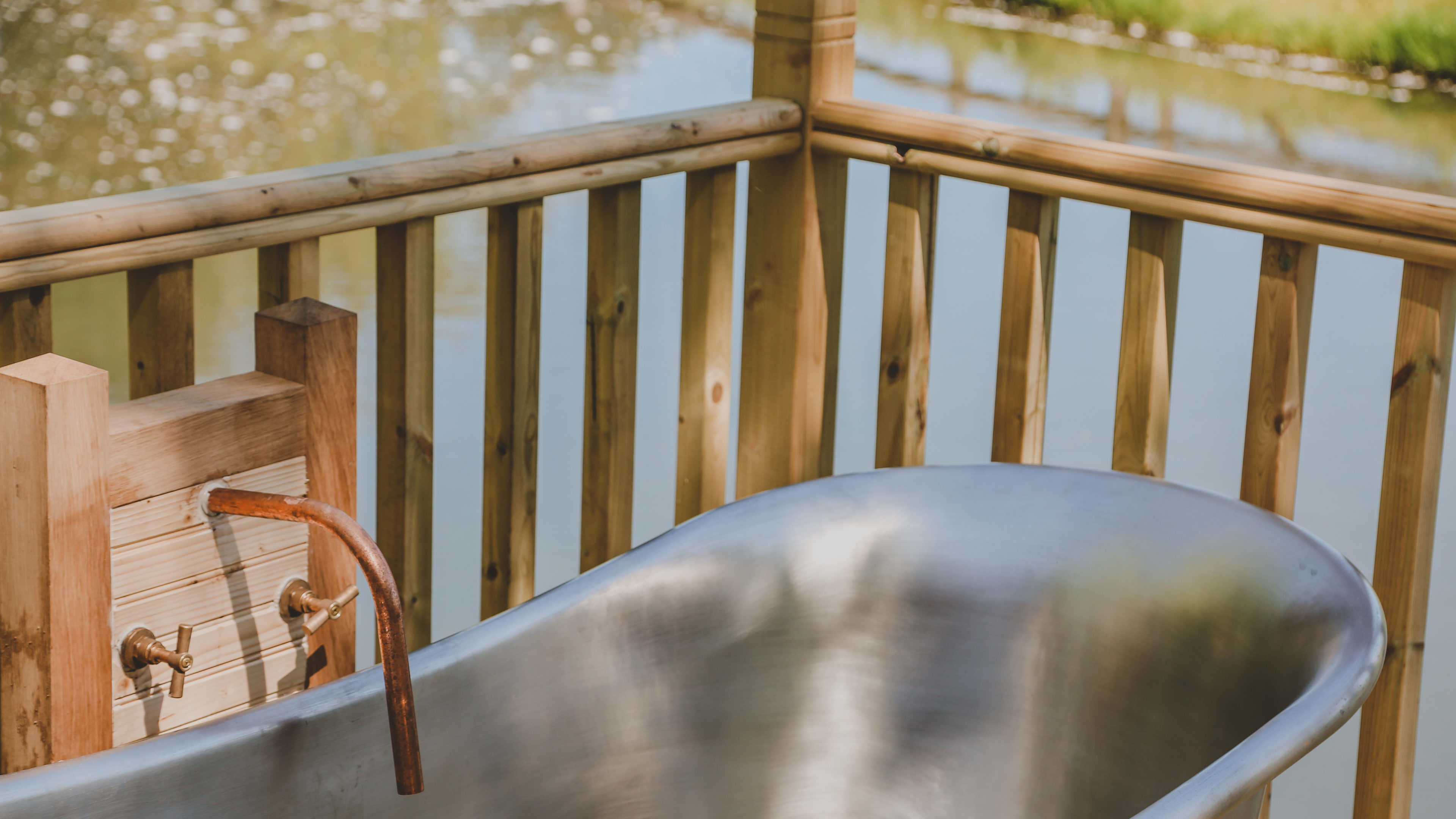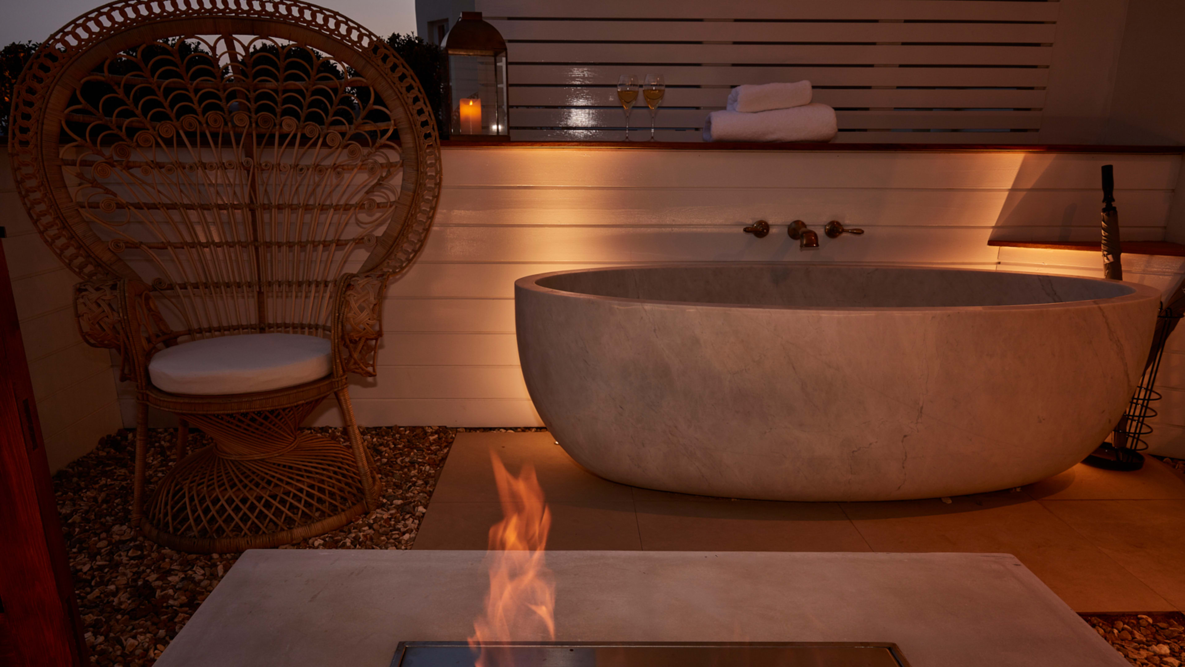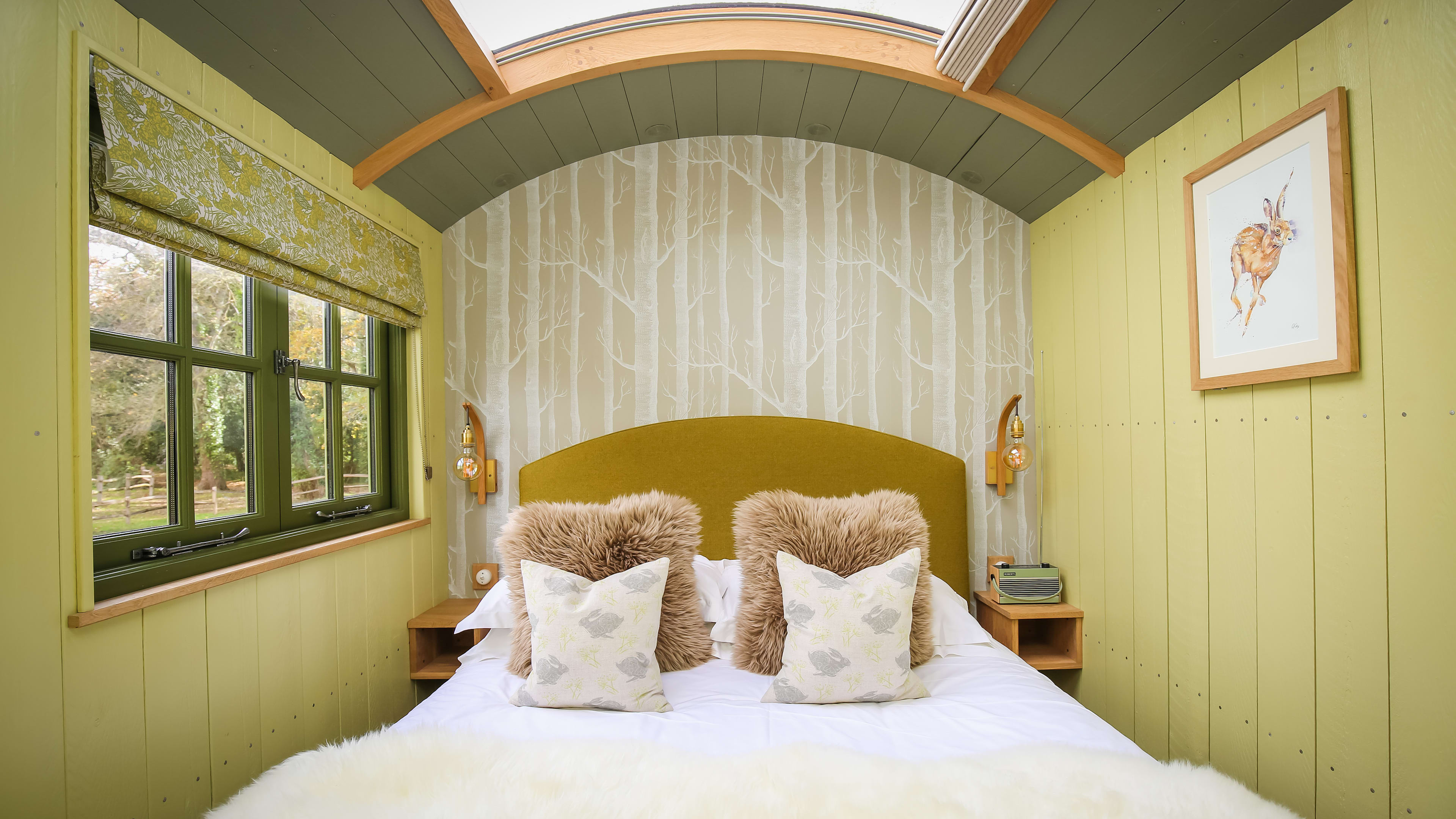 The Heron Suite has two side-by-side, gilded, roll-top bath tubs with views across the Estuary through tall Georgian sash windows. To ogle the picturesque countryside at will, stay in one of the Shepherd Huts (the Bee Hive is our favourite) which have expansive vineyard views and alfresco bath tub or wood-fired hot tubs for romantic soaks.