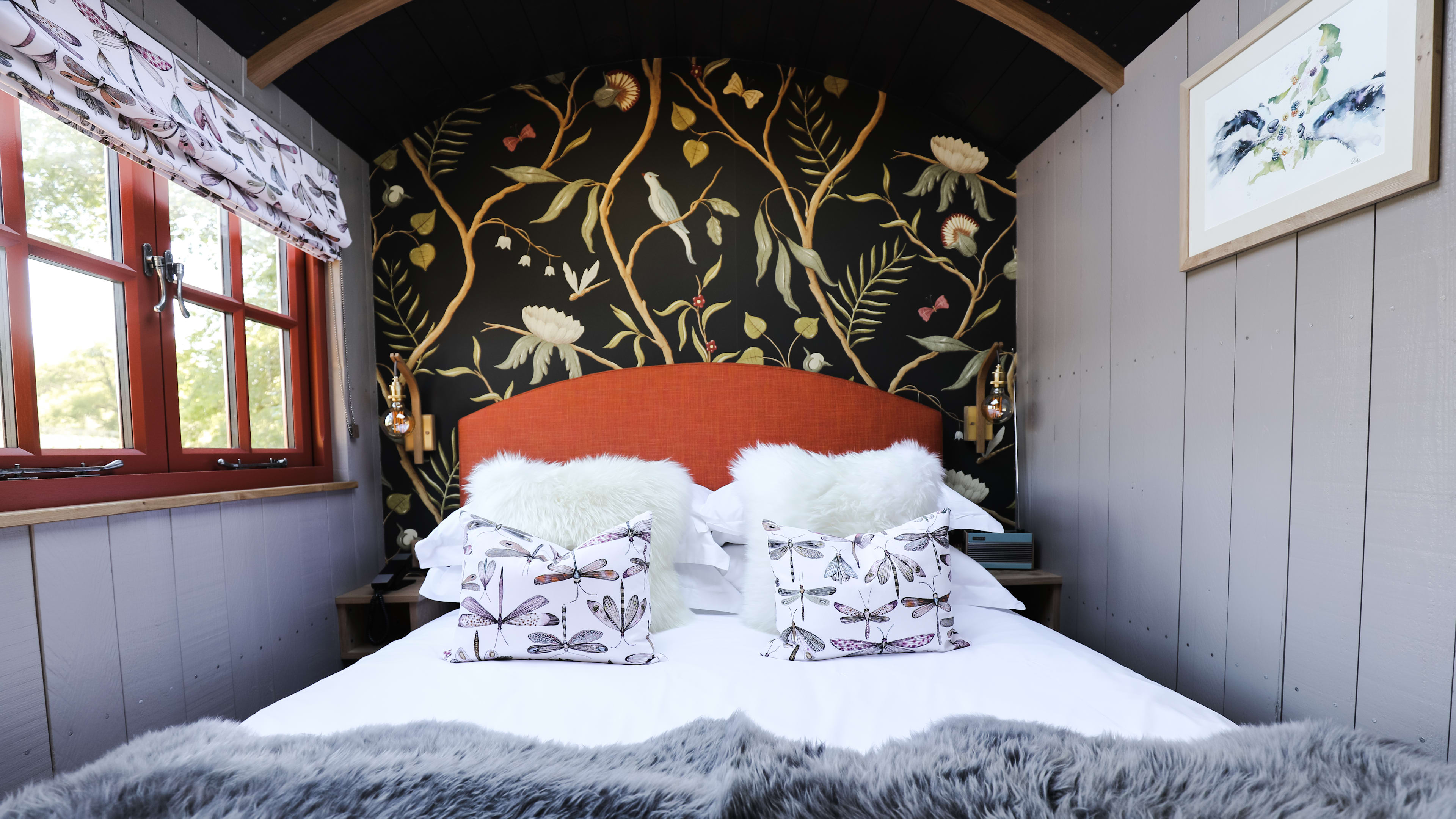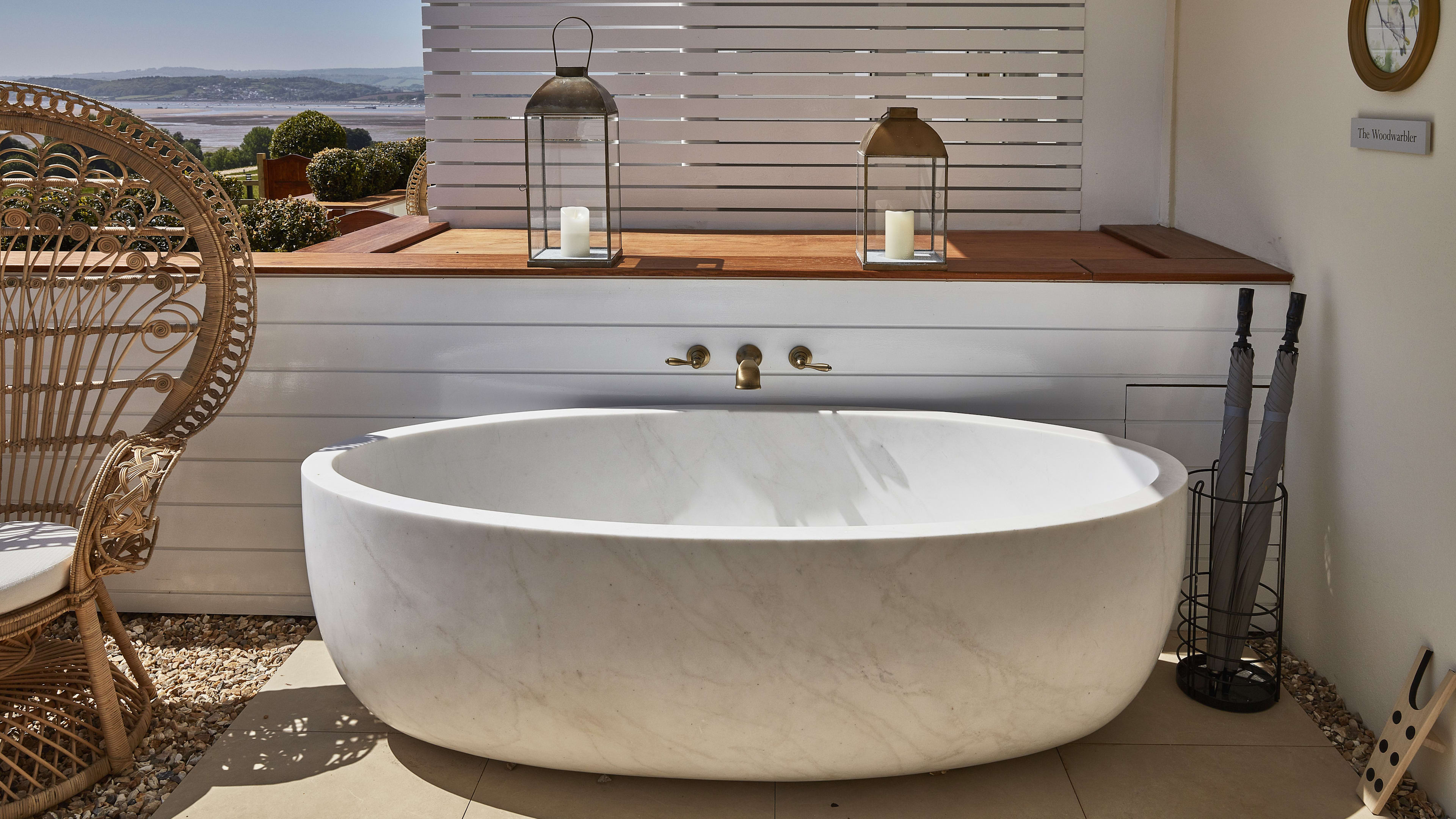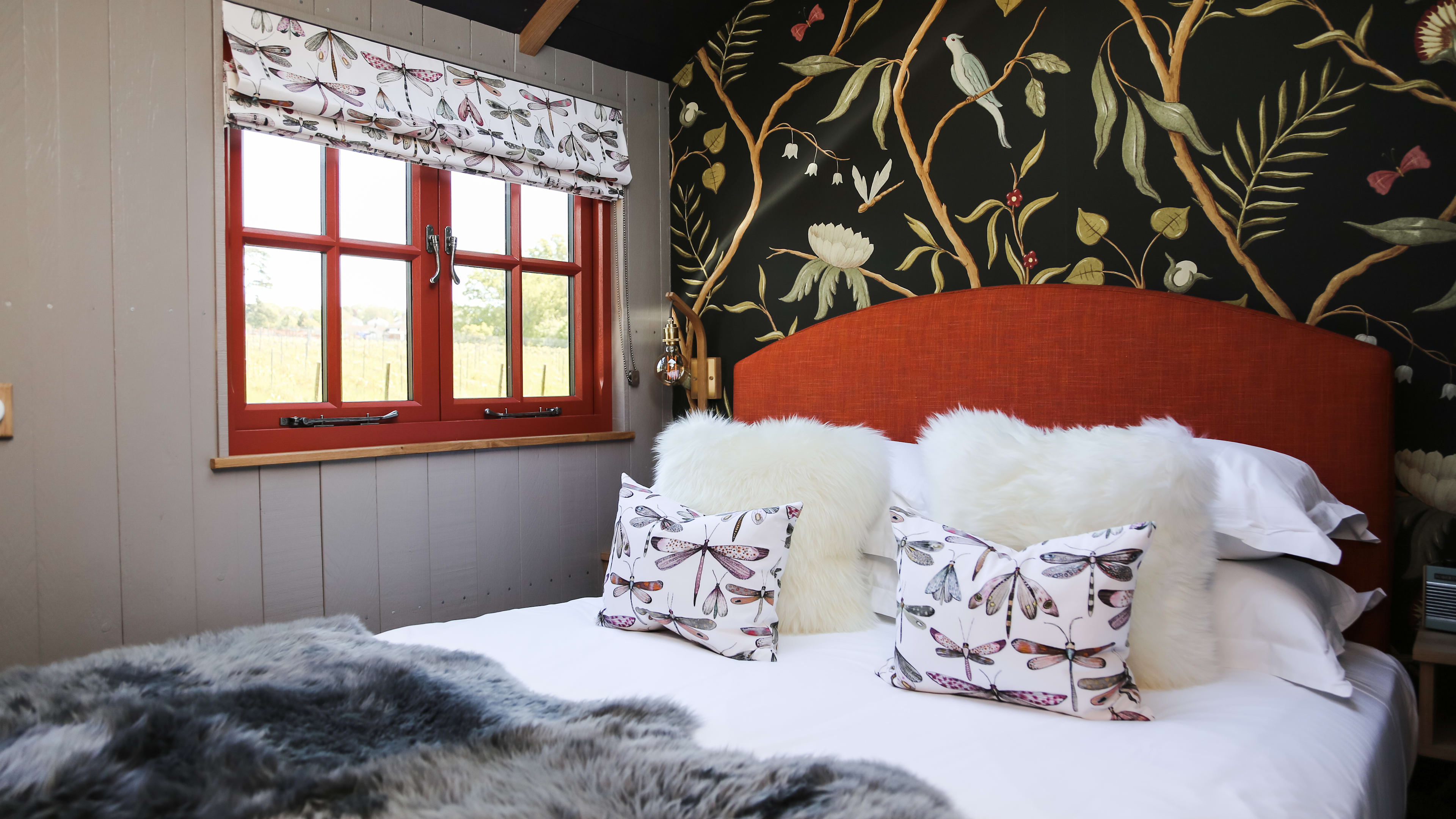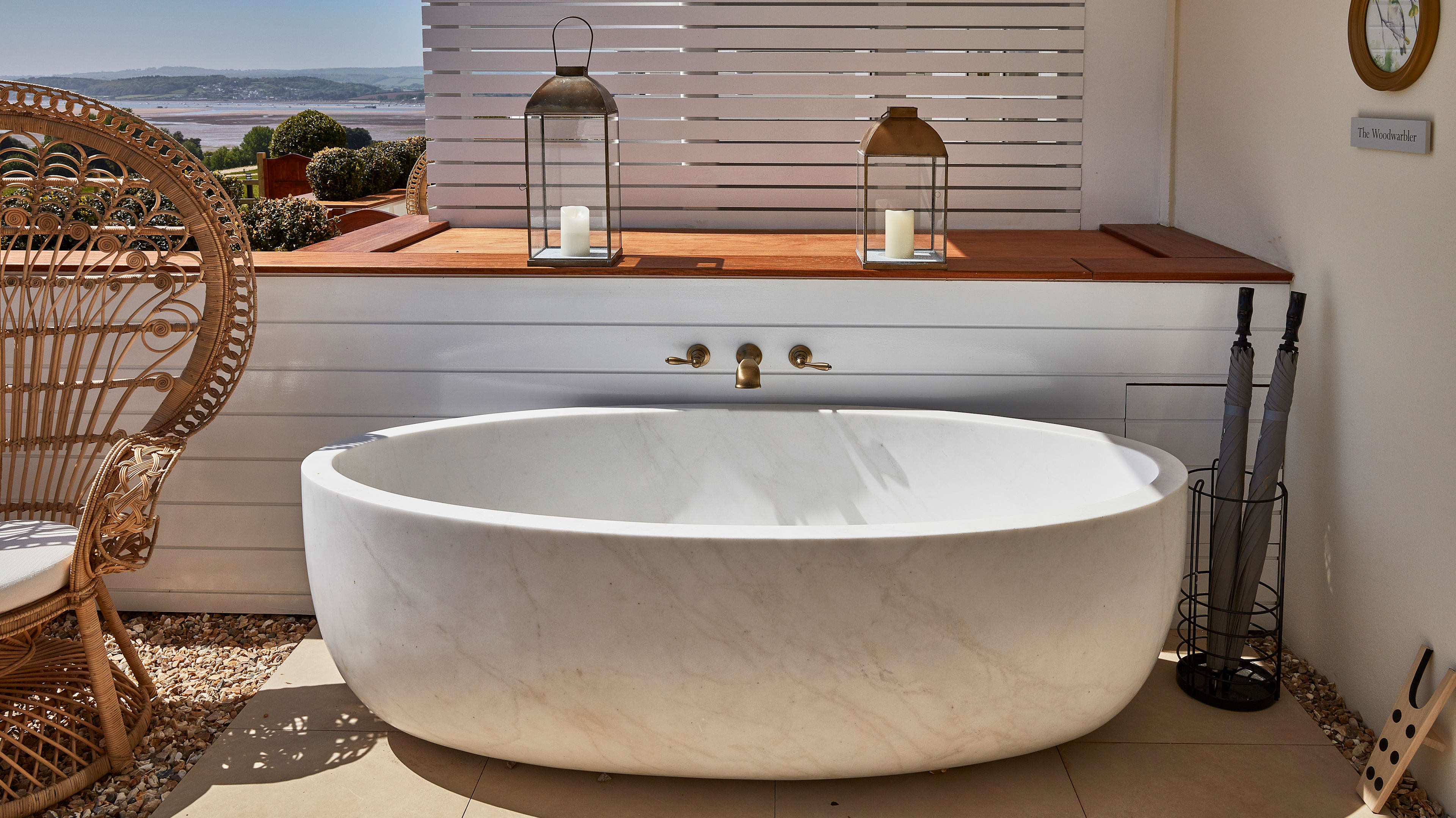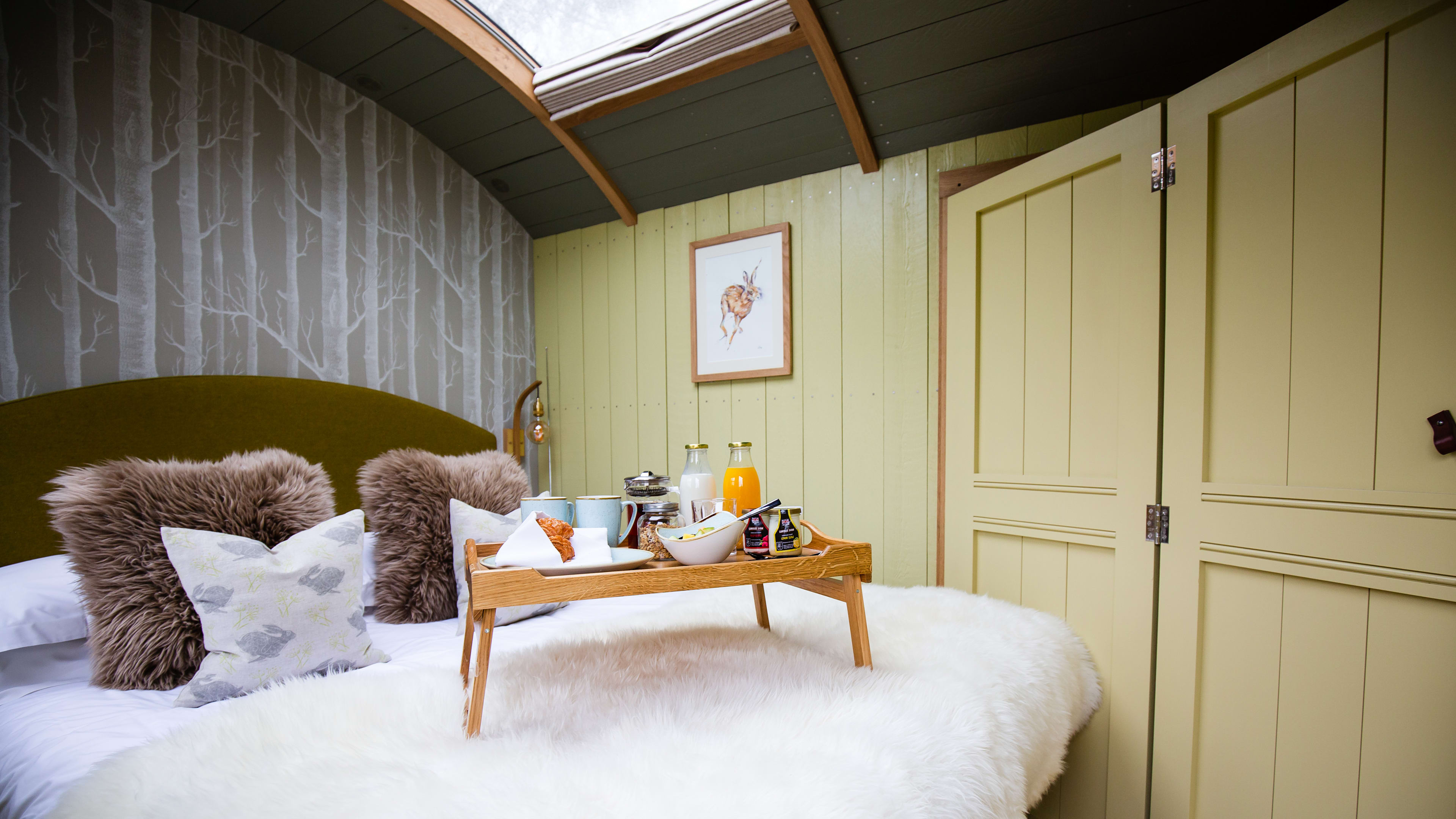 The Heron Suite has two side-by-side, gilded, roll-top bath tubs with views across the Estuary through tall Georgian sash windows. To ogle the picturesque countryside at will, stay in one of the Shepherd Huts (the Bee Hive is our favourite) which have expansive vineyard views and alfresco bath tub or wood-fired hot tubs for romantic soaks.