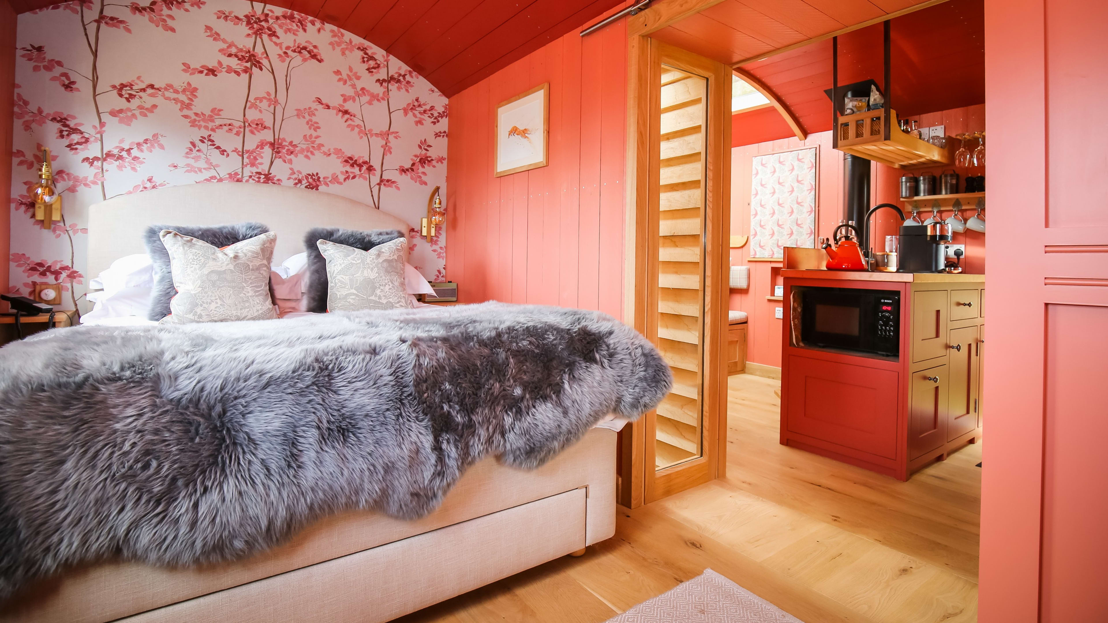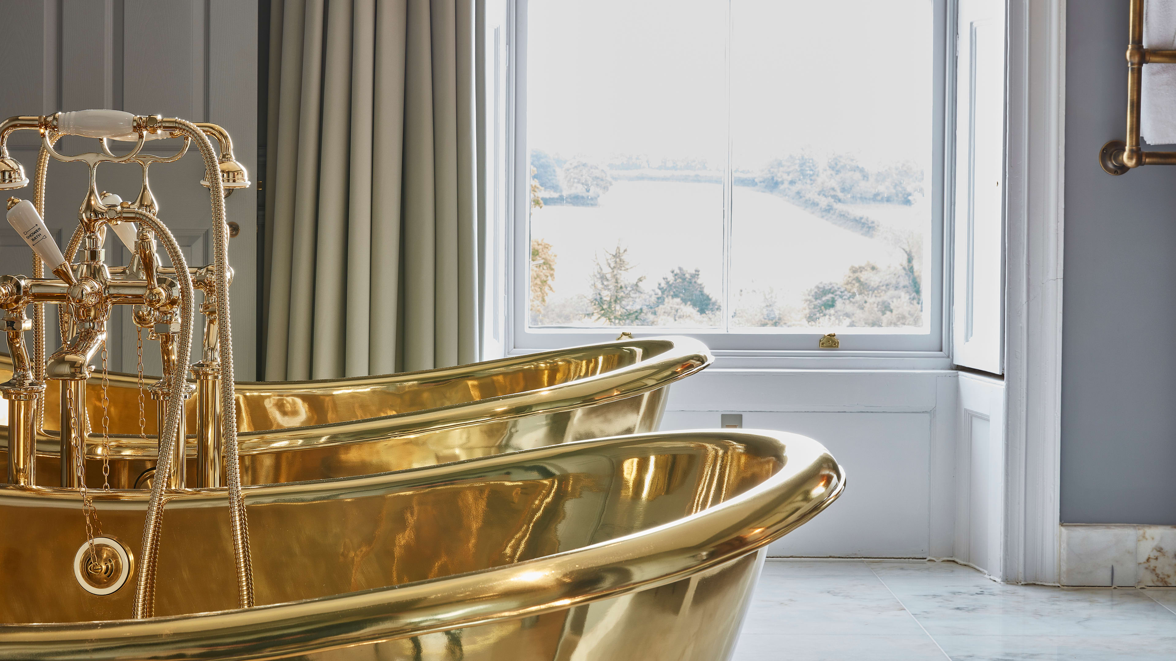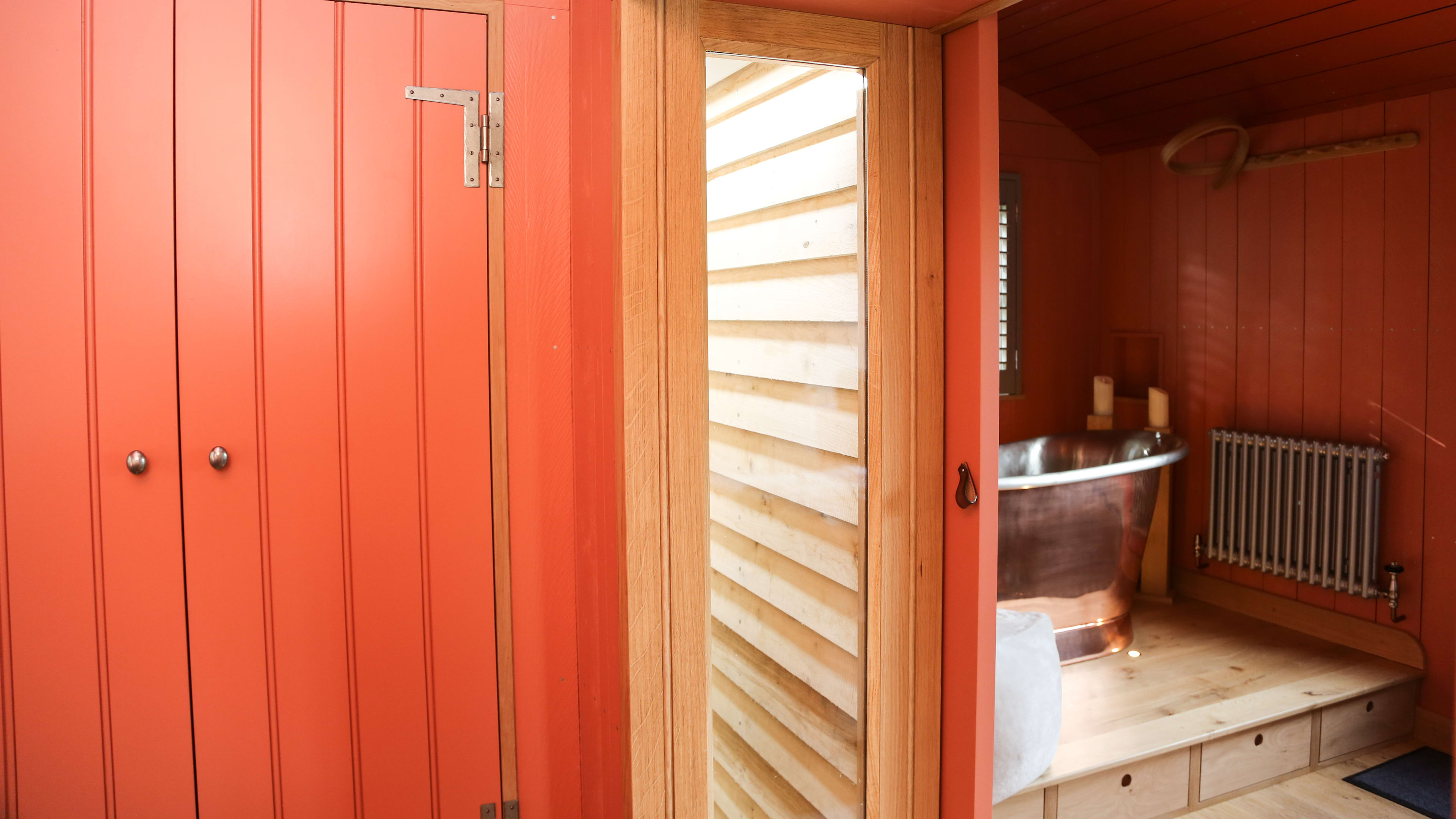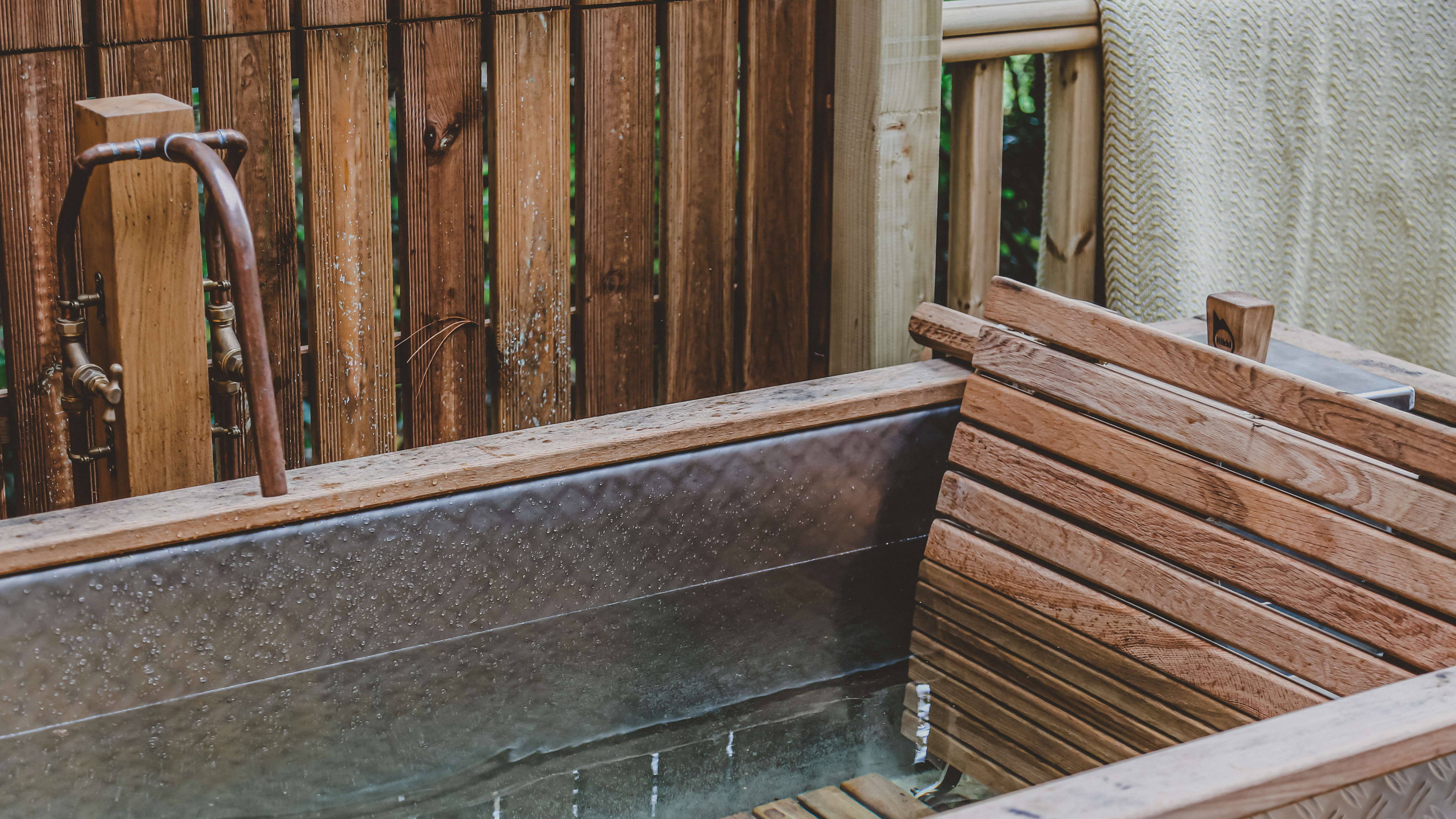 The Heron Suite has two side-by-side, gilded, roll-top bath tubs with views across the Estuary through tall Georgian sash windows. To ogle the picturesque countryside at will, stay in one of the Shepherd Huts (the Bee Hive is our favourite) which have expansive vineyard views and alfresco bath tub or wood-fired hot tubs for romantic soaks.