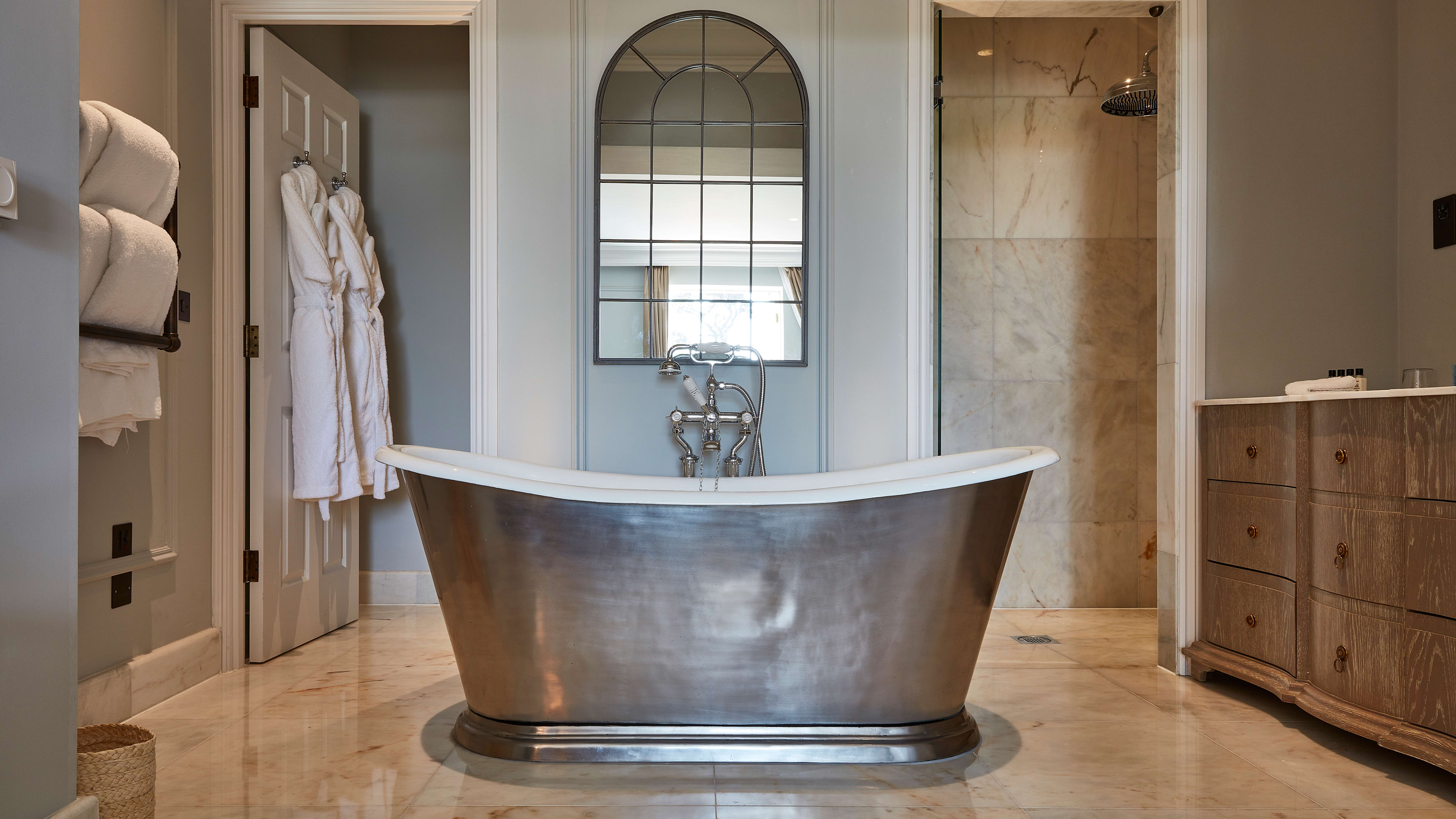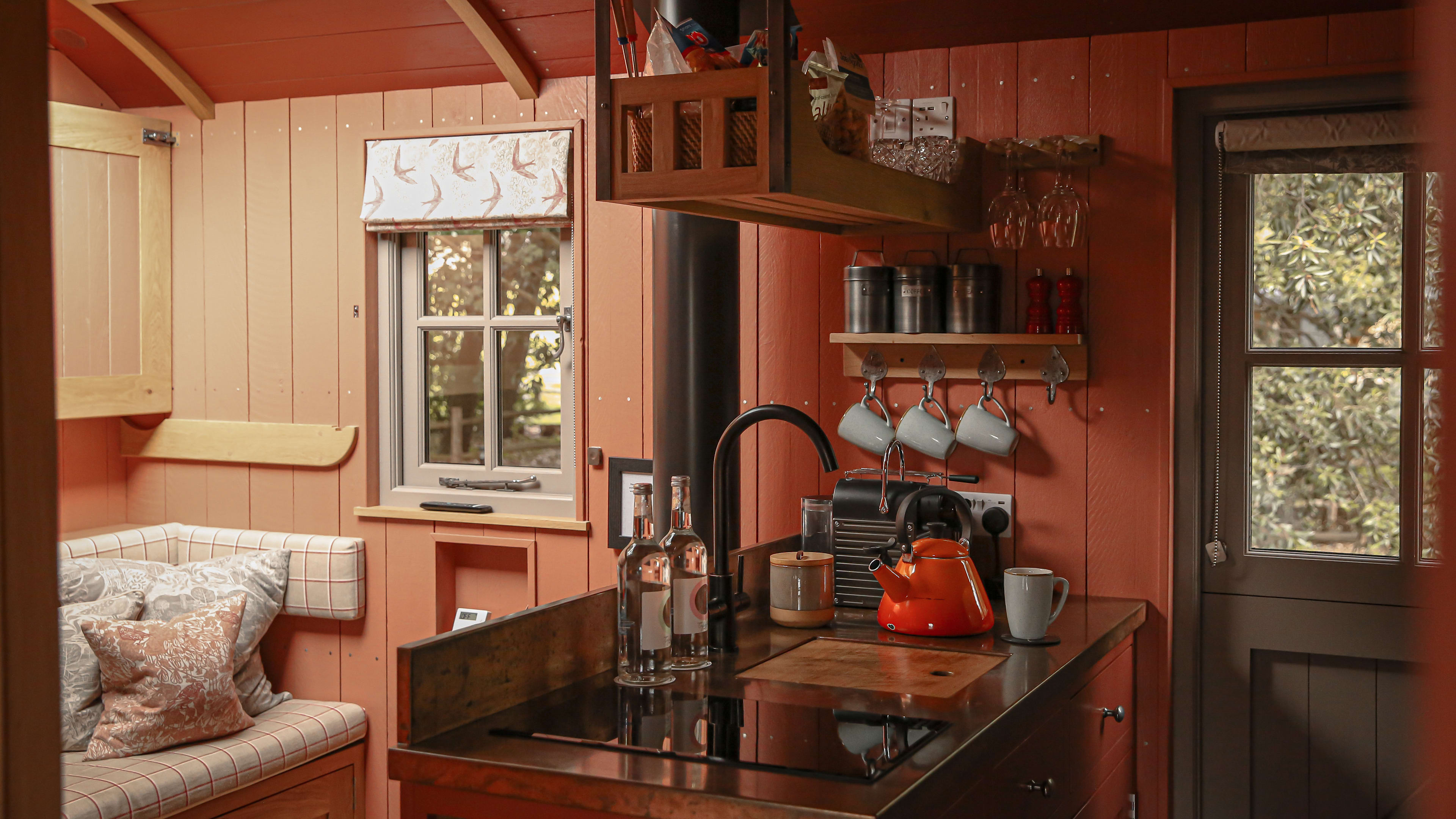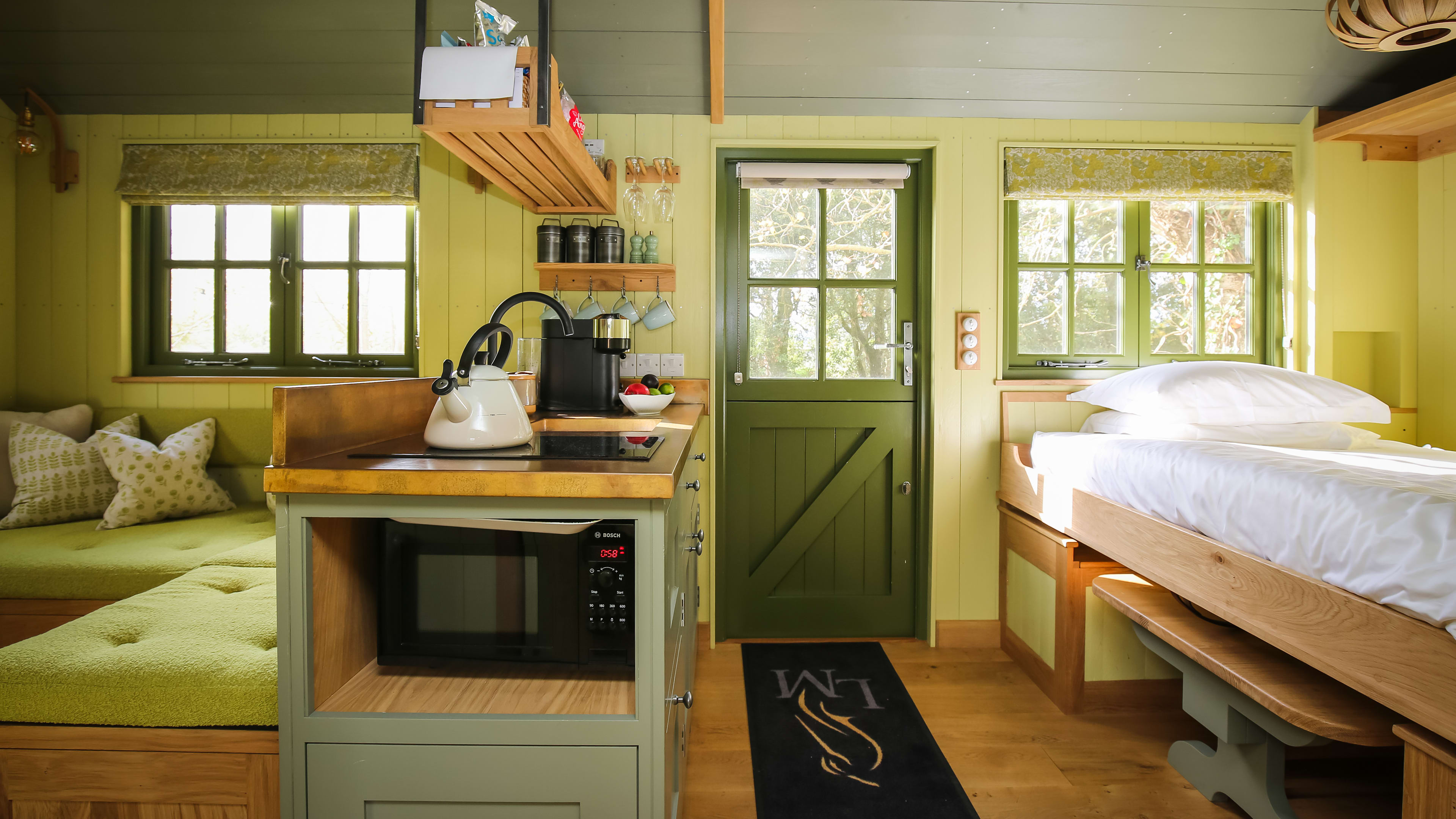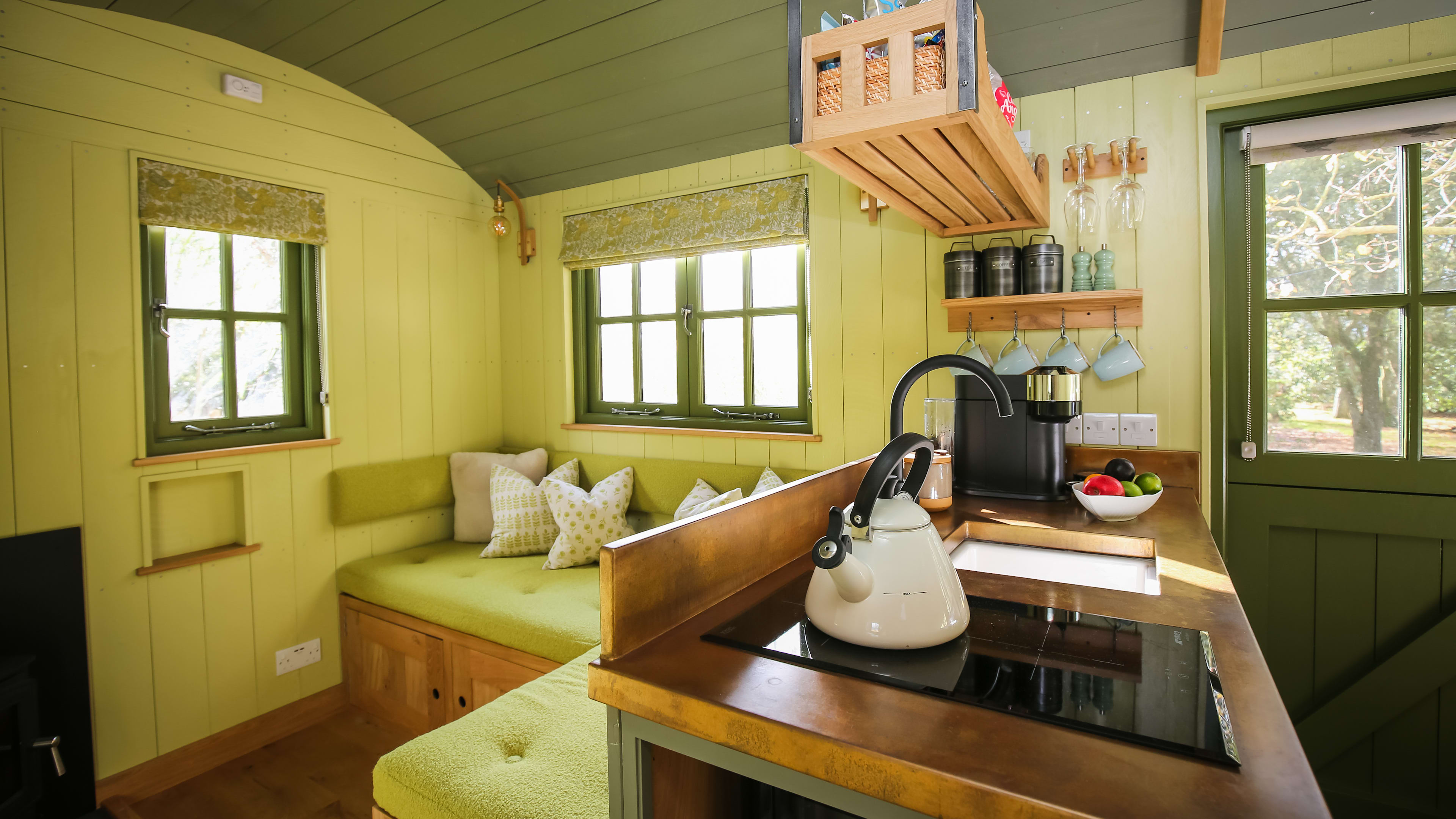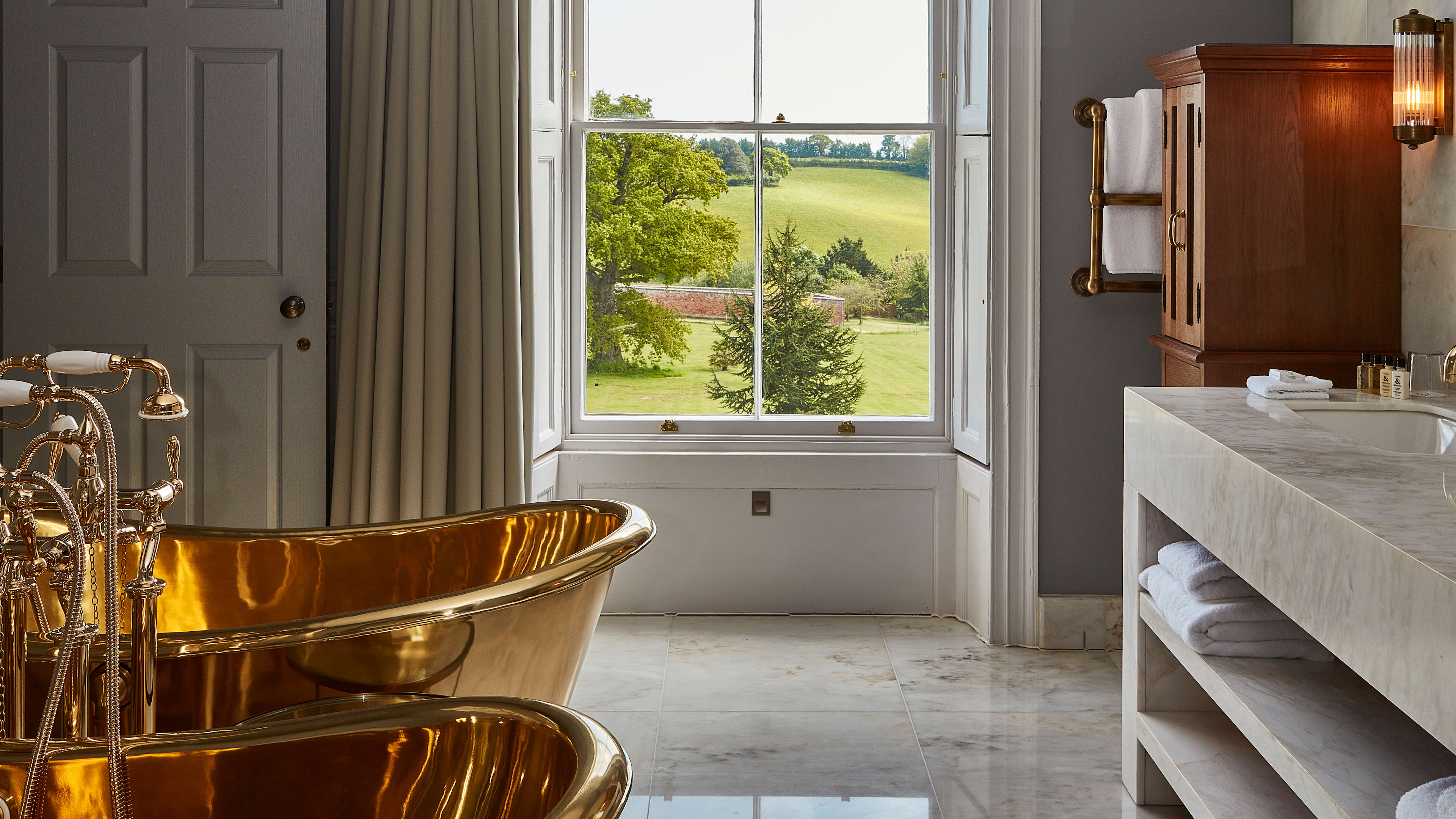 The Heron Suite has two side-by-side, gilded, roll-top bath tubs with views across the Estuary through tall Georgian sash windows. To ogle the picturesque countryside at will, stay in one of the Shepherd Huts (the Bee Hive is our favourite) which have expansive vineyard views and alfresco bath tub or wood-fired hot tubs for romantic soaks.