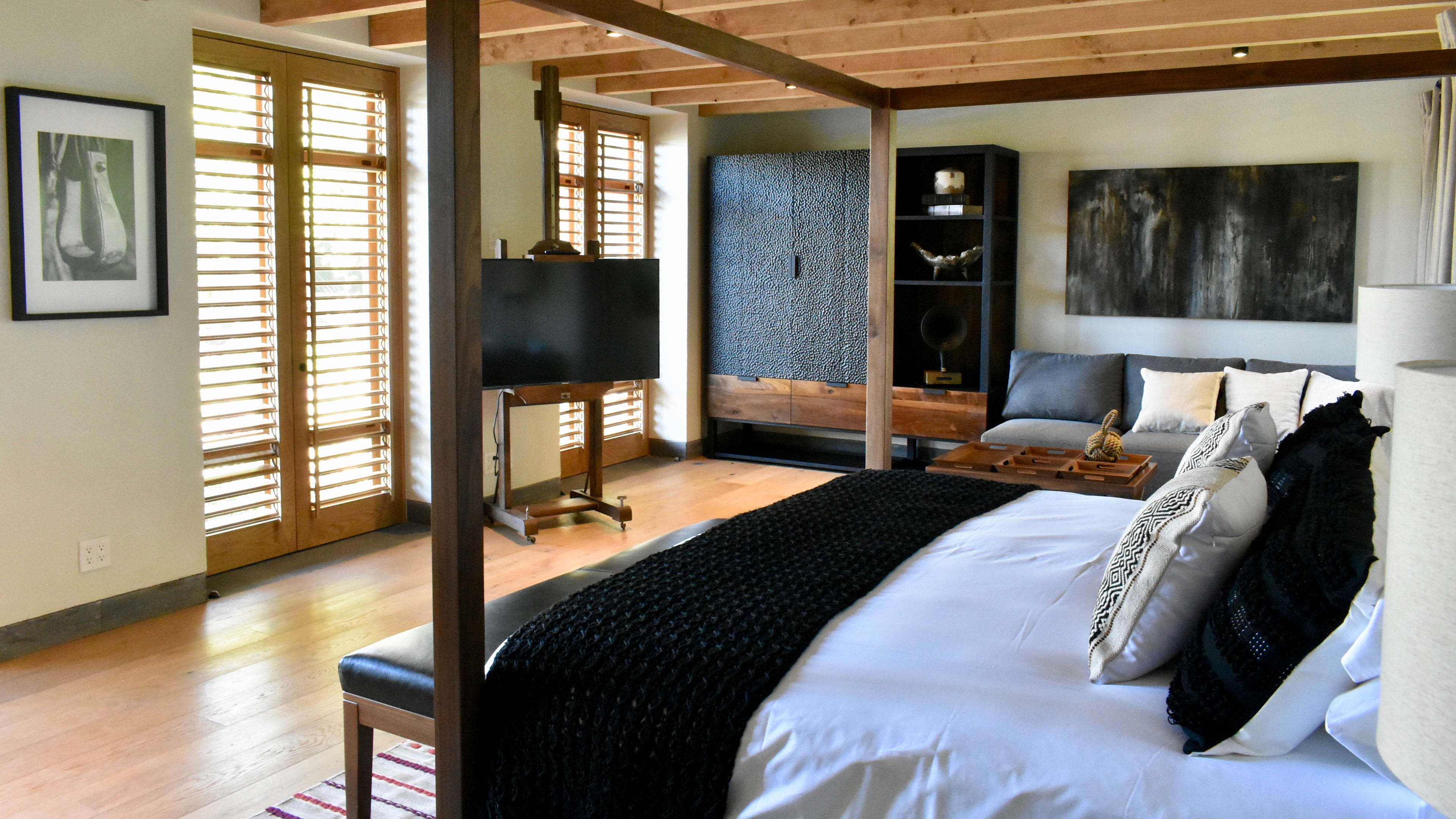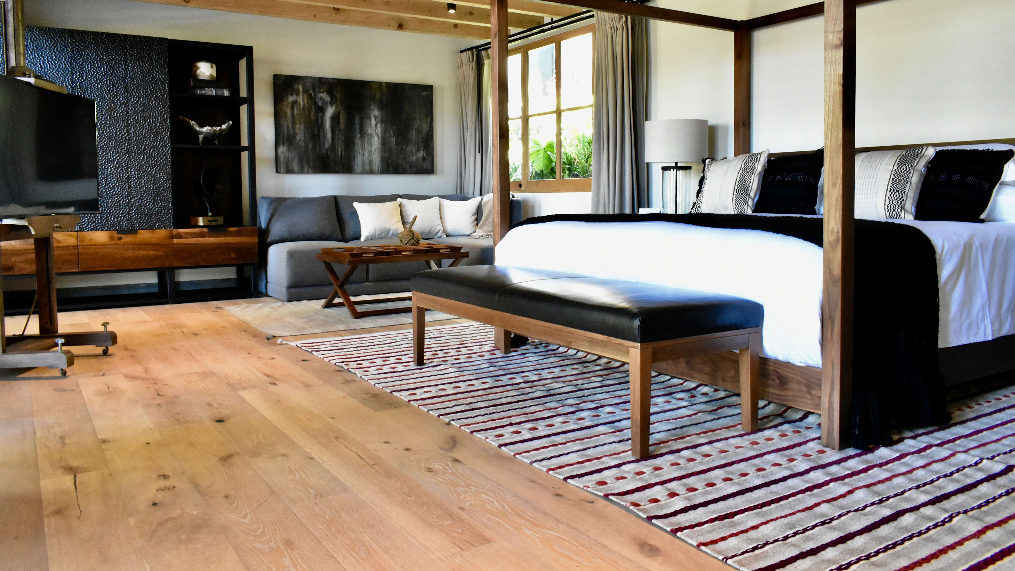 There are only seven and each has its loveable bits. We particularly admire Room Seven’s two balconies, valley views, private patio and garden-facing bath tub; Room Four’s outdoor shower; and Room Two’s private rooftop terrace. If your needs are modest, Room One’s the smallest. Four of the bedrooms are in a more modern building at the back of the existing house.