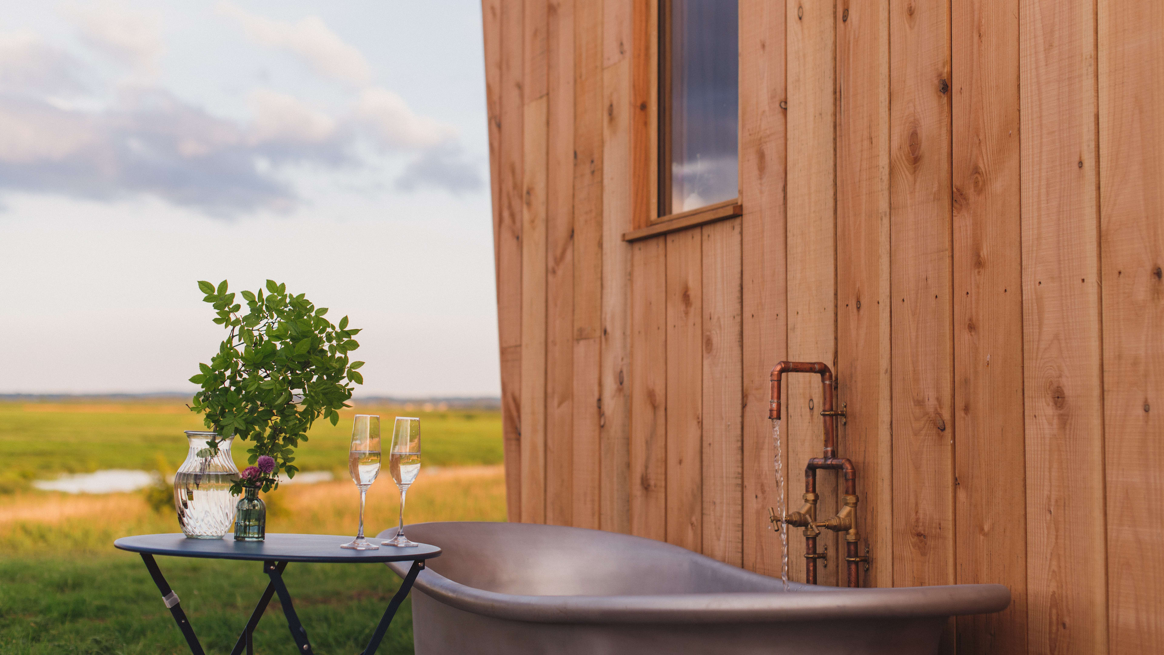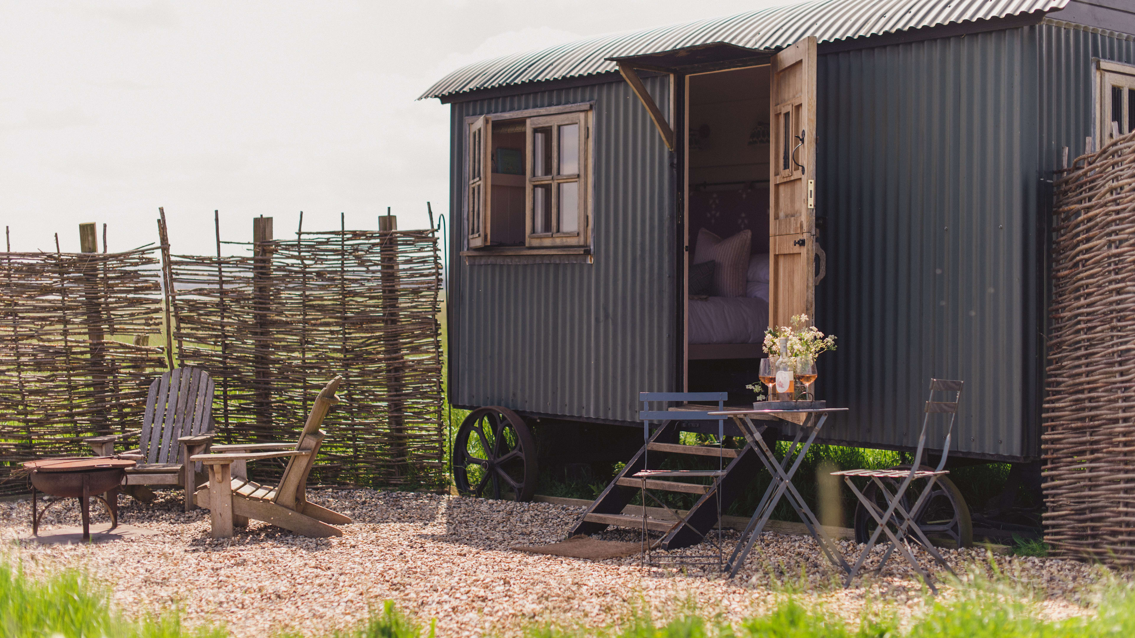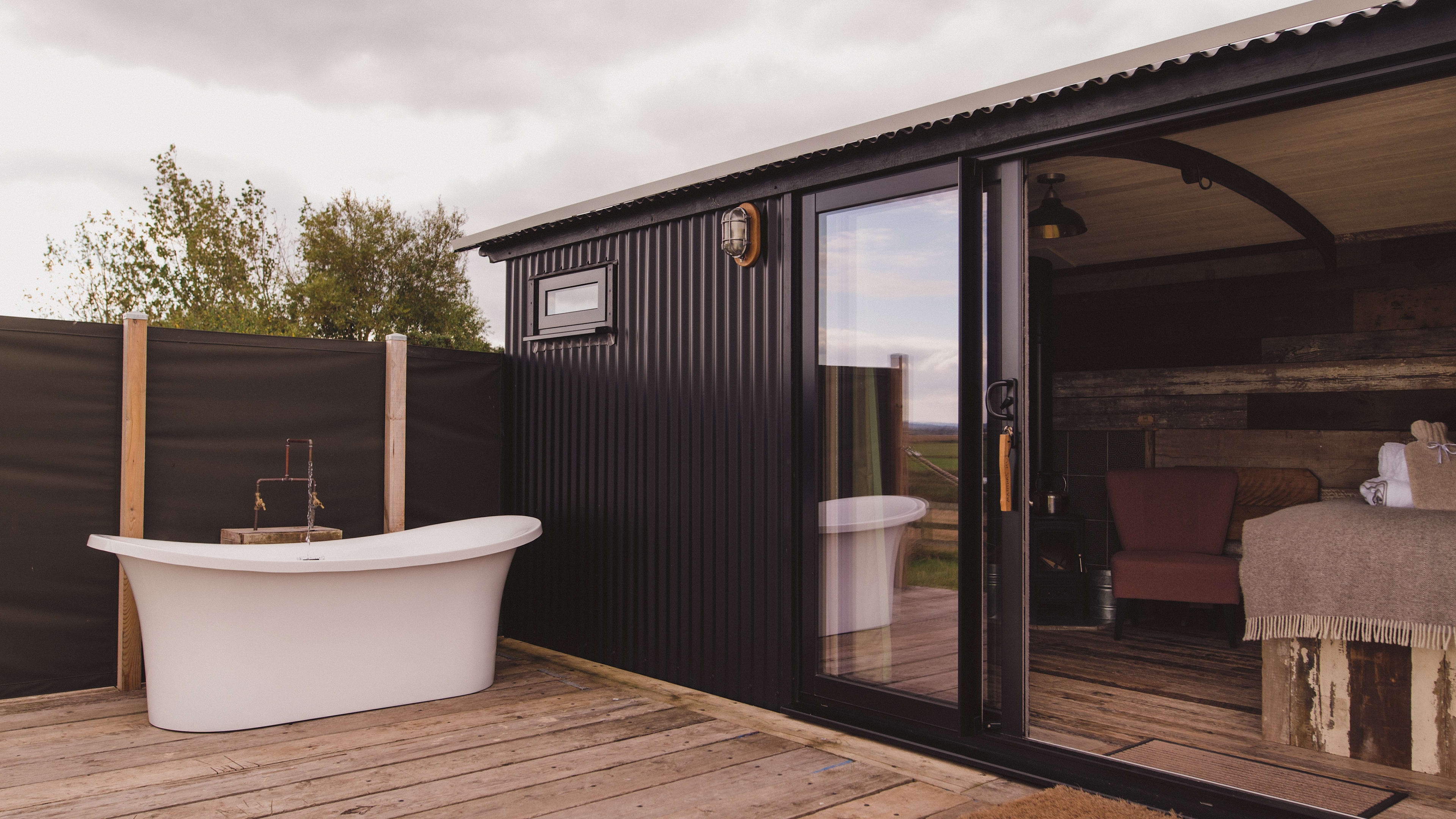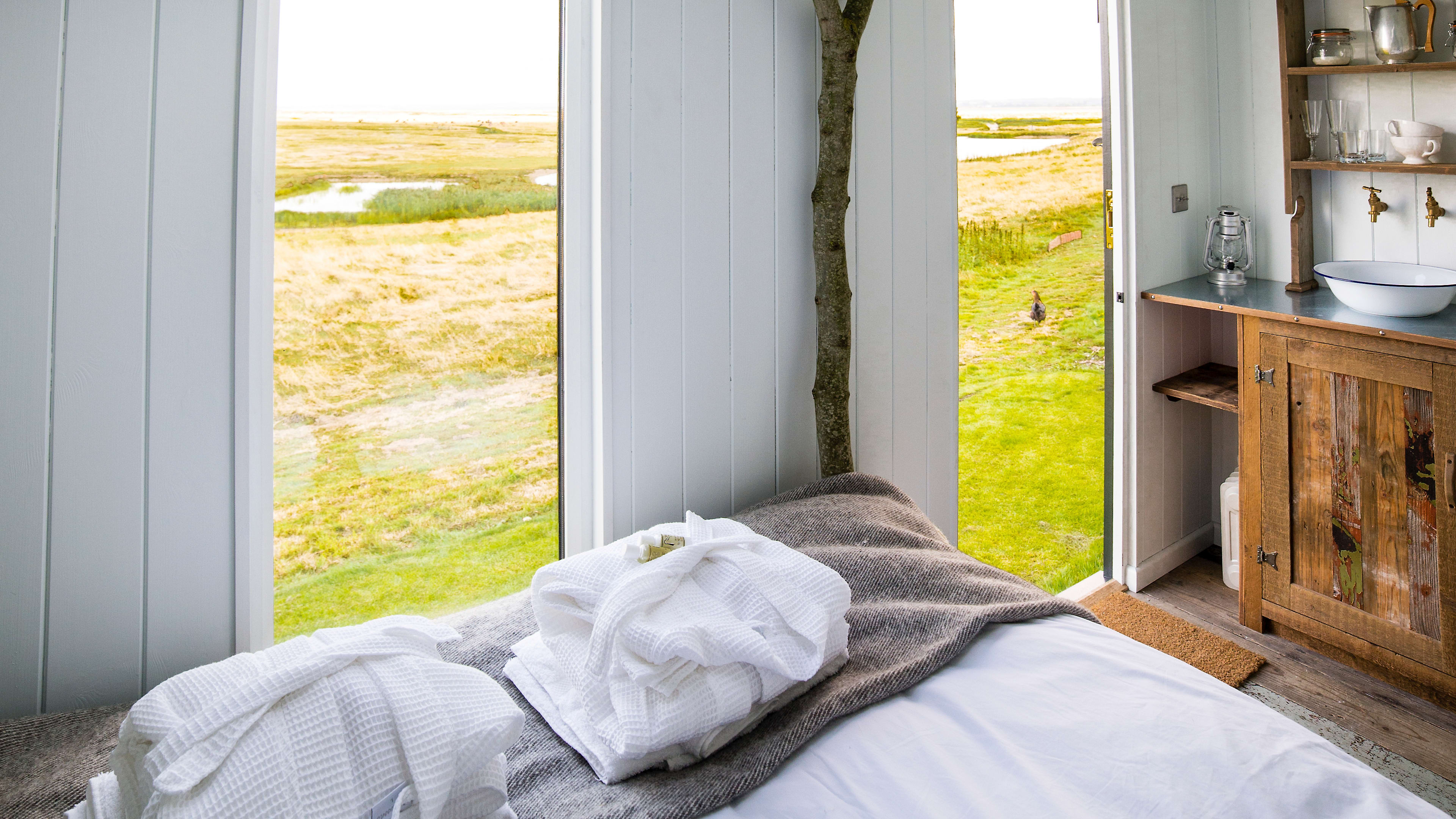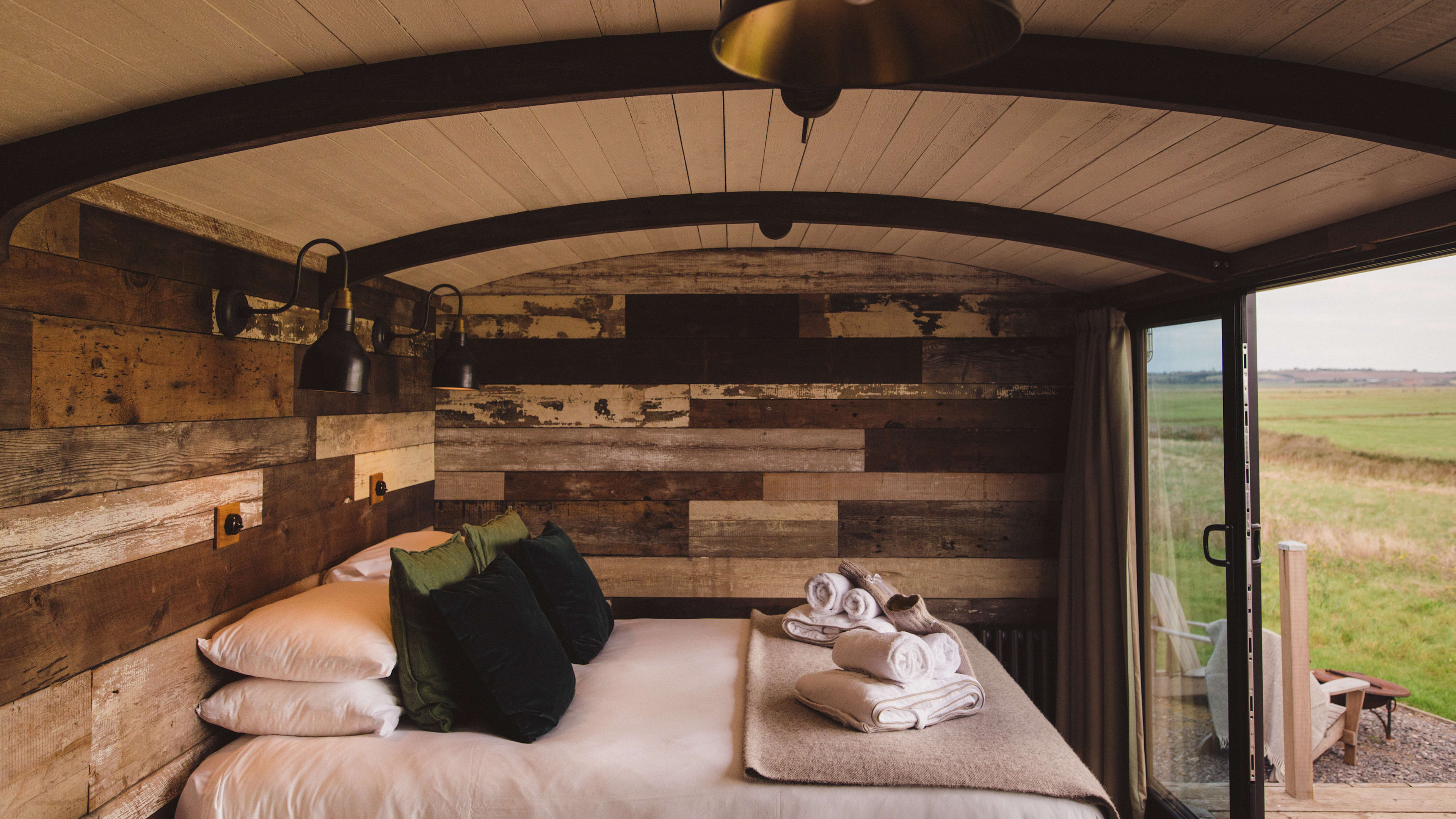 Each of the large huts has bifold doors opening out onto goosebump-inducing views across the landscape. All cabins and large huts have the extra allure of an outdoor vintage bath tub. The Large Shepherd’s Hut also has a hammock above the bed, if you’ve got a mini Smith in tow.