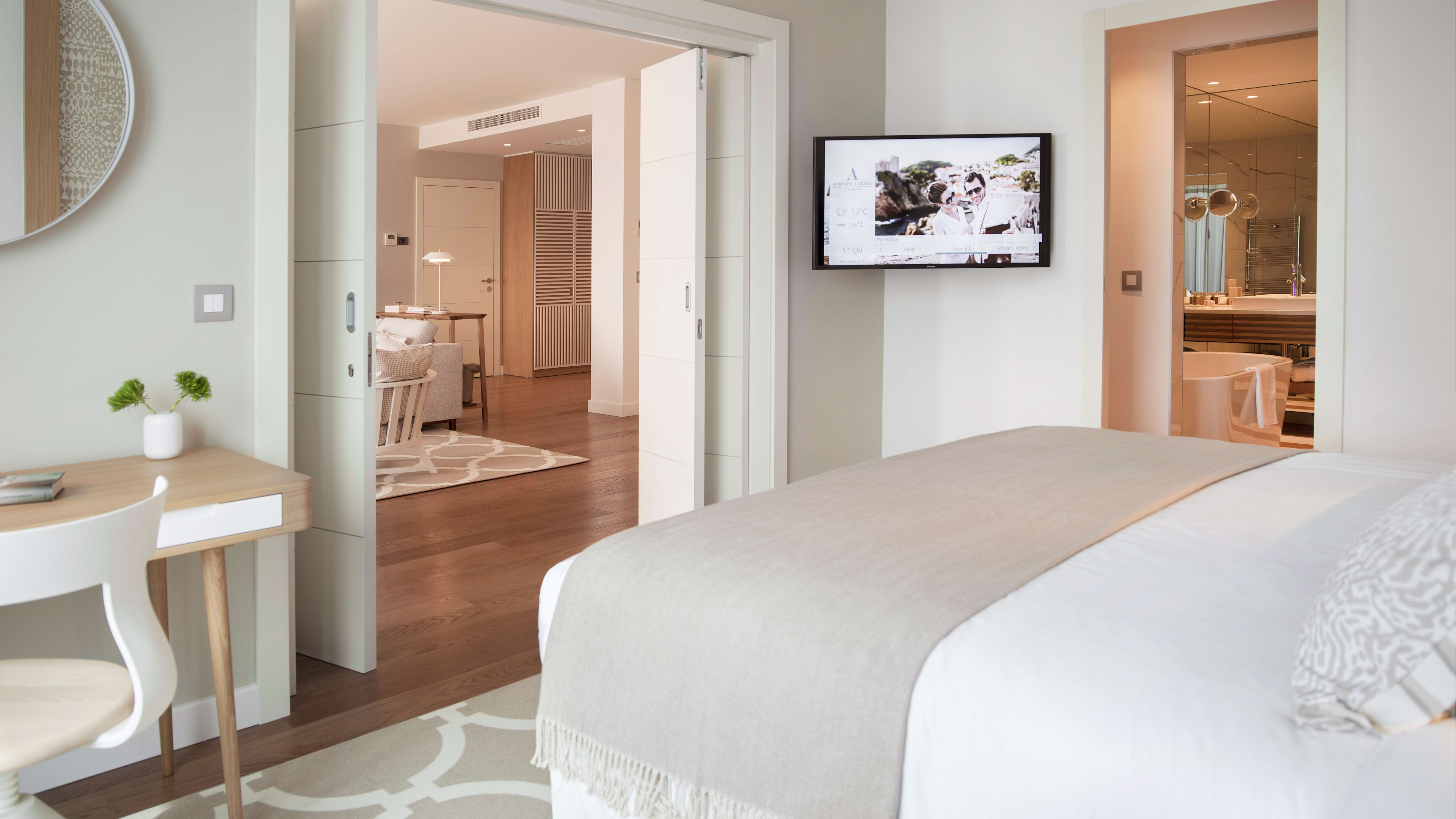 Laundry service; WiFi throughout. In rooms: minibar and fridge; free bottled water; tea and coffee; black-out curtains; air-conditioning; Natura Bisse bath products. Guests staying in the Deluxe and Presidential Suites also get a free return transfer to Dubrovnik Airport.