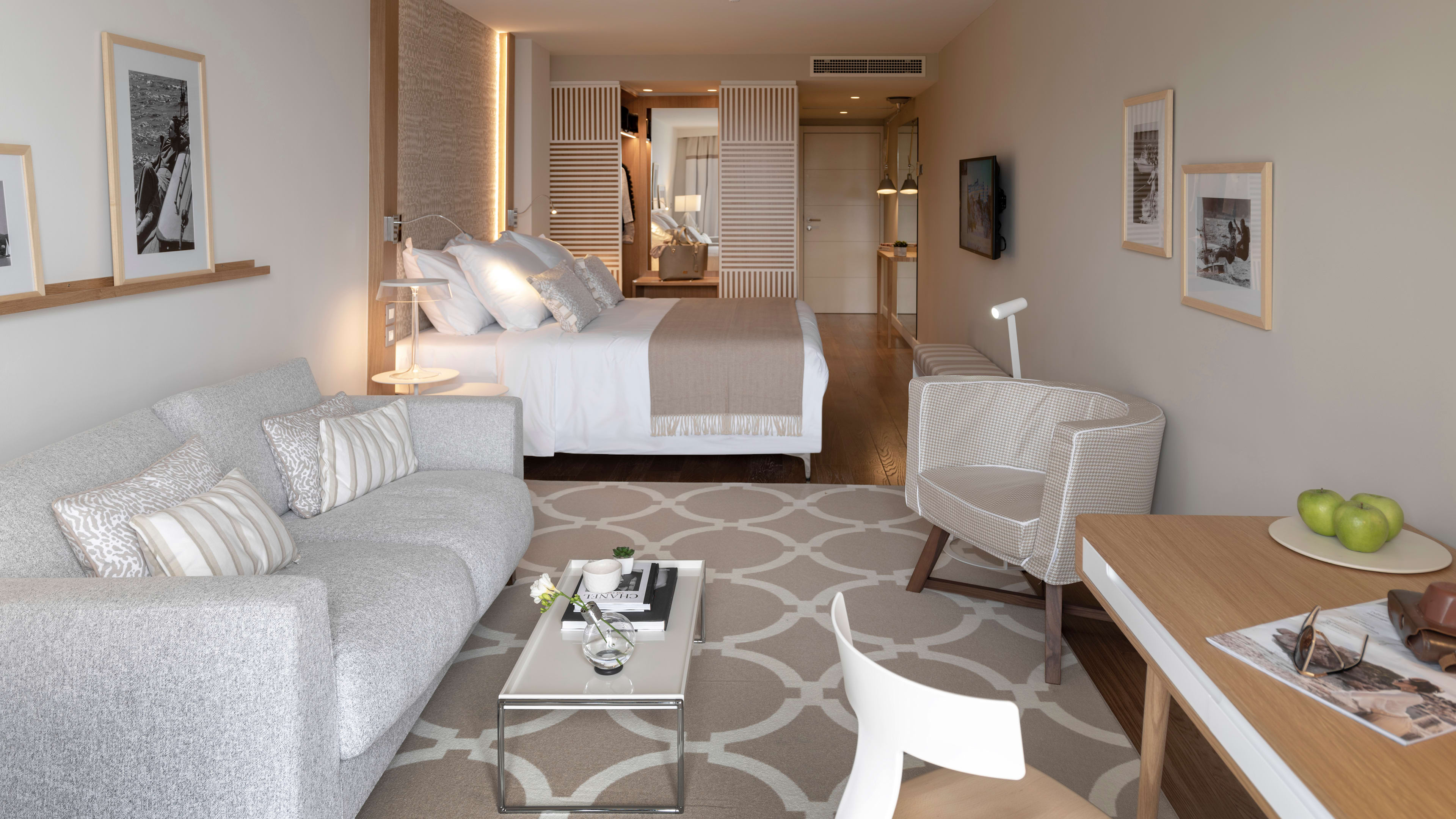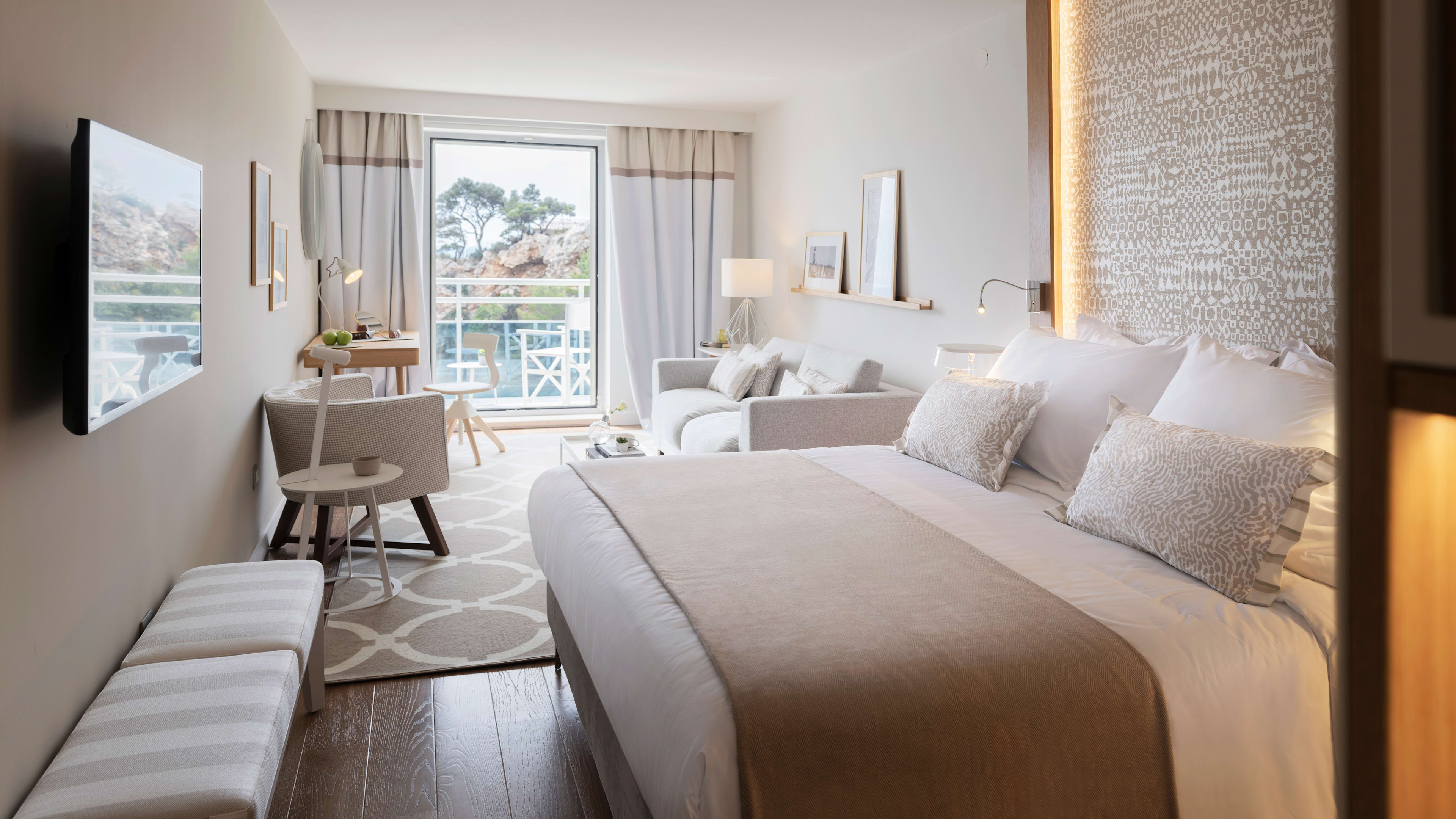 The Deluxe Suites have the best views. Built in the corner of the property, the large windows flood the bedrooms with dreamlike, panoramic vistas and the cosy living rooms open out onto balconies just big enough for two.