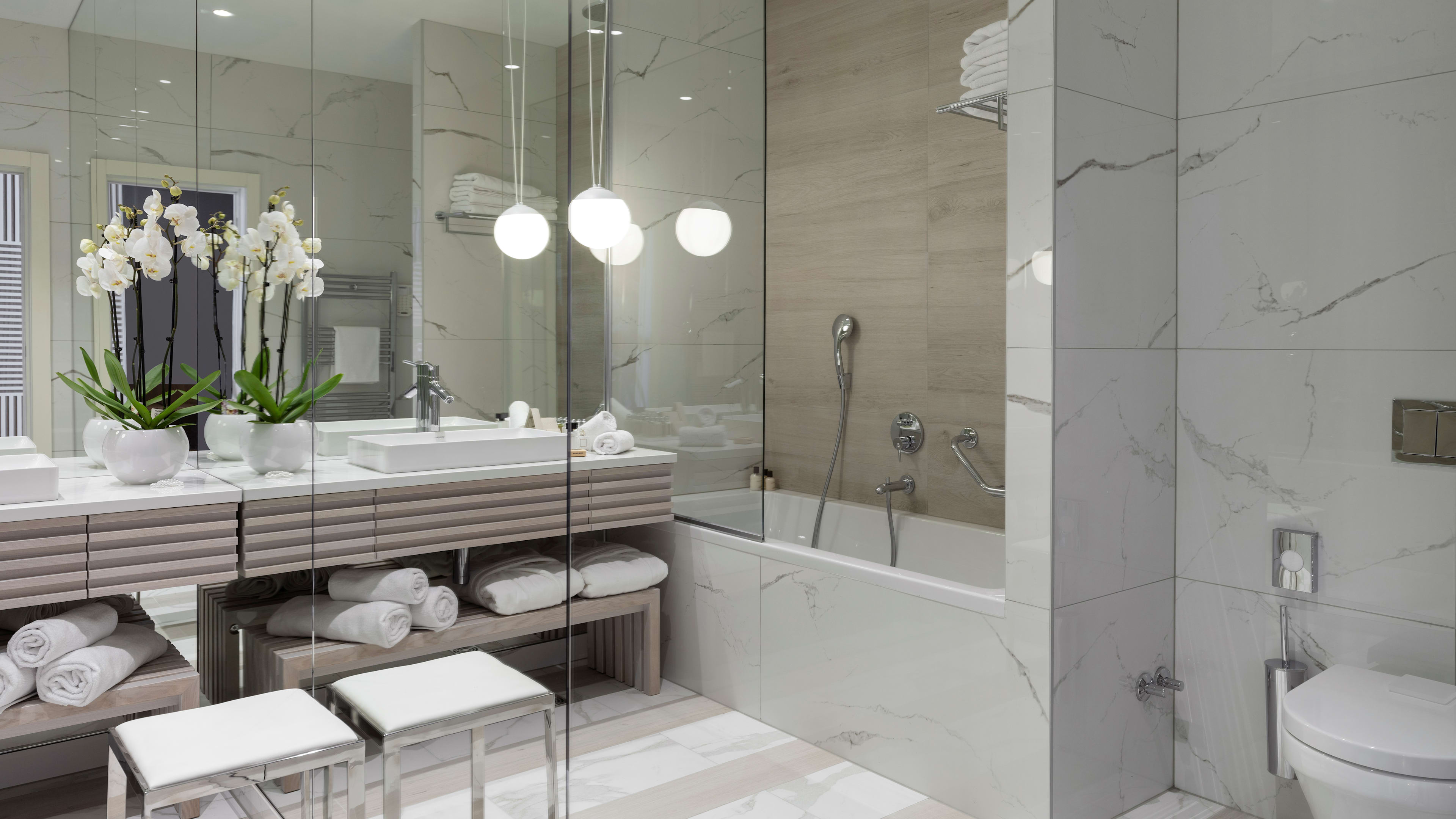 Available around the clock, the room-service menu is a classic selection of expertly made pastas, risottos, salads and sandwiches, plus hearty mains like lamb chops and grilled seafood.