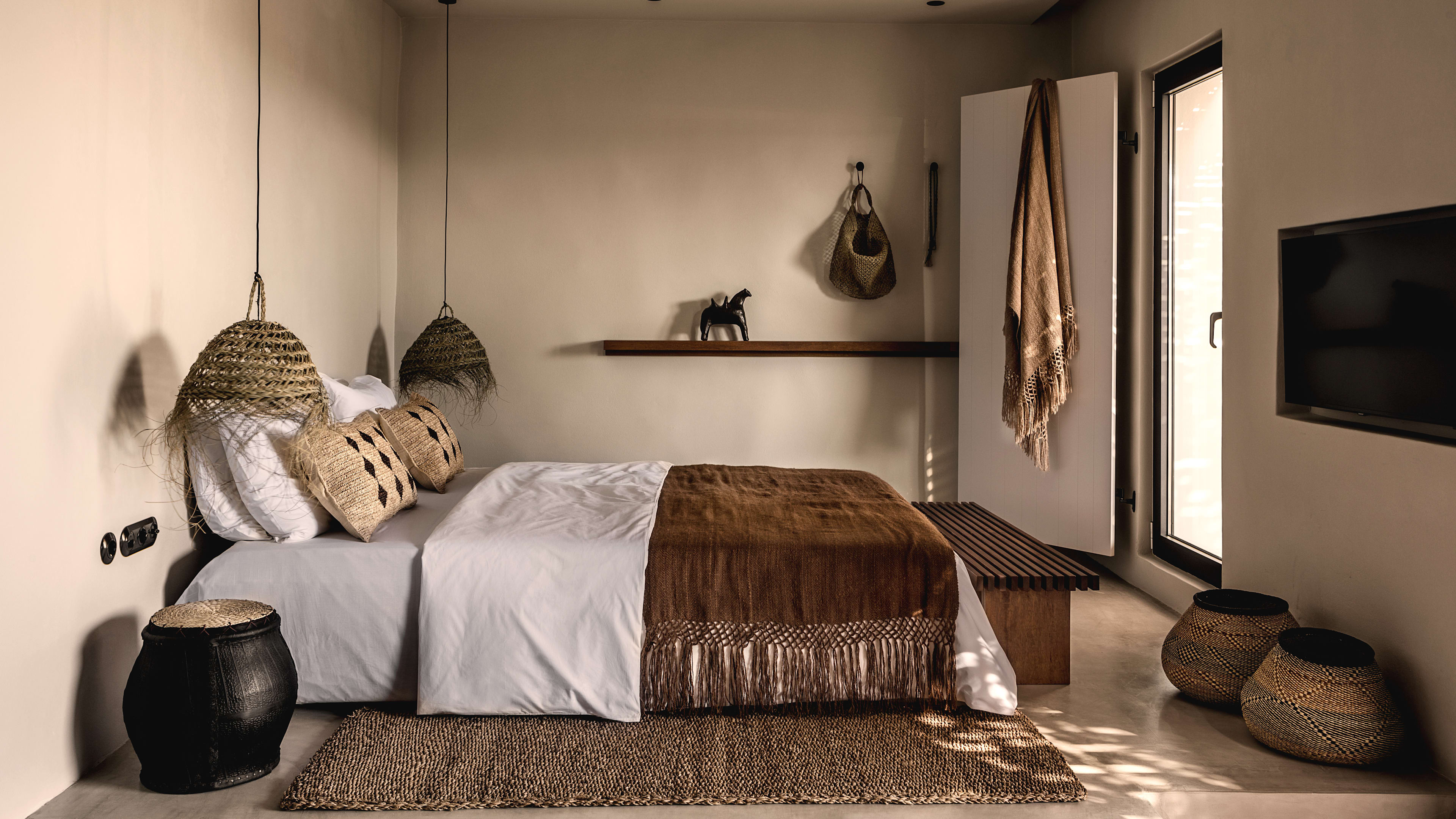 So, we can’t all flee to a Grecian isle for good – life isn’t Mamma Mia, ya know? But, with the right stoneware pot, straw basket and stylishly whittled footstool, you can maintain the illusion of an elongated getaway. The hotel’s concept store has all you need to recreate its look.