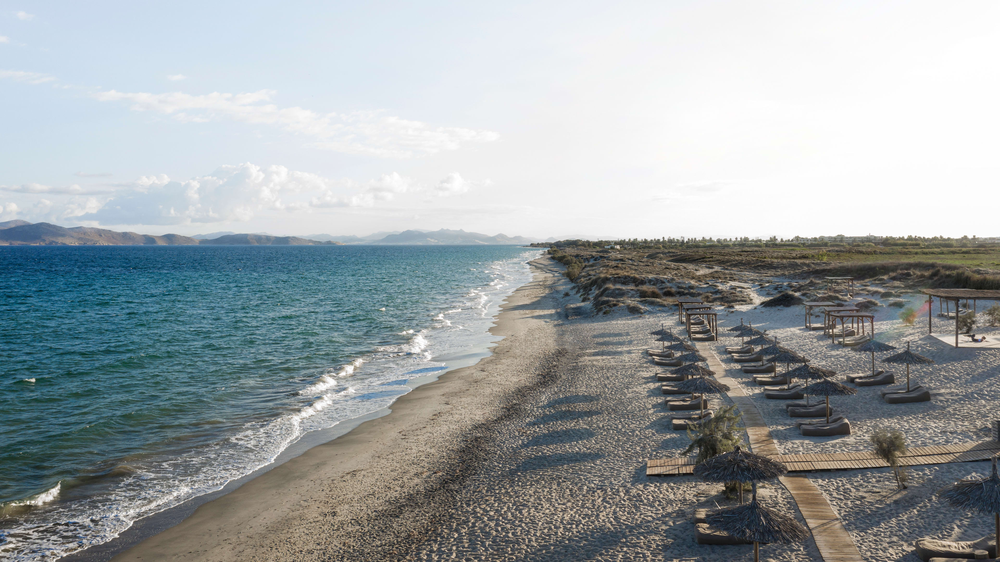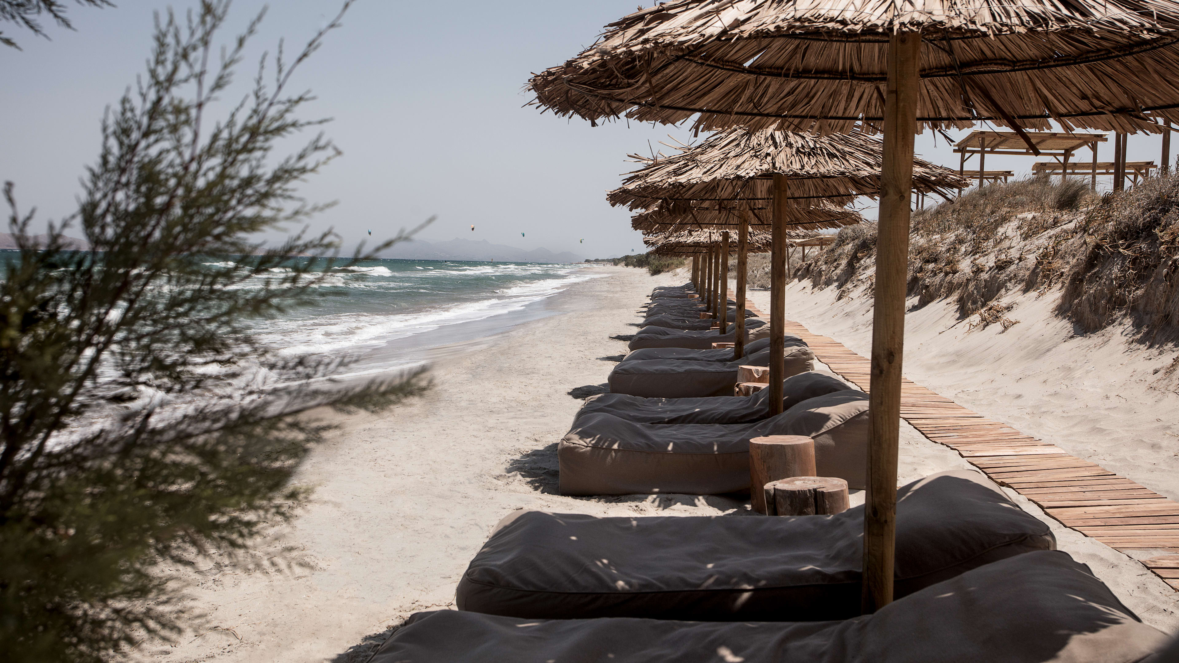 The hotel went to a lot of trouble to make its wellness area as aesthetically pleasing as its rooms, we love the hammam and the gym’s Scandi-style NOHrD equipment and the spa is the kind of spot where you’ll wonder where they got, say, that bronze bowl or woven hanging as you’re pampered. When you’re done head on over to the concept store to lay down some serious Euros on homewares. The bar and restaurant’s open-plan layout make it a good watch-the-world-go-by spot, and the terrace is in prime position for sunset-watching. Kos isn’t as party-hard as some of its Ioanian and Cycladic cousins, but it’s certainly where you’d want to come when you’re looking to rest and recuperate. Wellness is embedded in its bedrock – a vast healing site, the world’s first hospital, was erected here in honour of the god of healing and medicine Asclepius, and the island was home to Hippocrates, the legendary doctor whose do-no-evil oath is still sworn to. The ruins of Asklepion are some of Kos’s most impressive with colonnaded temples, former hydrotherapy baths and the medical school. But, those aren’t the only rows of weathered columns you’ll see while you’re here. Paleo Pyli’s crumbling Byzantine churches, the well-preserved steps of the Roman Odeon theatre and the ancient shrines and basilicas of the Agora are just a handful of the ancient sites giving dramatic historical context to an even more dramatic landscape. The hotel has a beach almost all to itself, but stretches of heavenly coastline are the sort of thing Kos does very well, and they don’t have names like Paradise and Magic beach for nothing. Inland, the salt lakes at Alykes and Plaka Forest with its preening peacocks are wonderfully diverting. Next door to the hotel, Erika’s Horse Farm organises unique ‘ride-and-swim’ excursions where you’ll trot along the beach and wade out flank-deep into the surf. And if you prefer a more traditional restorative, wallow in Therma Hot Springs on the south coast. Of the dinky isles orbiting Kos, Kastri is worth visiting to pose by its pretty blue-and-white church – it’s close enough to swim to – and further afield, volcanic island Nisyros has mighty hilltop monuments and intriguing regional delicacies: try chickpea meatballs, a stiff shot of koukouzina spirit, or cherry-tomato spoon sweets.