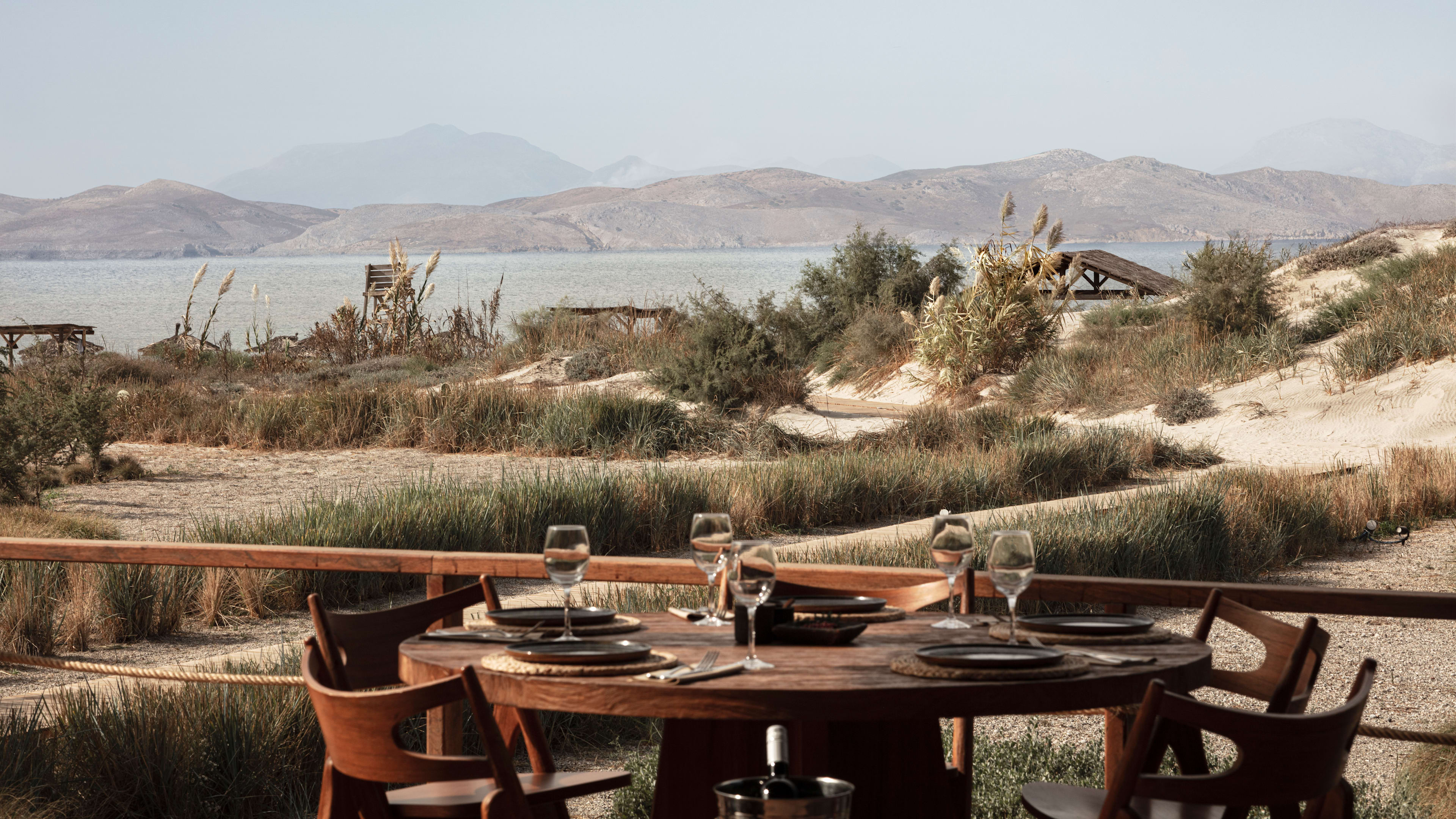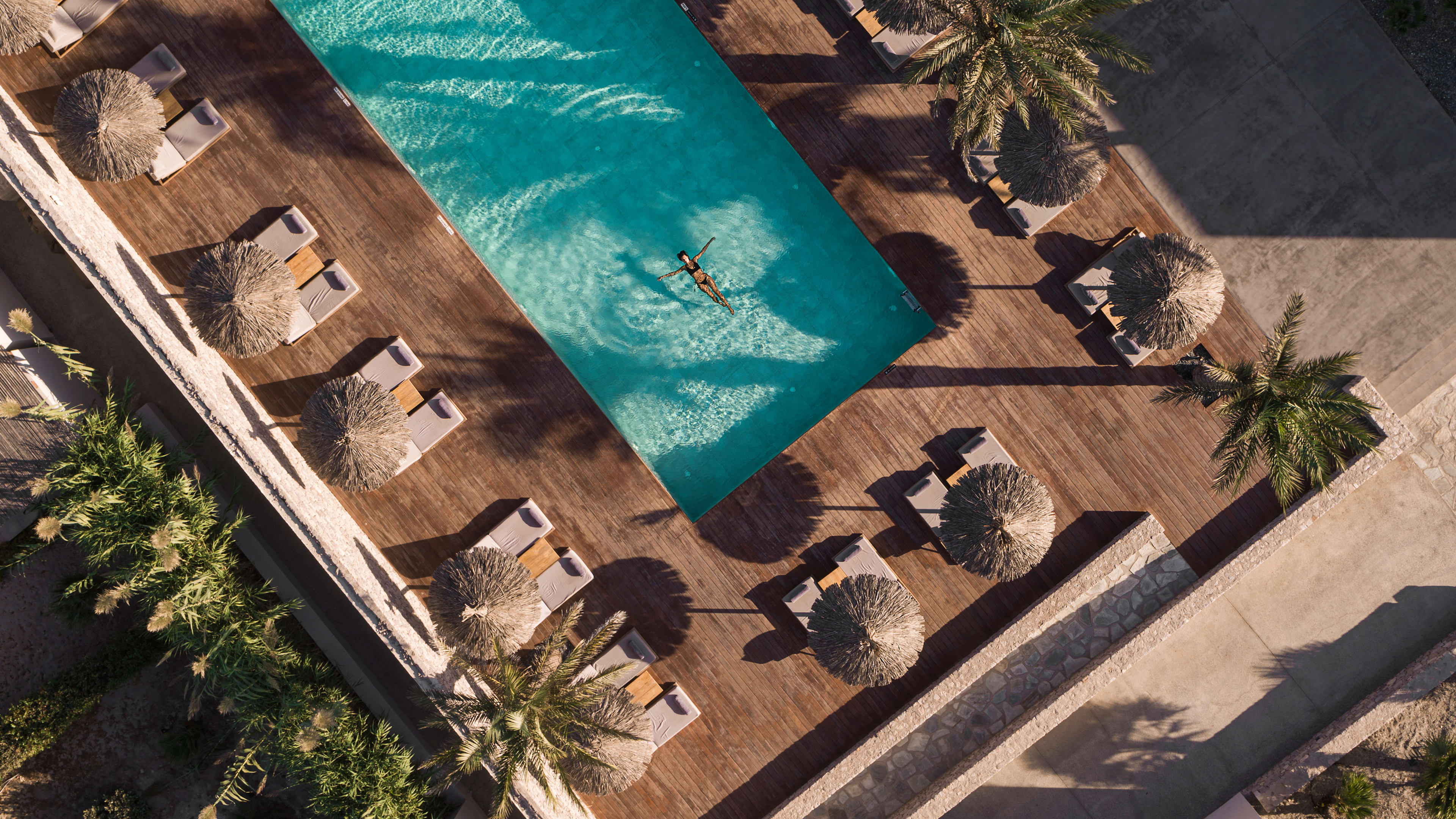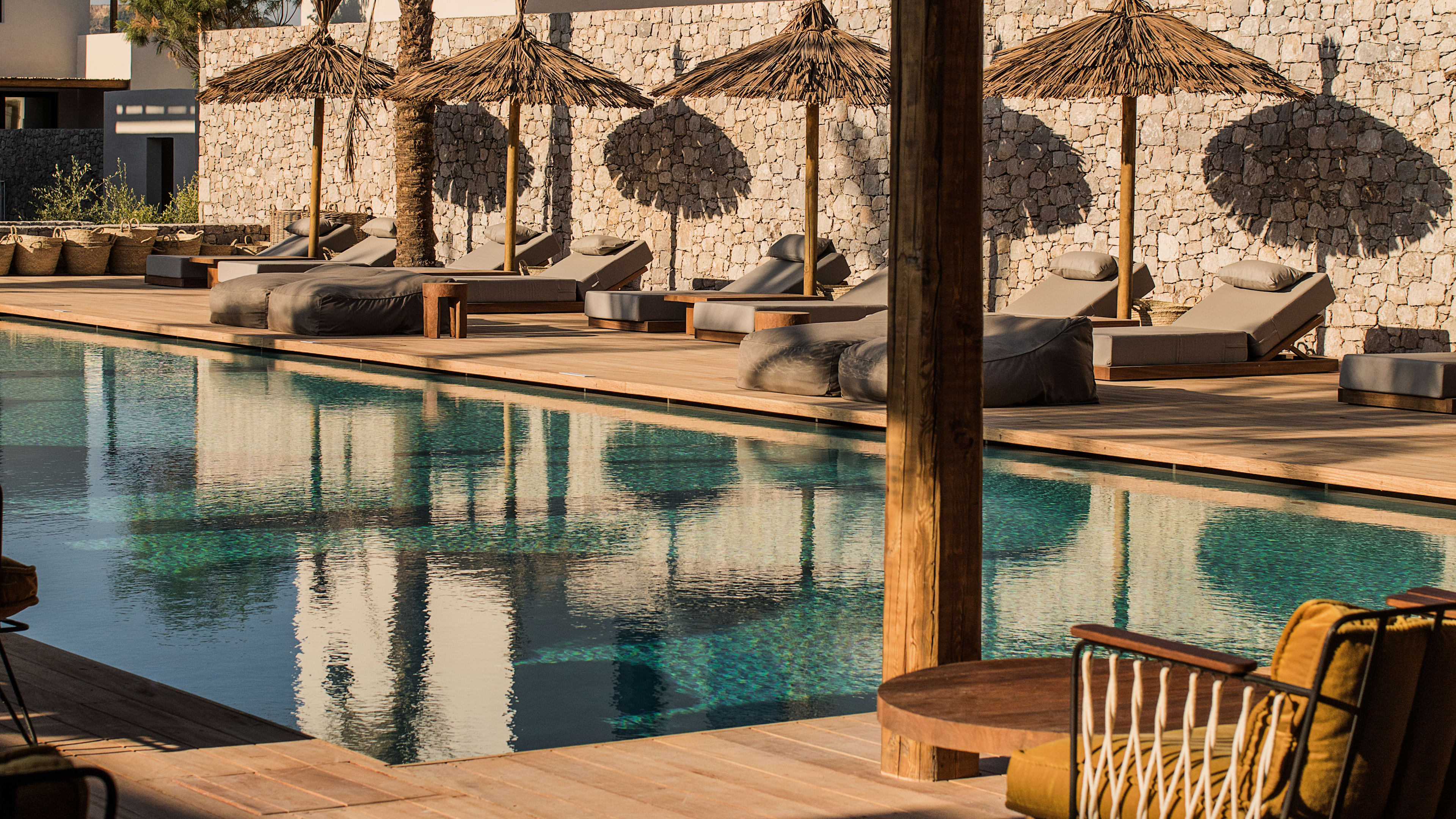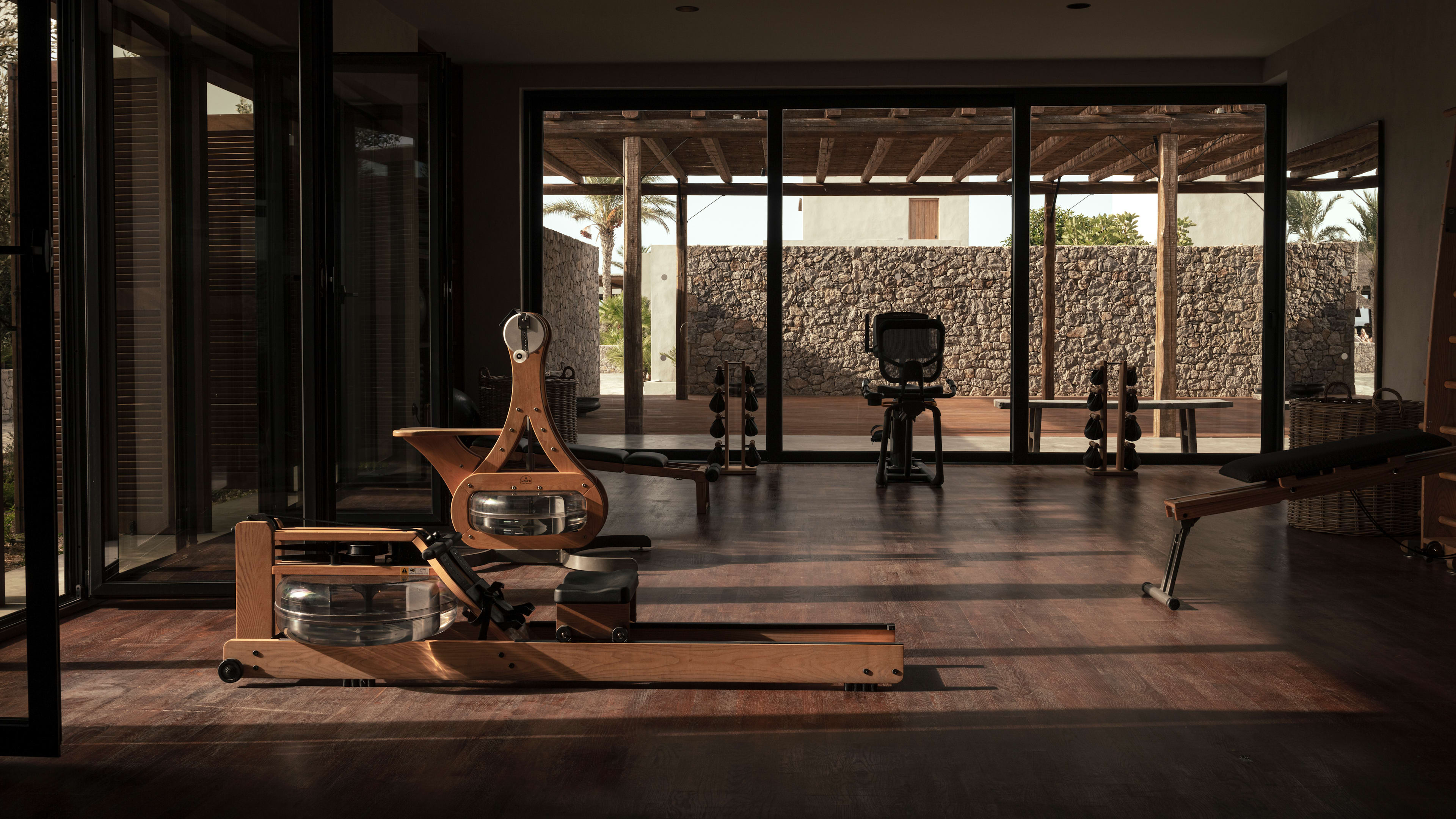 The spa may be petite, but it’s central to the hotel’s soul-restoring philosophy and it’s as stylish as the rest of the stay: the hammam has dove-grey tadelakt walls, perfumed plants grow around the entrance and attractive stone and wood elements abound throughout. Treatments use all-natural treatments, including those grown onsite and approved by the resident herbalist, and are designed to leave you feeling floaty and serene after. Try the signature Hippocratic anatripsis massage that uses a rhythmic ancient technique, or the Aegean scrub for silky smooth skin. Yoga and Pilates classes are held daily on the beach too, and personal trainers are on hand to motivate – the gym is probably one of the most chic we’ve seen with its mid-century-esque NOHrD work-out equipment.