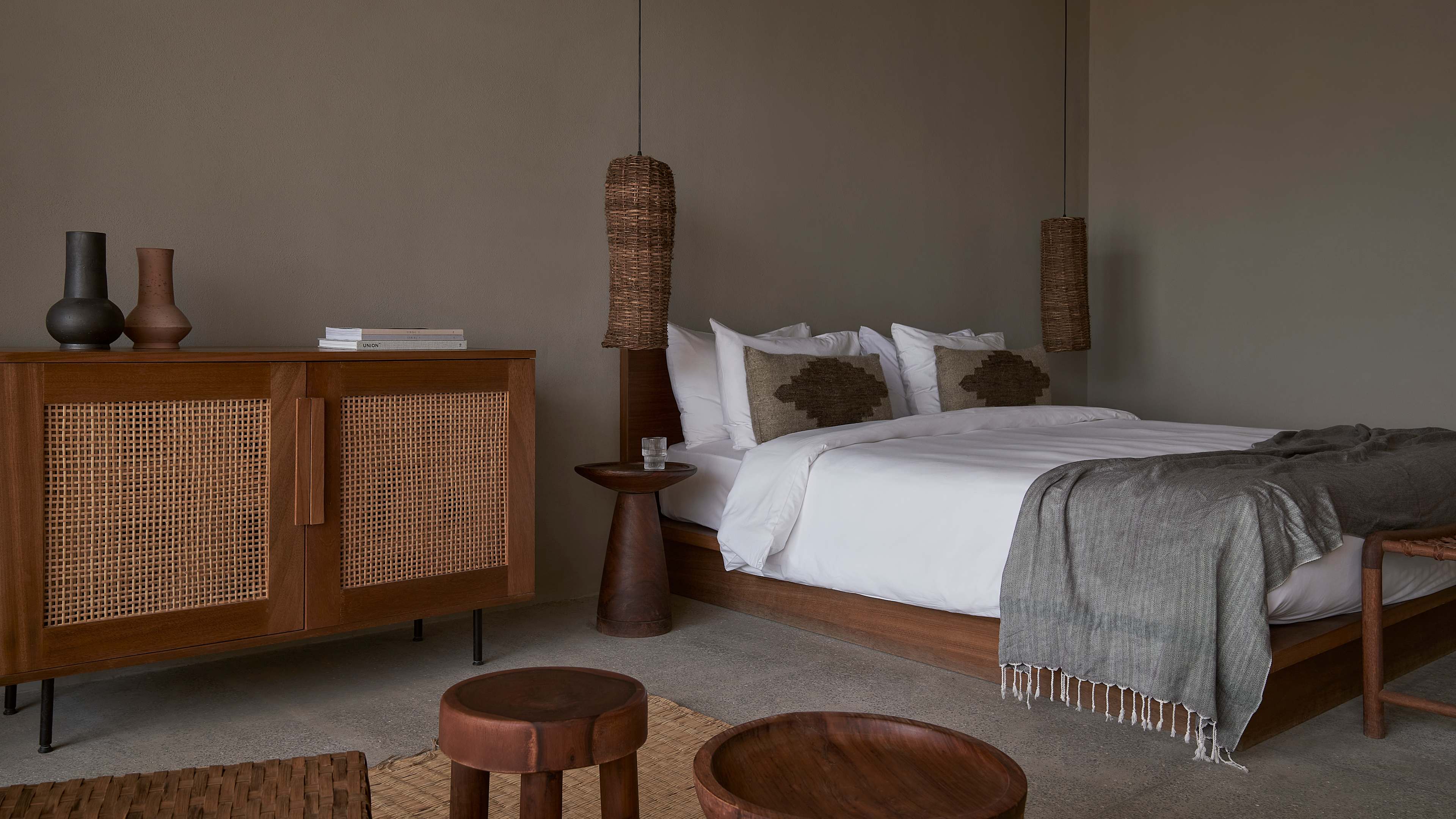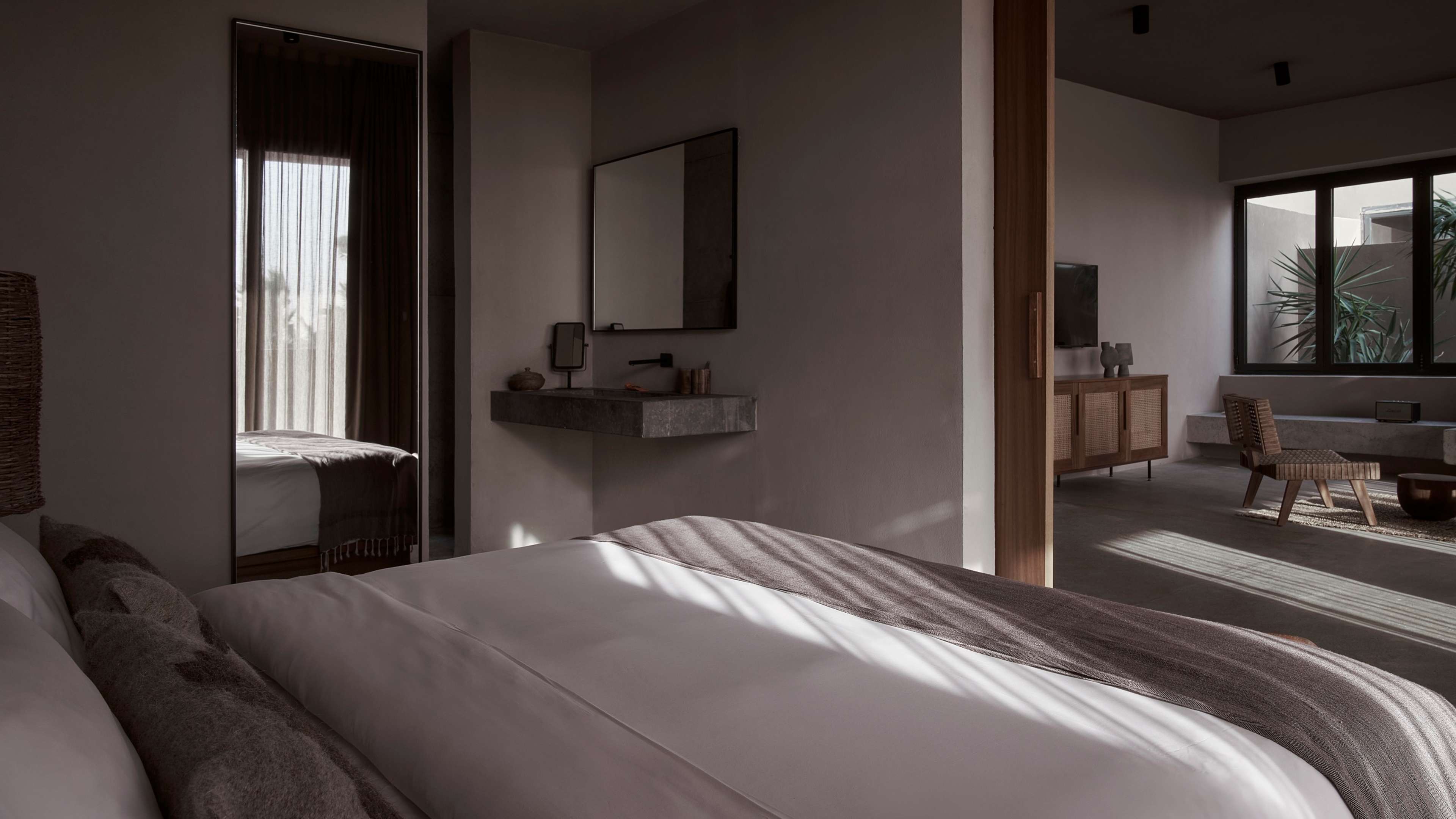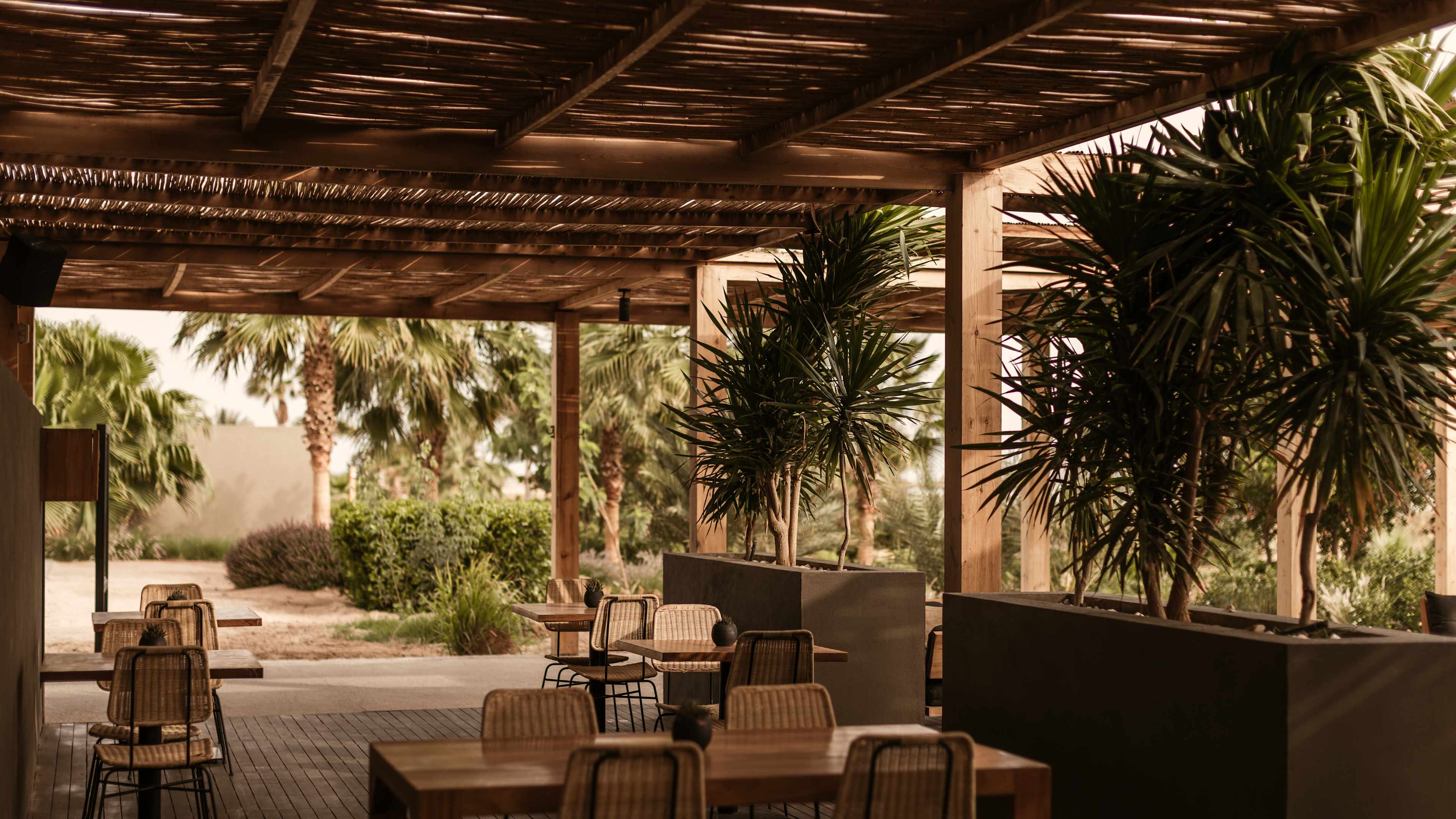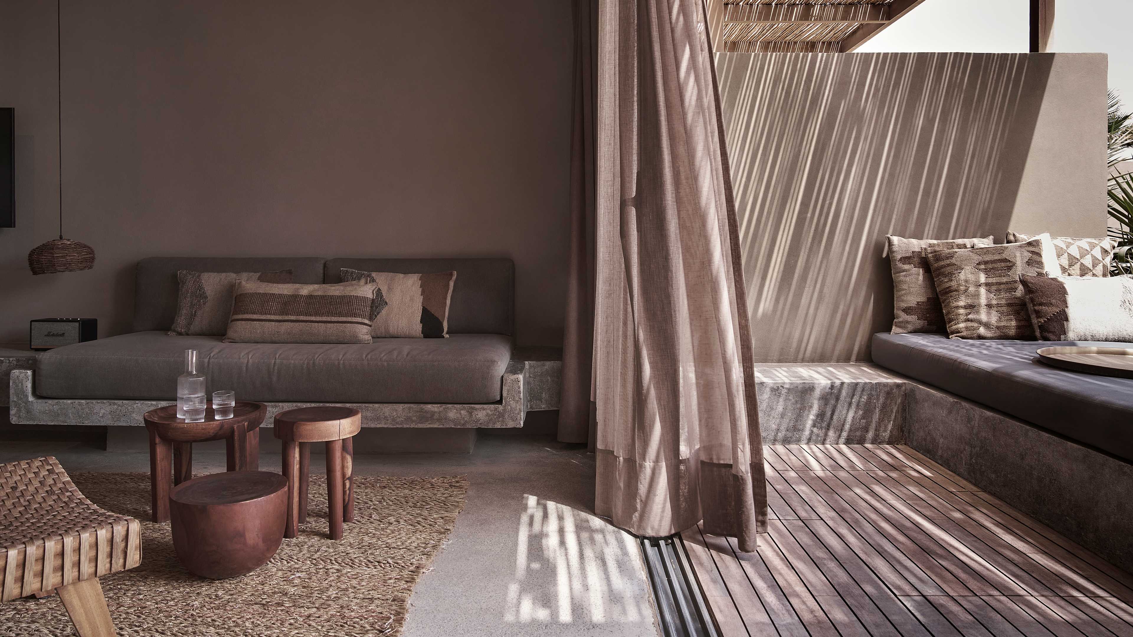 There’s such an easy naturality to the style in rooms, that it looks like they might have evolved out of the desert over the years and been simply dusted off before guests check in. The hues that echo sand and stone; furnishings’ organic shapes; and materials such as weathered wood, untreated plaster, rattan, hammered brass and linen make spaces tactile, cosy and cool (in all senses), so the choice you need to make is: swim or sunbathe? Swimmers will want the Villa, the only room kind with a private pool, or they can share a larger pool, with a fabulous view, with fellow guests while staying in a Junior Suite. Sun worshippers should book the Premium Room with a roof terrace.