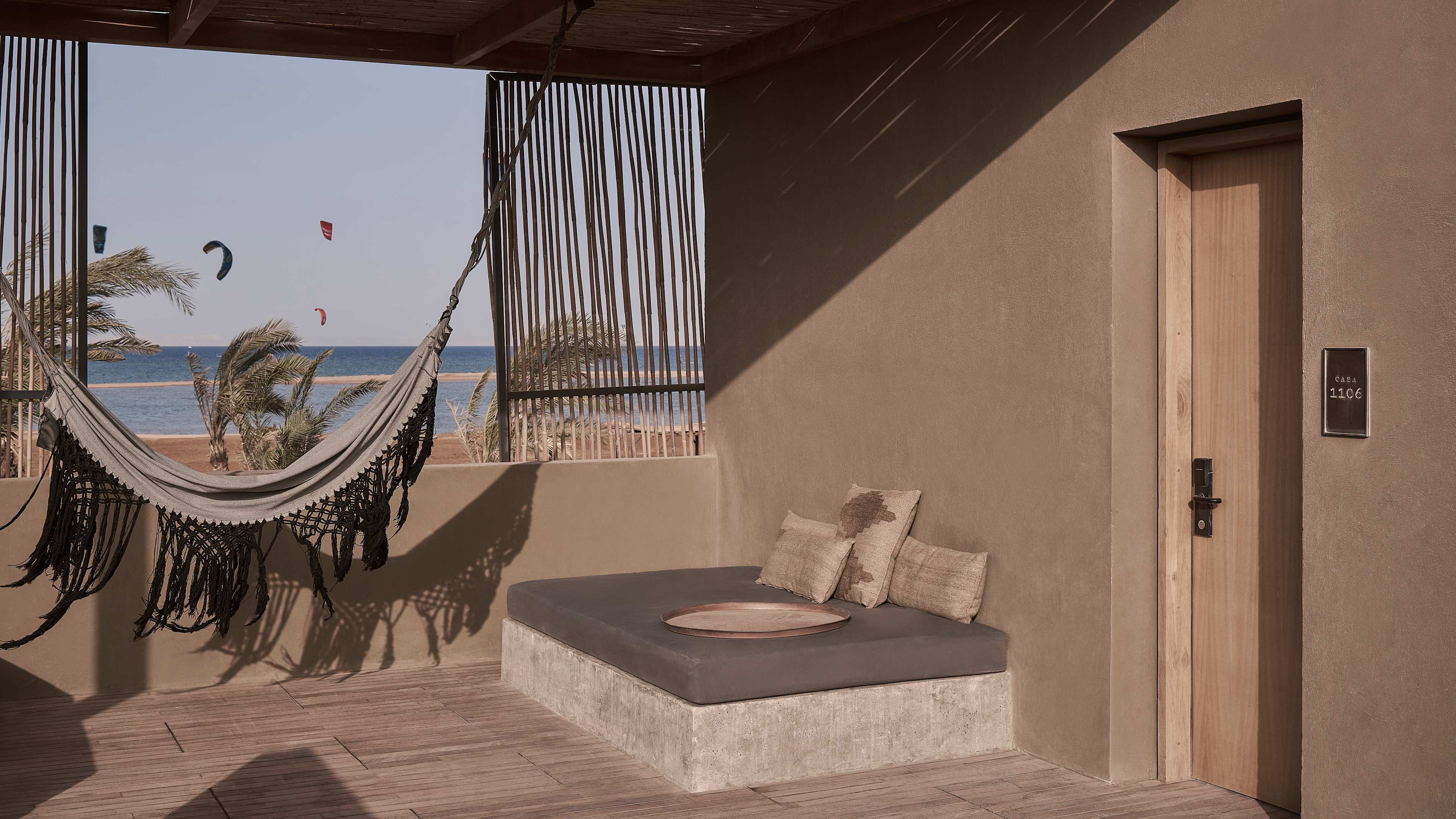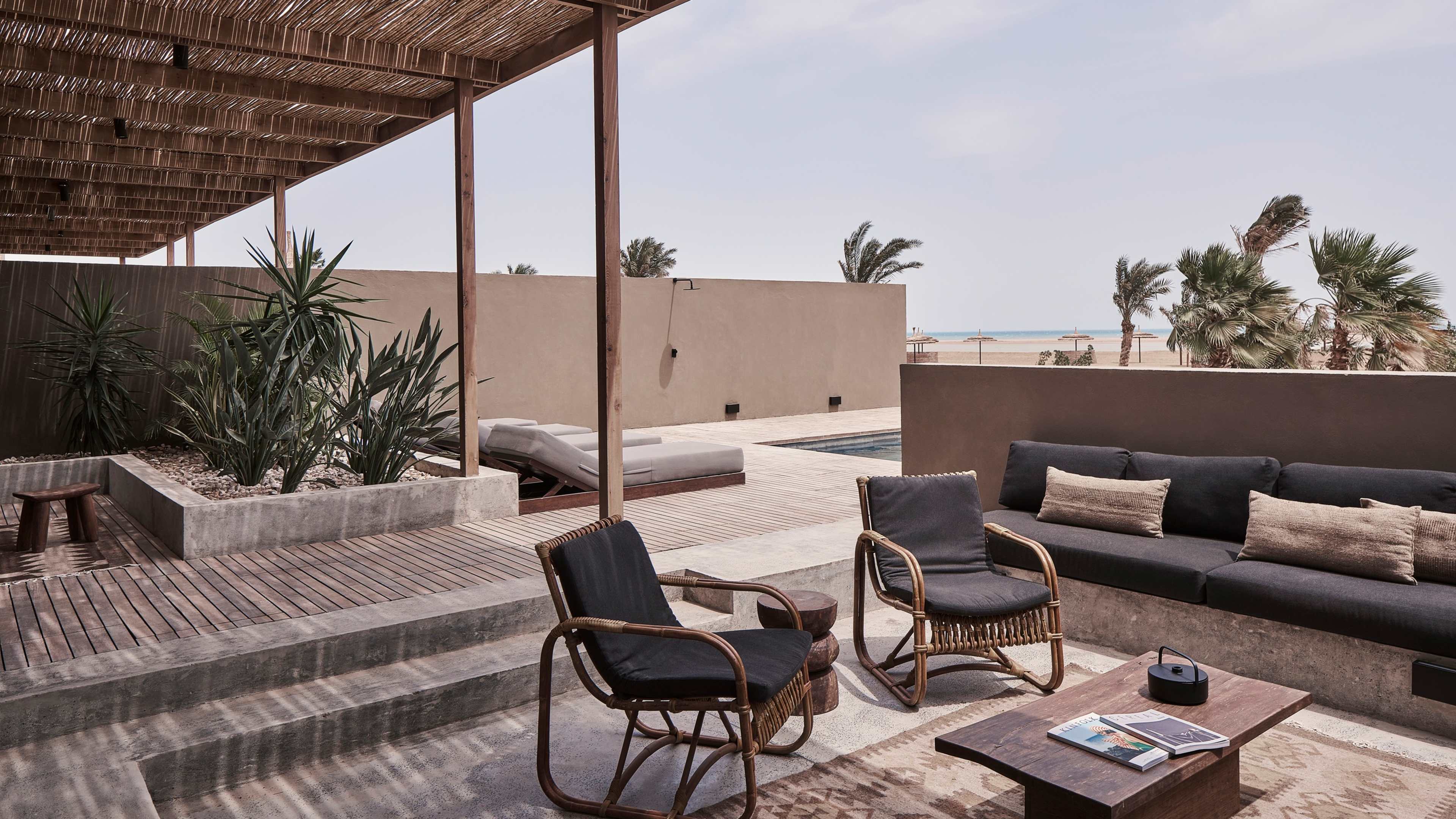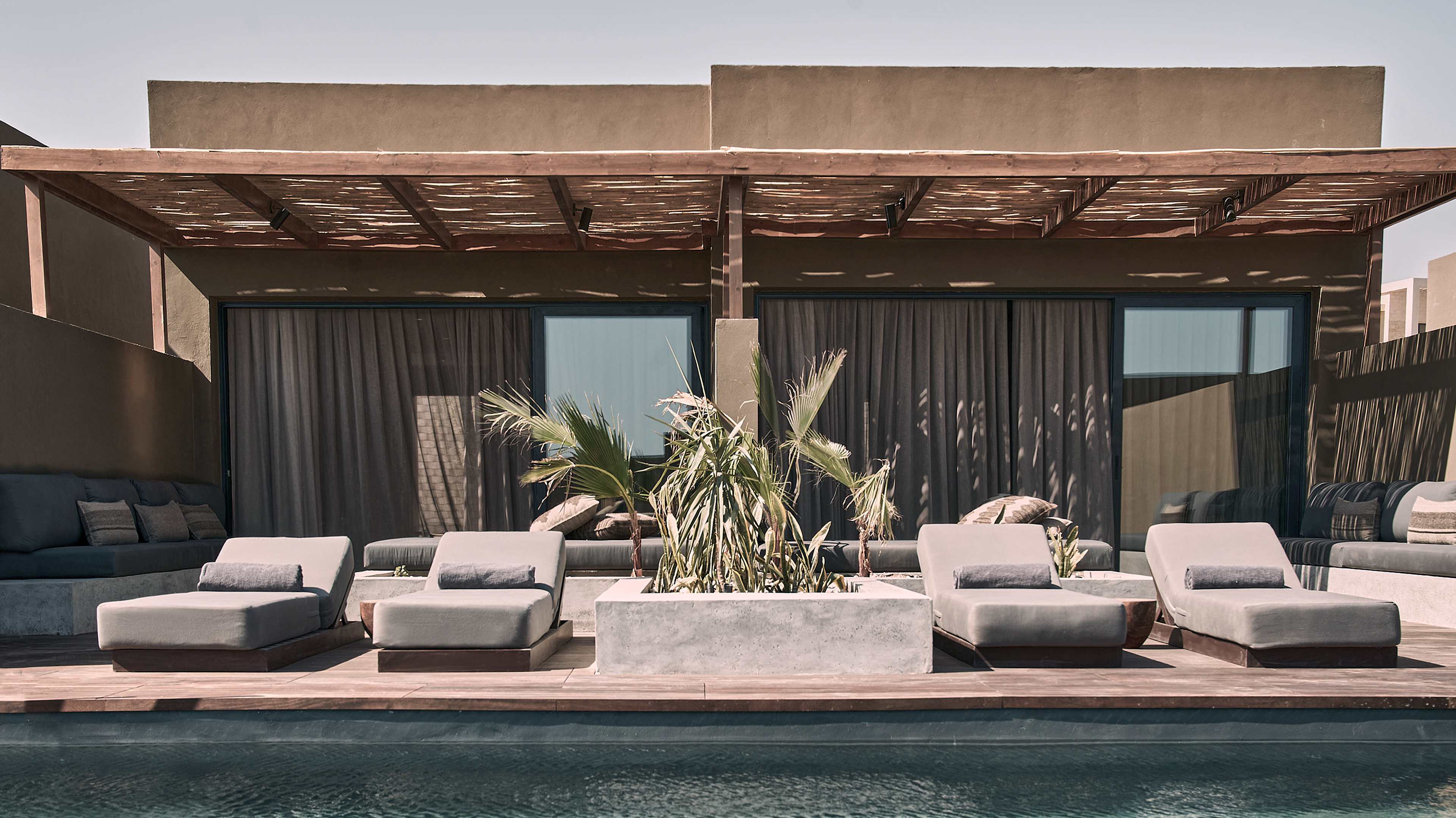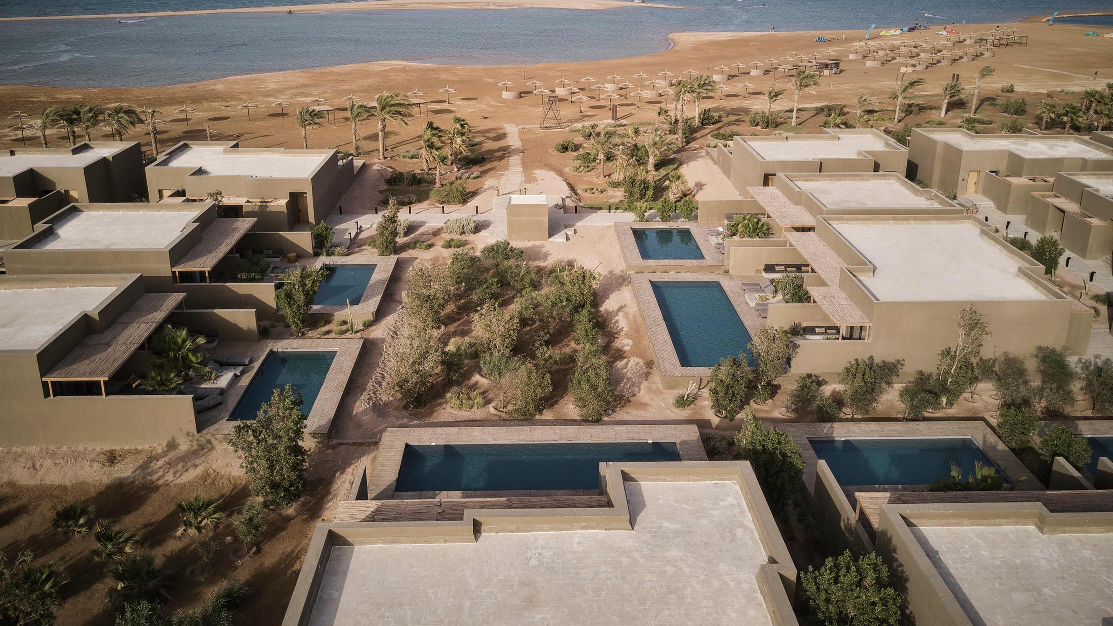 Casa Cook El Gouna is a mirage as witnessed by a champion of Brutalism who’s been wandering the desert, bereft of Architectural Digest, for weeks. But, luckily for those thirsting for a dreamy modernist hideaway in Egypt, it’s very real indeed. This series of polished monoliths, spread out by the beachy Red Sea coast and the lunar landscape and mountains of the Sahara, is a locus of laidback hedonism surrounded by a rugged natural playground. One day might be a pool party buoyed by DJ beats and spritzes with Egyptian wine; another might be self care with sun-splashed yoga and a massage using millennia-old techniques; and another might be riding through mountain passes, wreck diving and kitesurfing along the blustery shore. Much like a mirage, it’s what you desire, but well within reach.