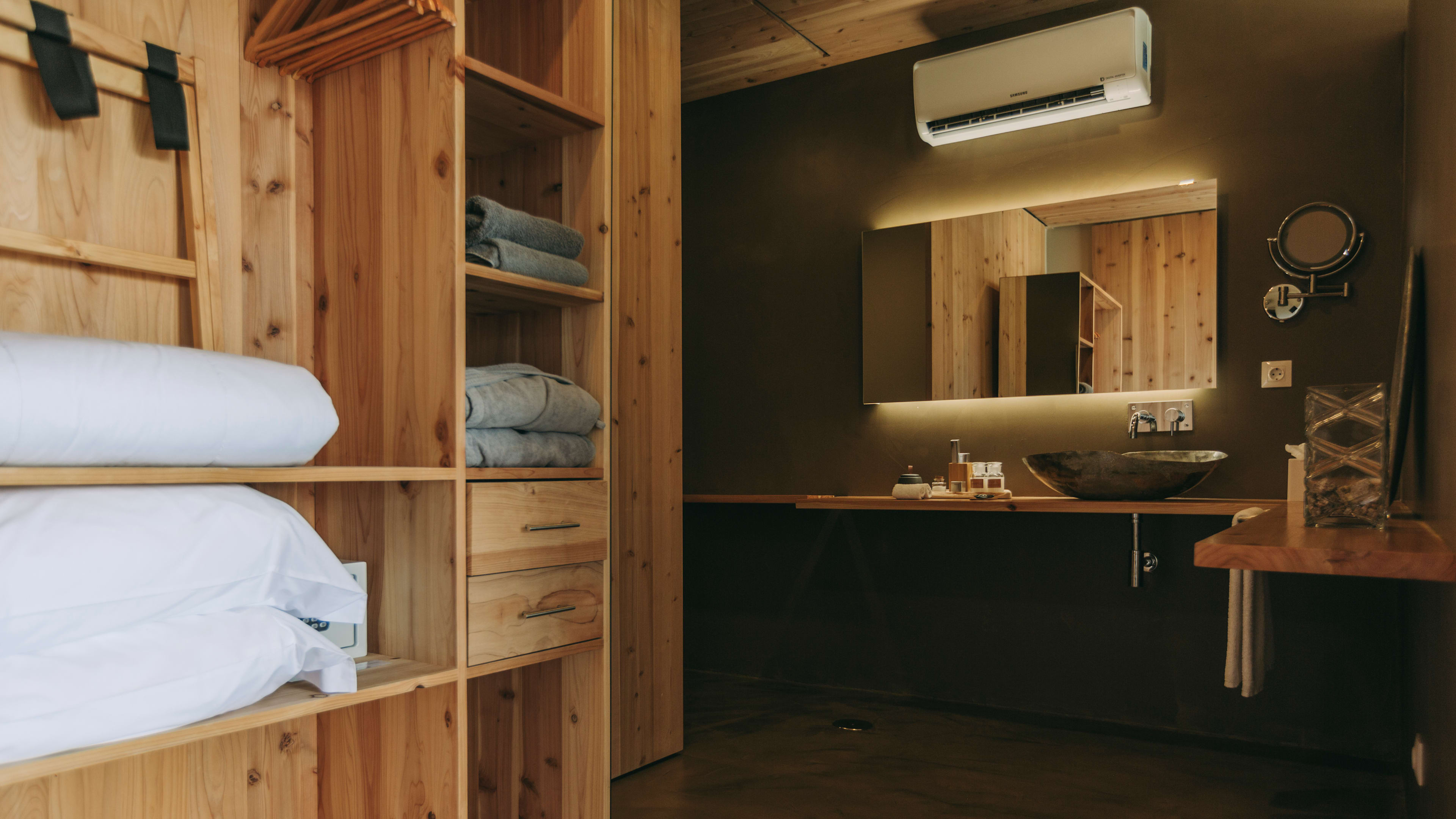 Rooms vary by location rather than (generous) footprint and are all dressed in a soothing palette of blues, greens and browns that nods to the hotel’s coastal setting. The studios appeal with access from your private deck to a photoshoot-worthy lap pool. For a Jacuzzi to call your own, opt for a Retreat studio or villa.