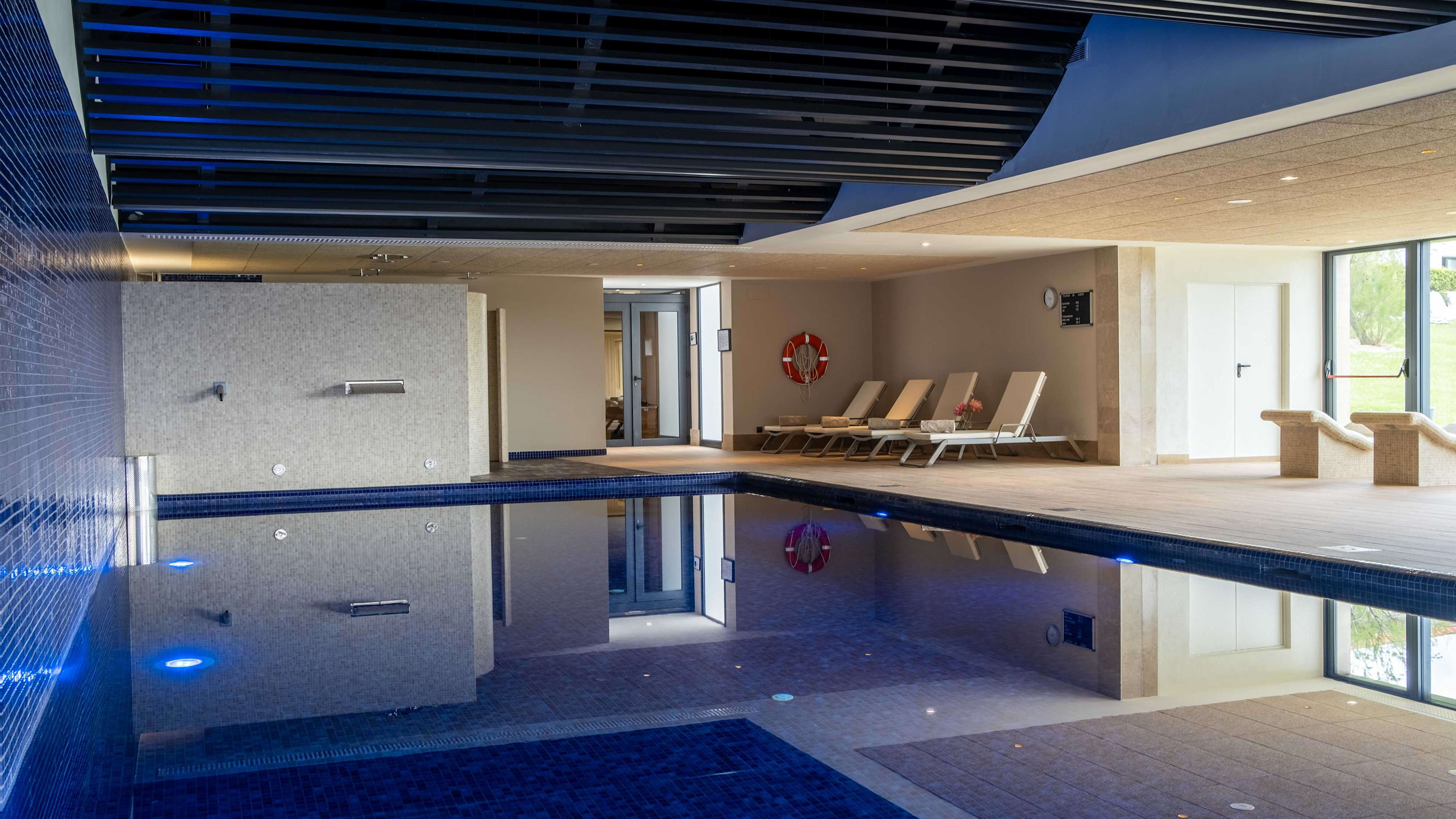 The indoor heated spa pool is made all the more soothing with massage jets.