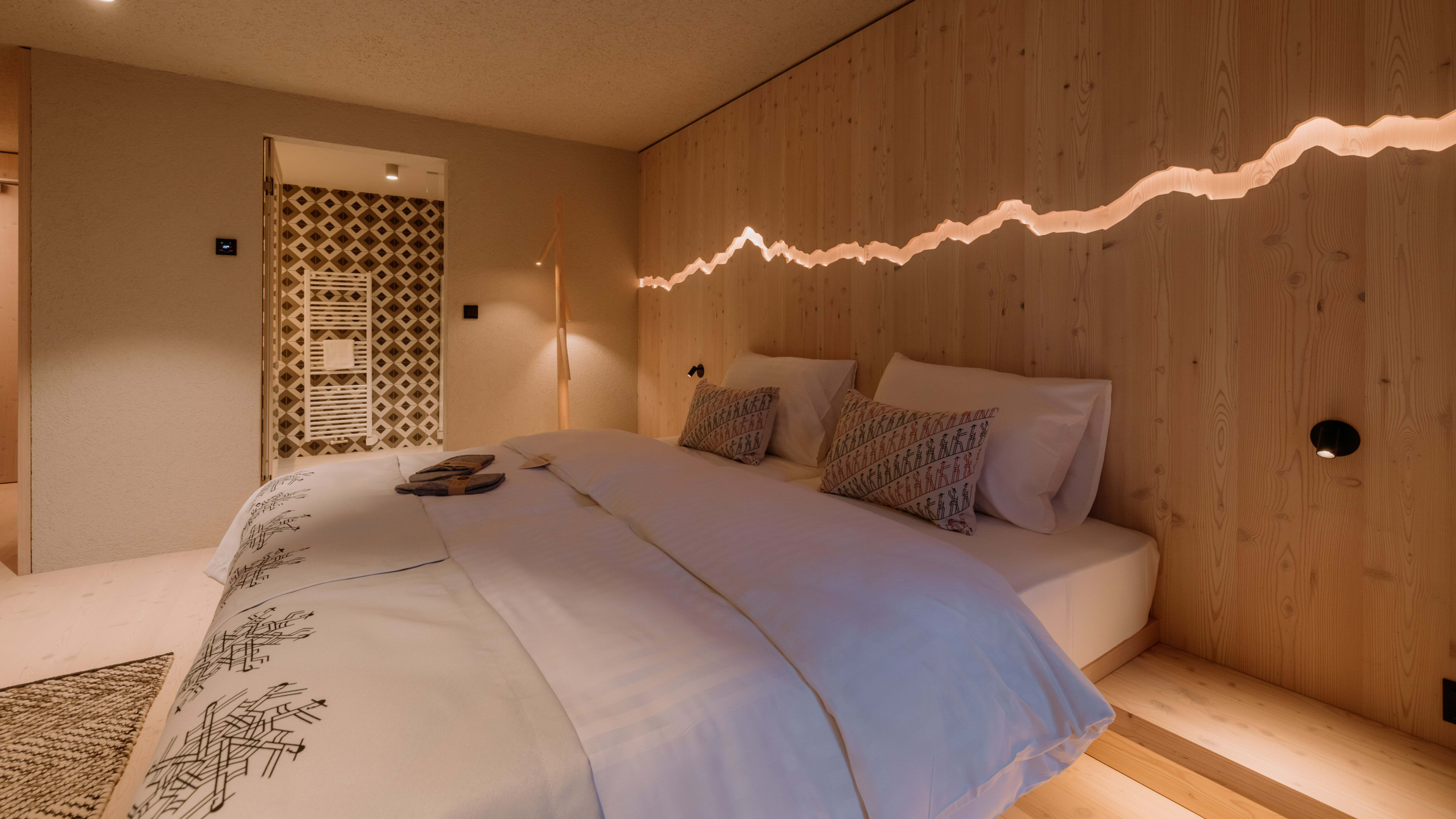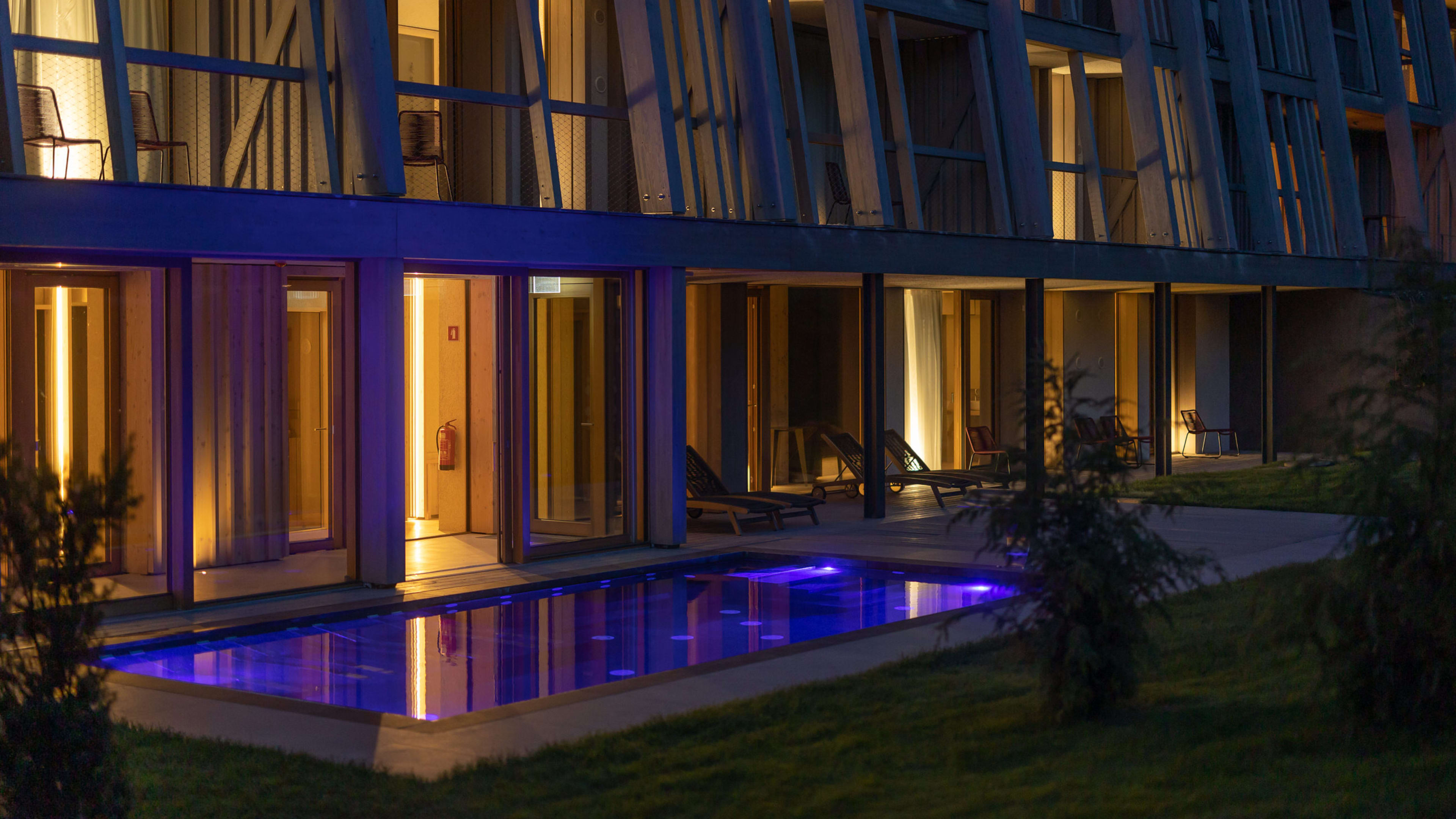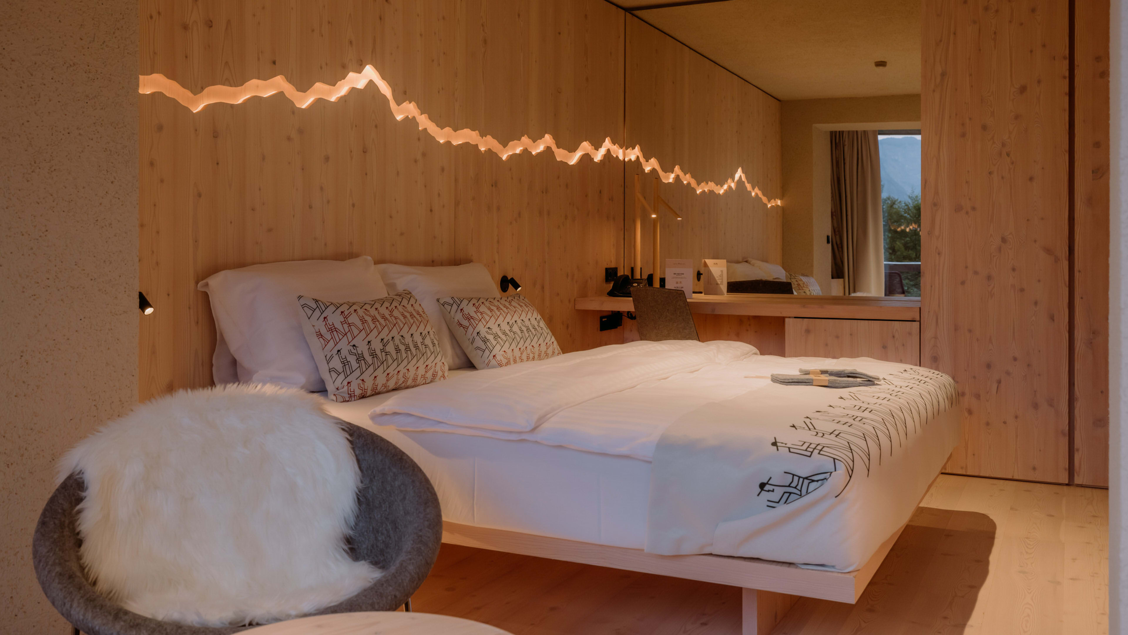 A larch-lined warren of restorative wellness to the rear of the hotel, the adults-only spa is a highlight of any stay at Hotel Bohinj. Its design is compartmentalised – a space of corridors and cocooning zones of calm, comprising Finnish and Turkish saunas, a relaxation lounge with views down to the lake, a garden-facing terrace and spa pool, and three treatment rooms (bring your own tunes to stream through Bluetooth speakers to accompany your massage or facial). All the senses are catered for here: there’s an ice fountain, steam room, and experience showers; to reach the spa’s refreshment station, you pad barefoot across a textured, reflexology walkway. Downtime in the indoor lounge deploys chromotherapy and salt crystals to promote healing as well as rest. Two hours’ access a day is free to hotel guests, but you’ll want to book in for a massage or body treatment: our tip is to opt for one that includes time on the zero-gravity heated water-bed for a cosseting sense of weightlessness.